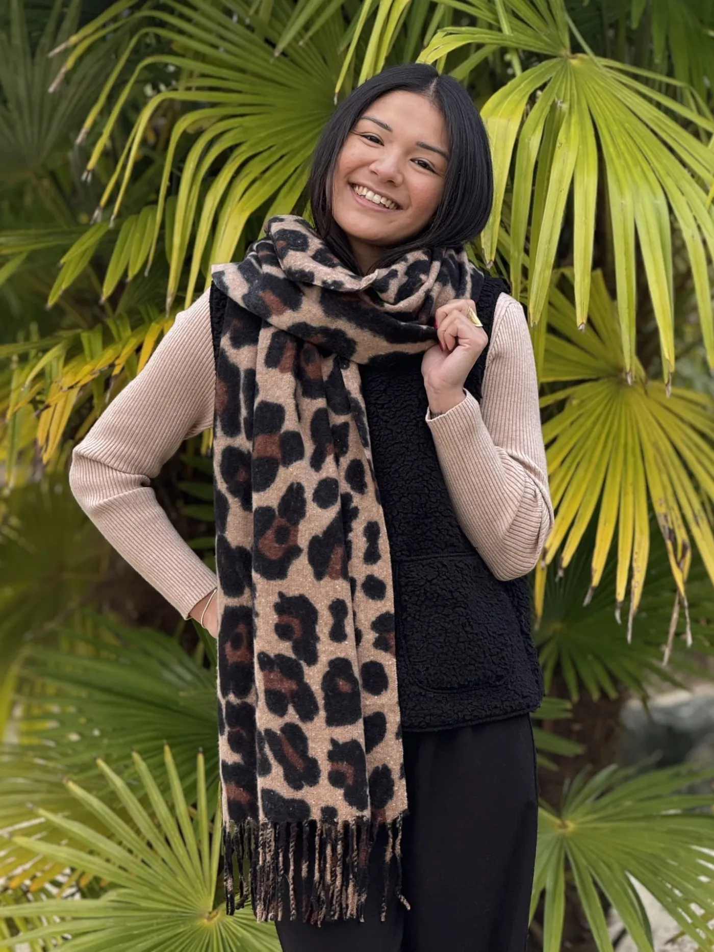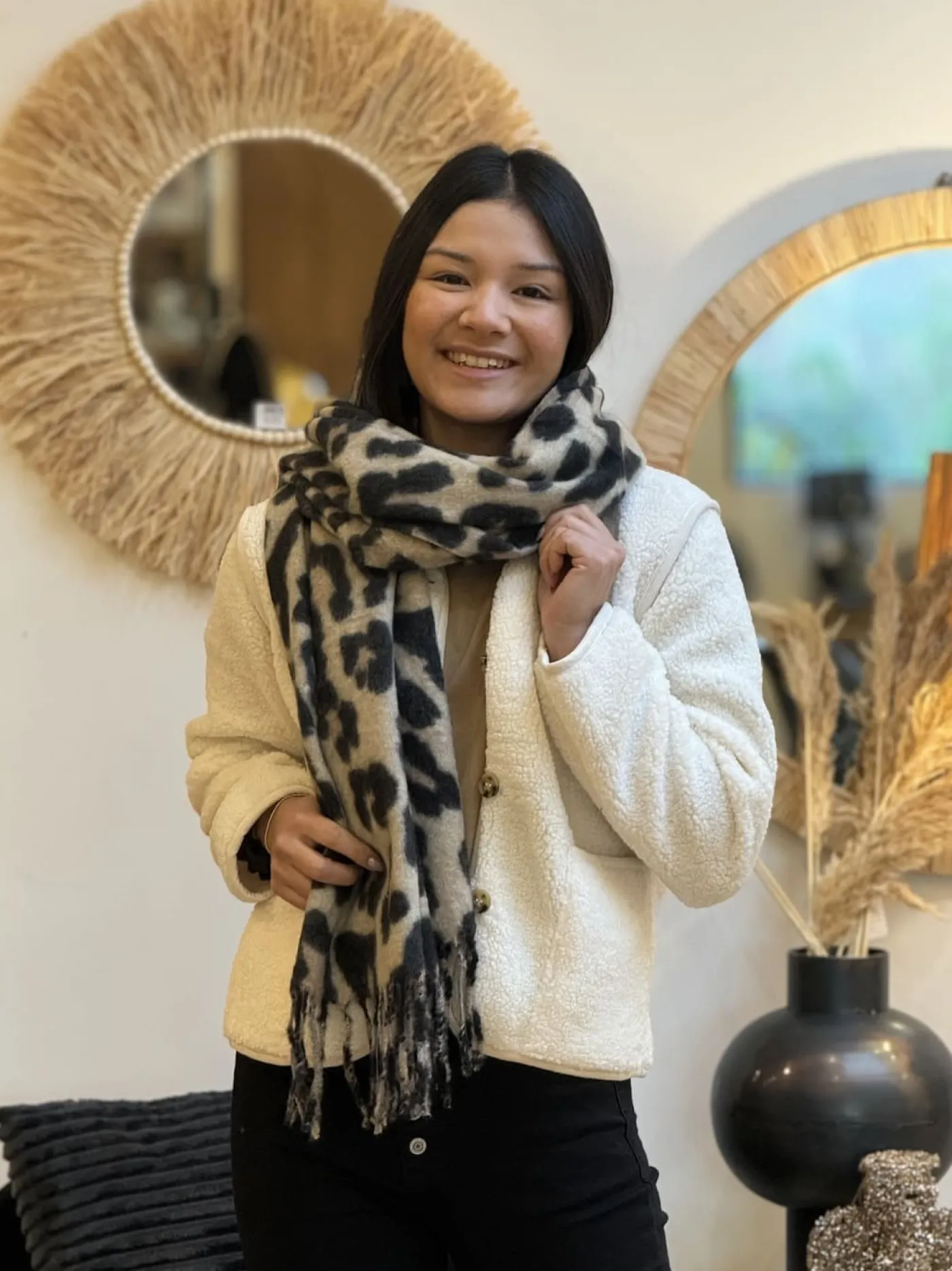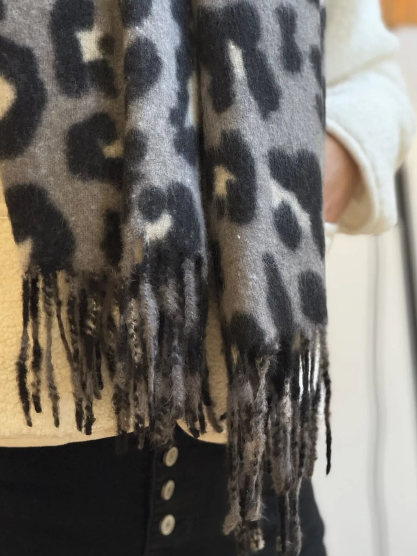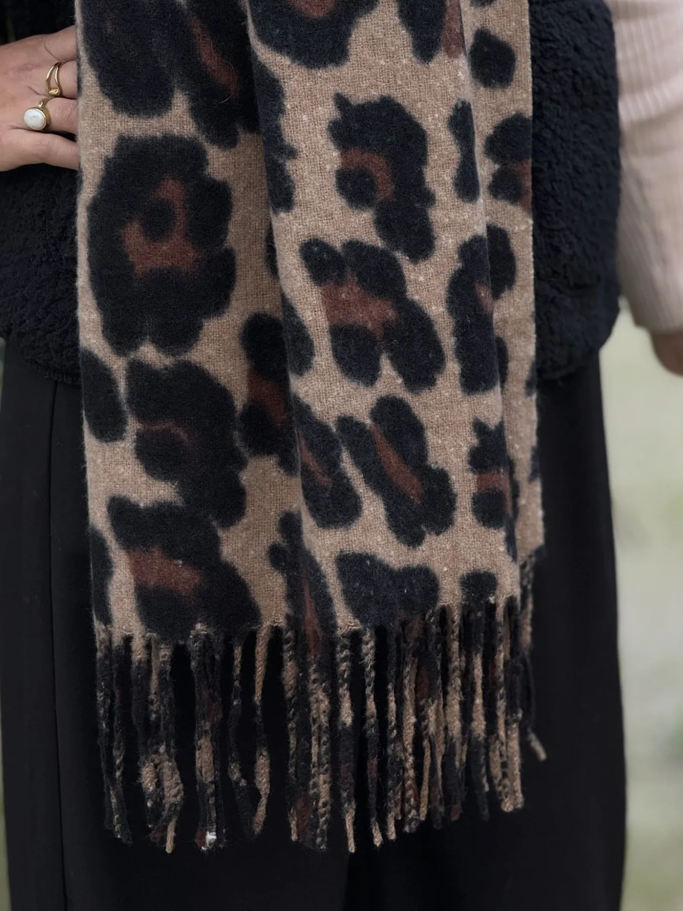 - ECHARPE AVEC FILS EN BAS – MOTIF LEOPARD