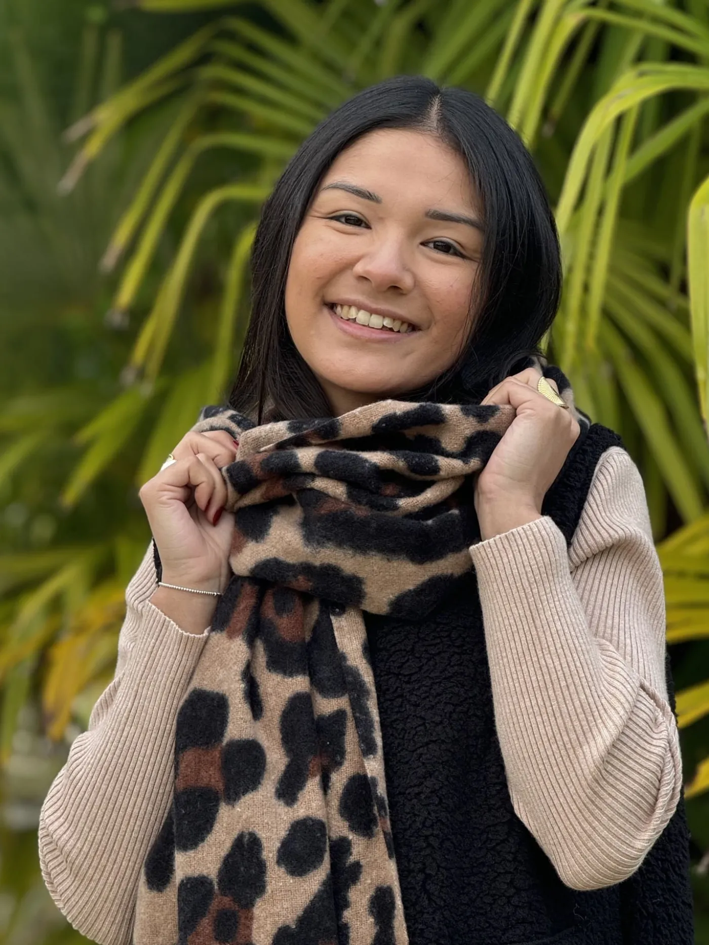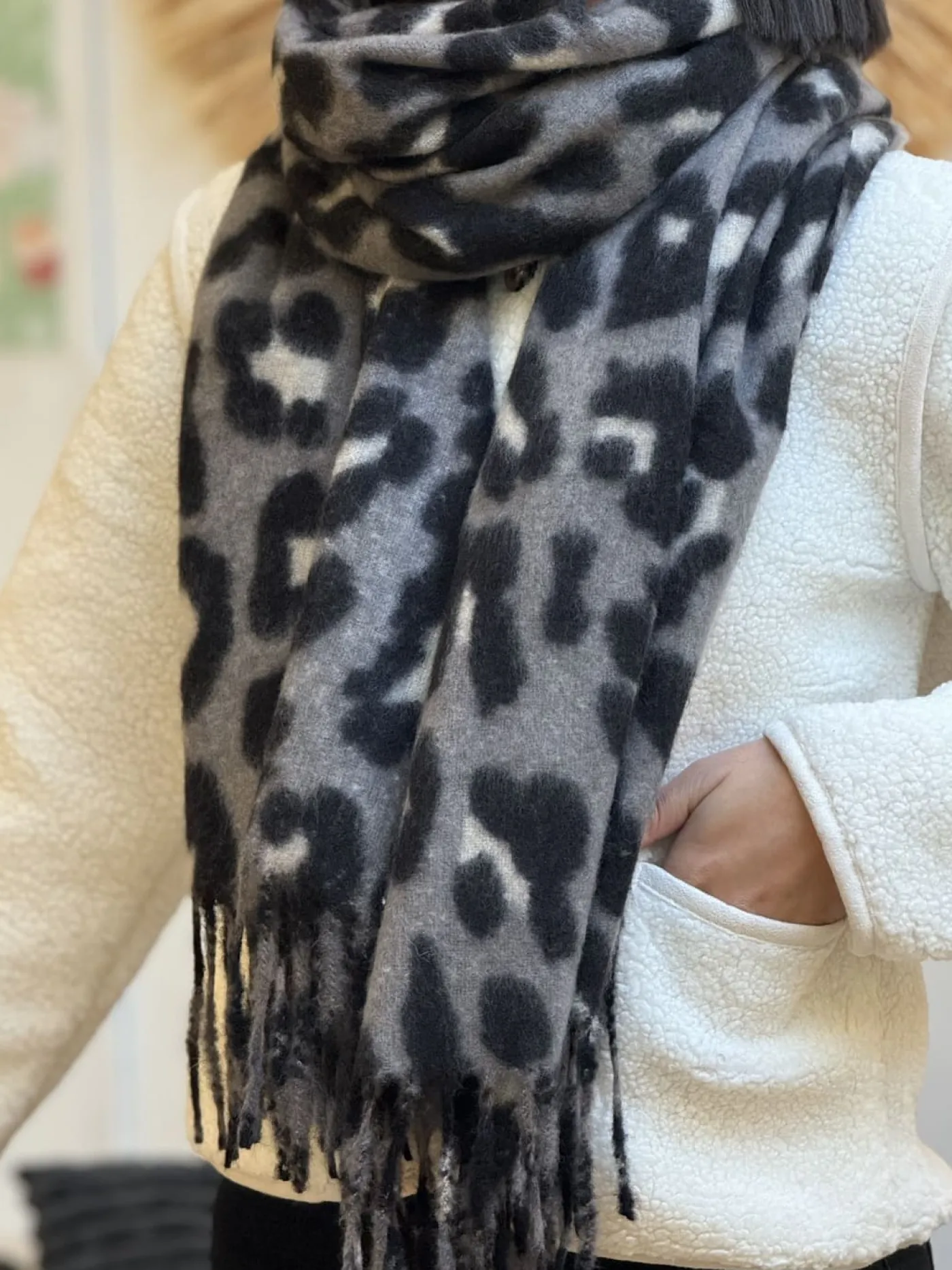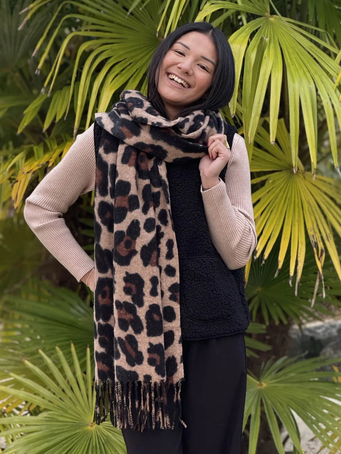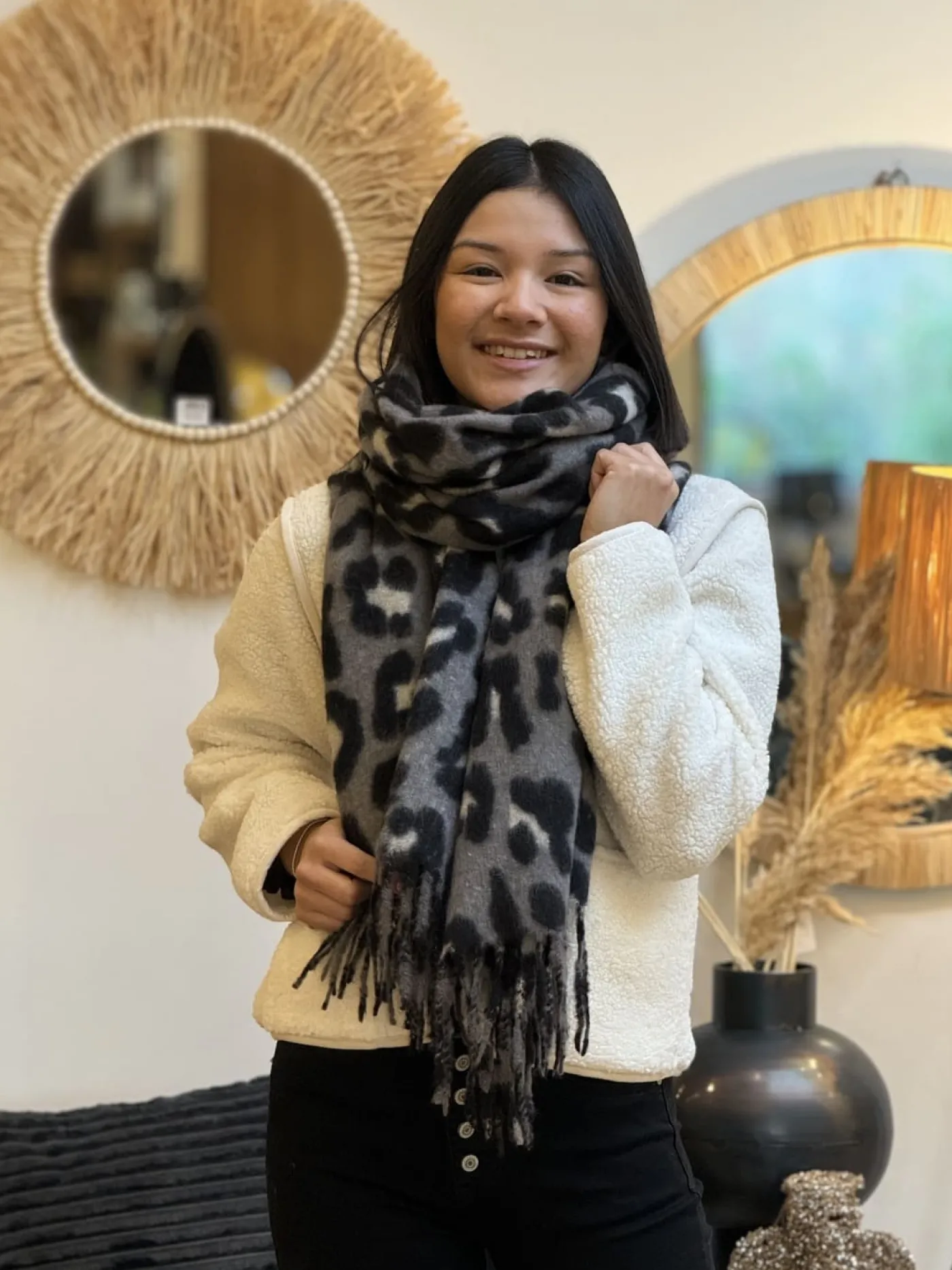 - ECHARPE AVEC FILS EN BAS – MOTIF LEOPARD