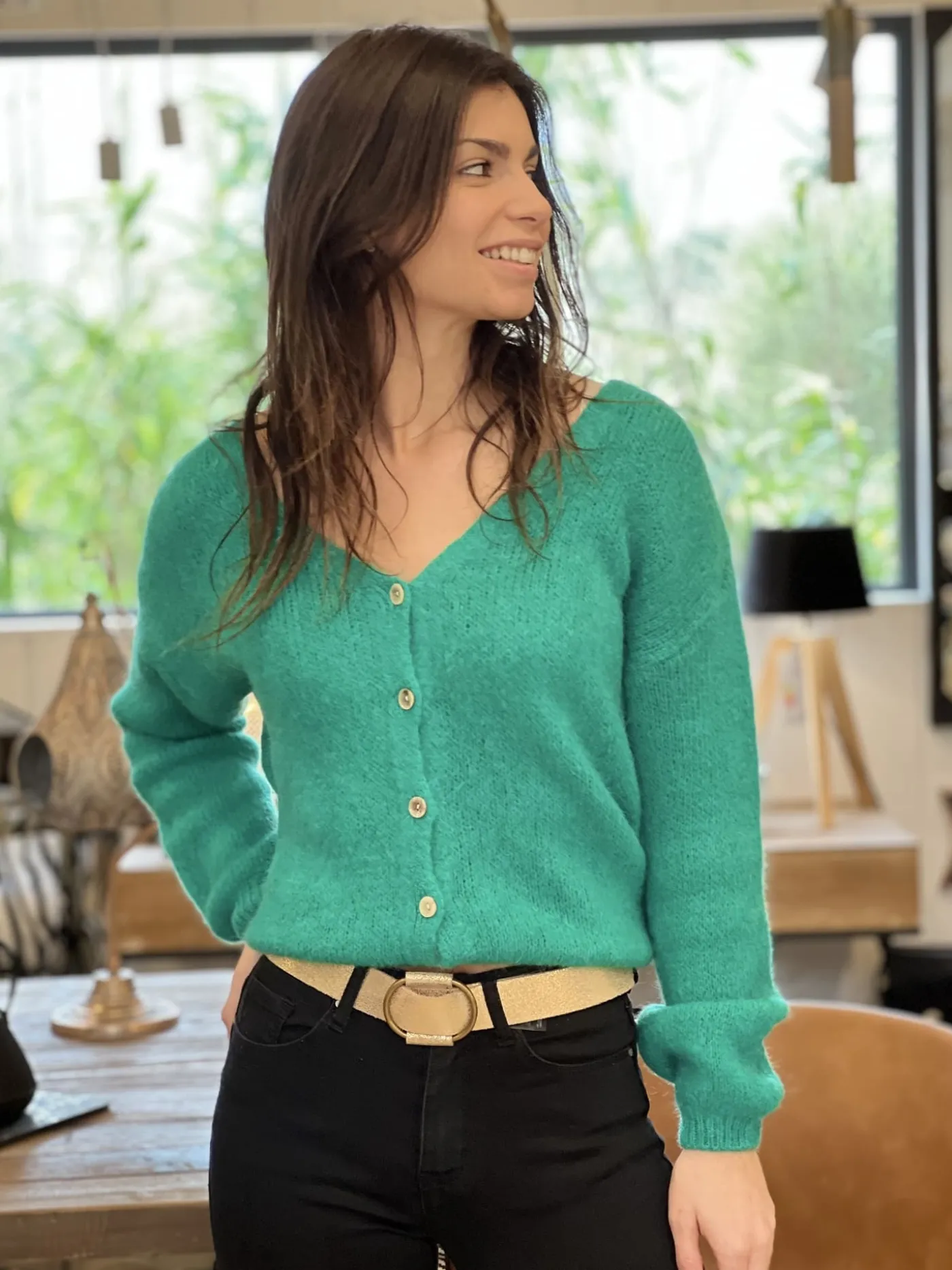 Justine mesure 1m69. Elle porte la taille 80 pour ce modèle.