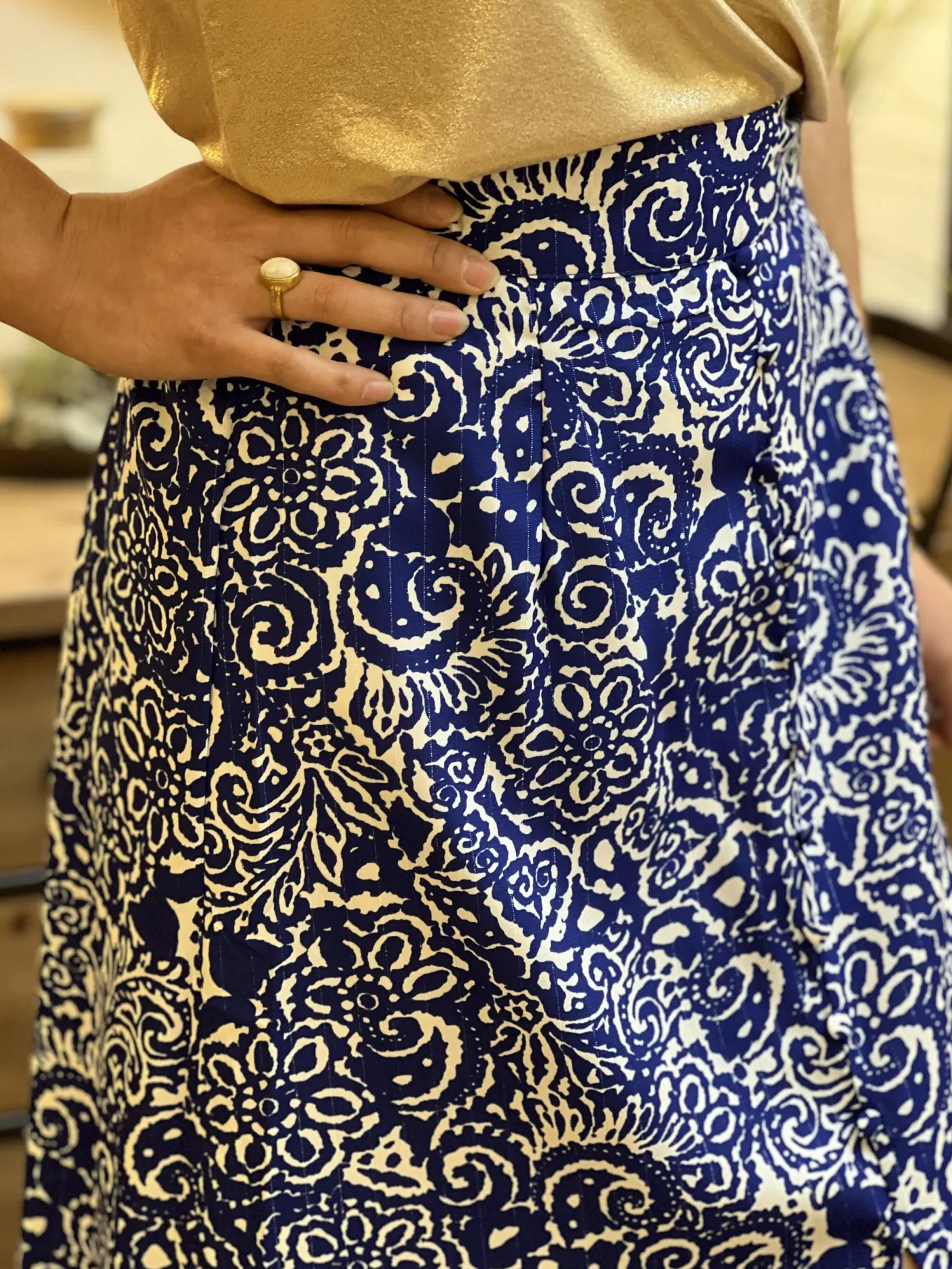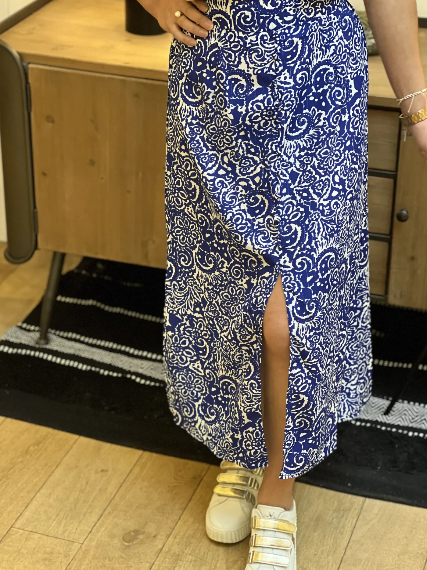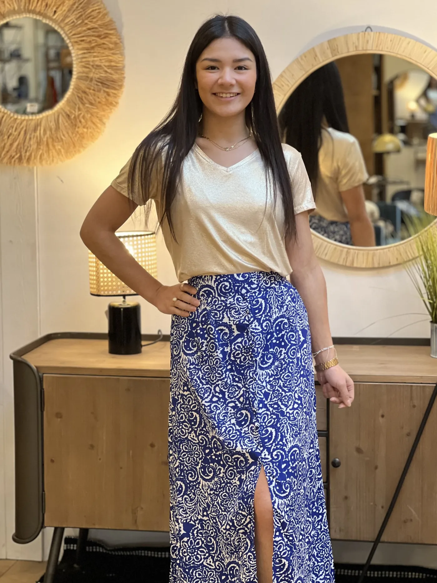 JUPE mi-longue imprimé aztèque blancTaille : Mathilde mesure 1m65. Elle porte la taille S/M pour ce modèle. Taille…