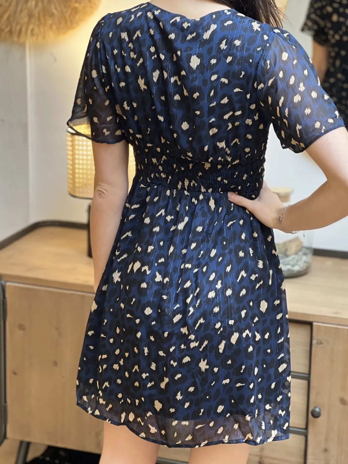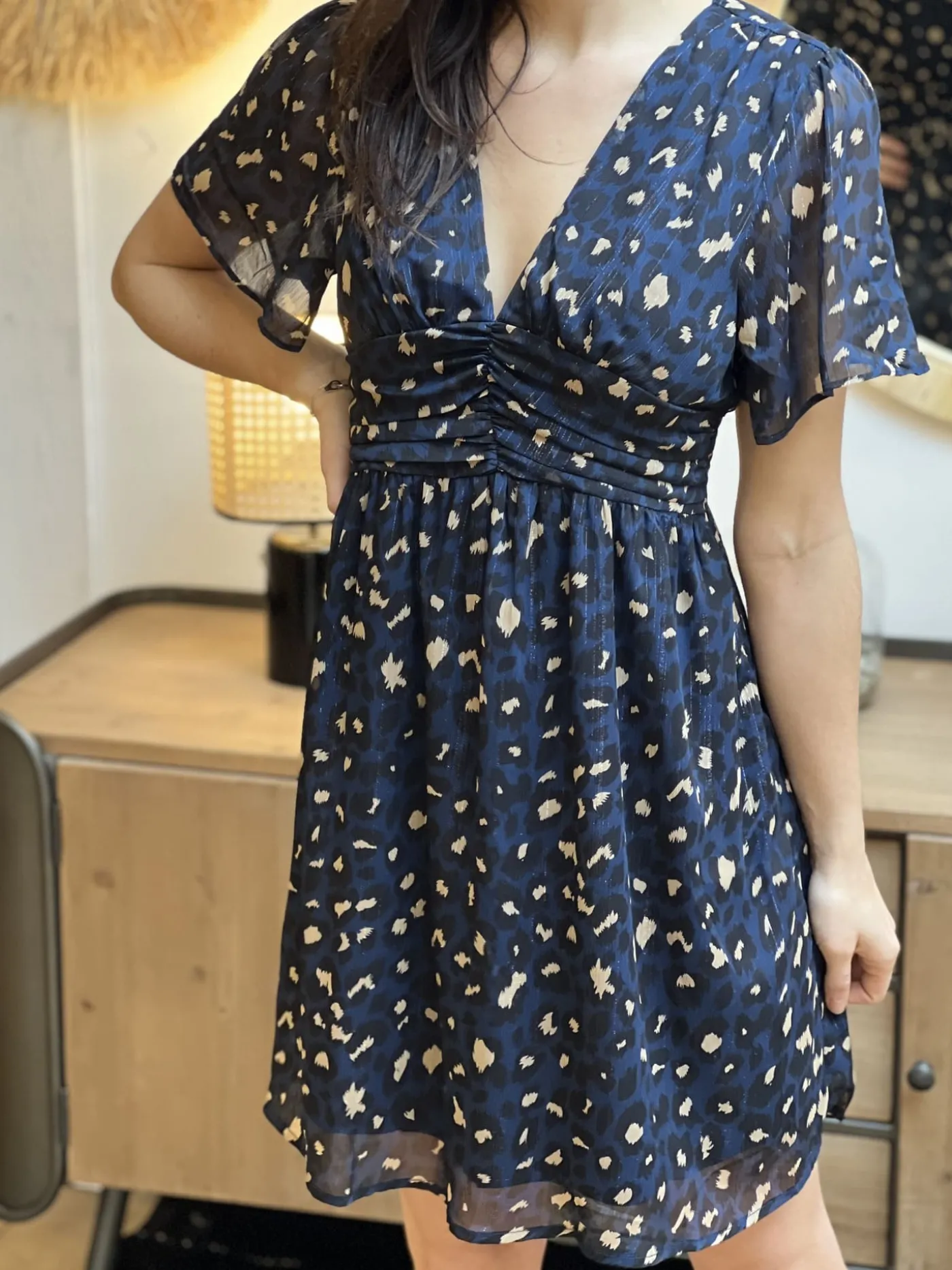 - robe courte à ml col v – imprimé léopard