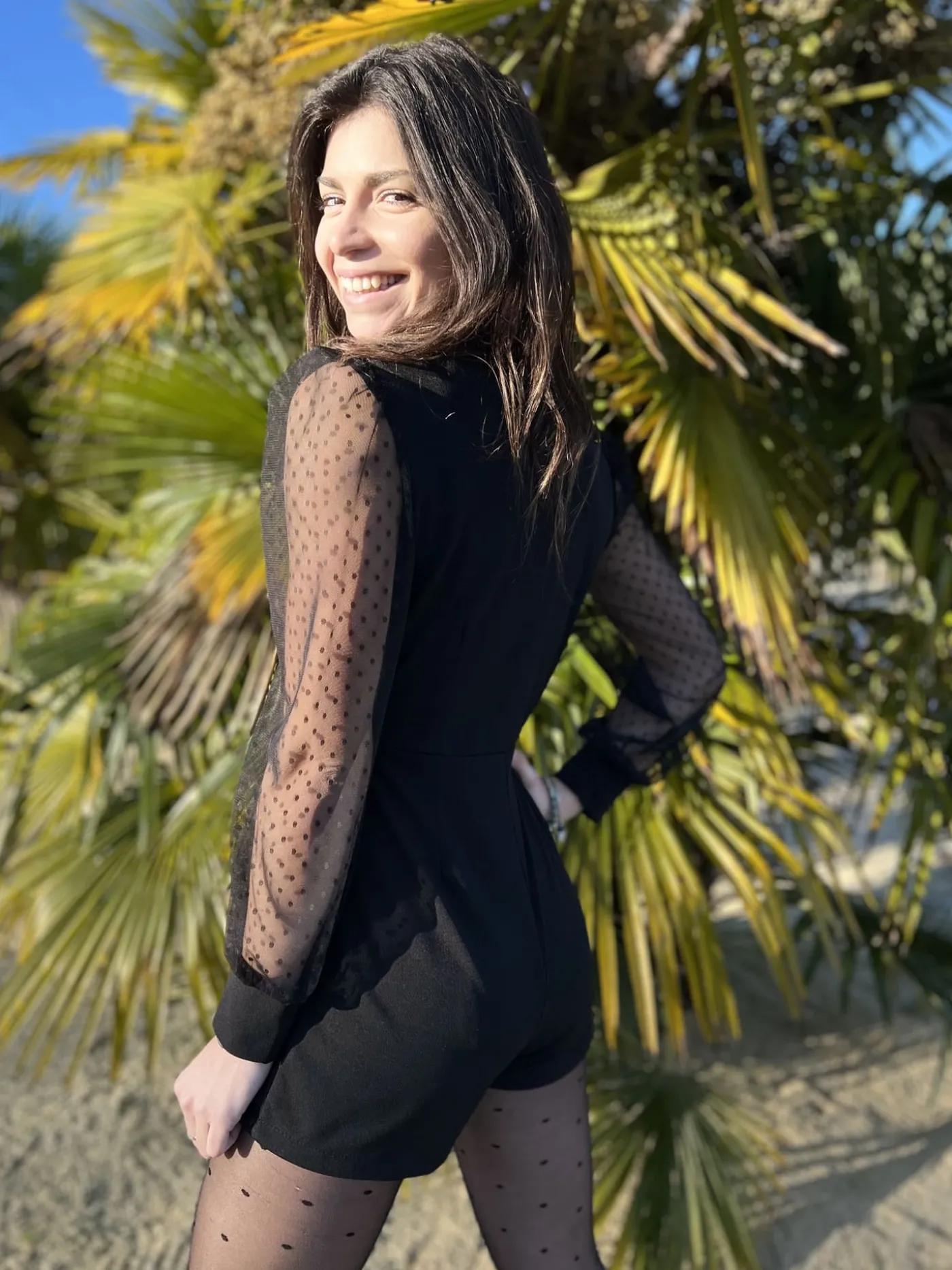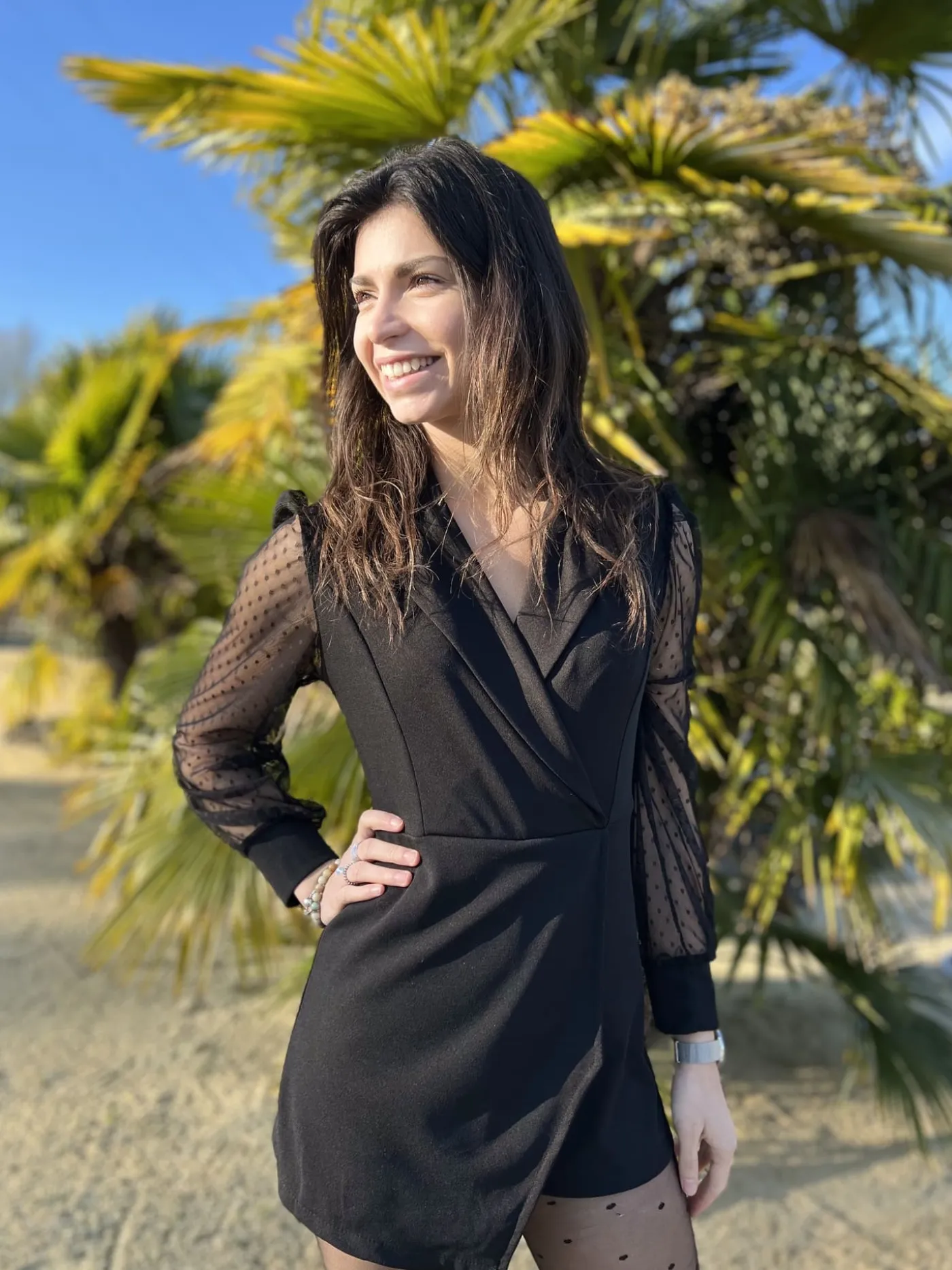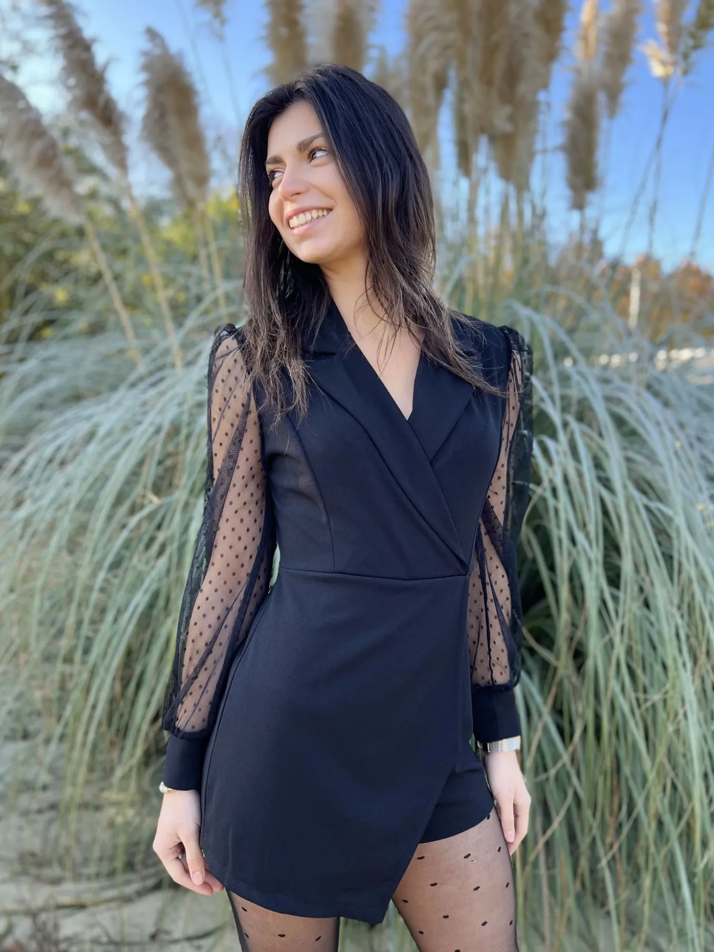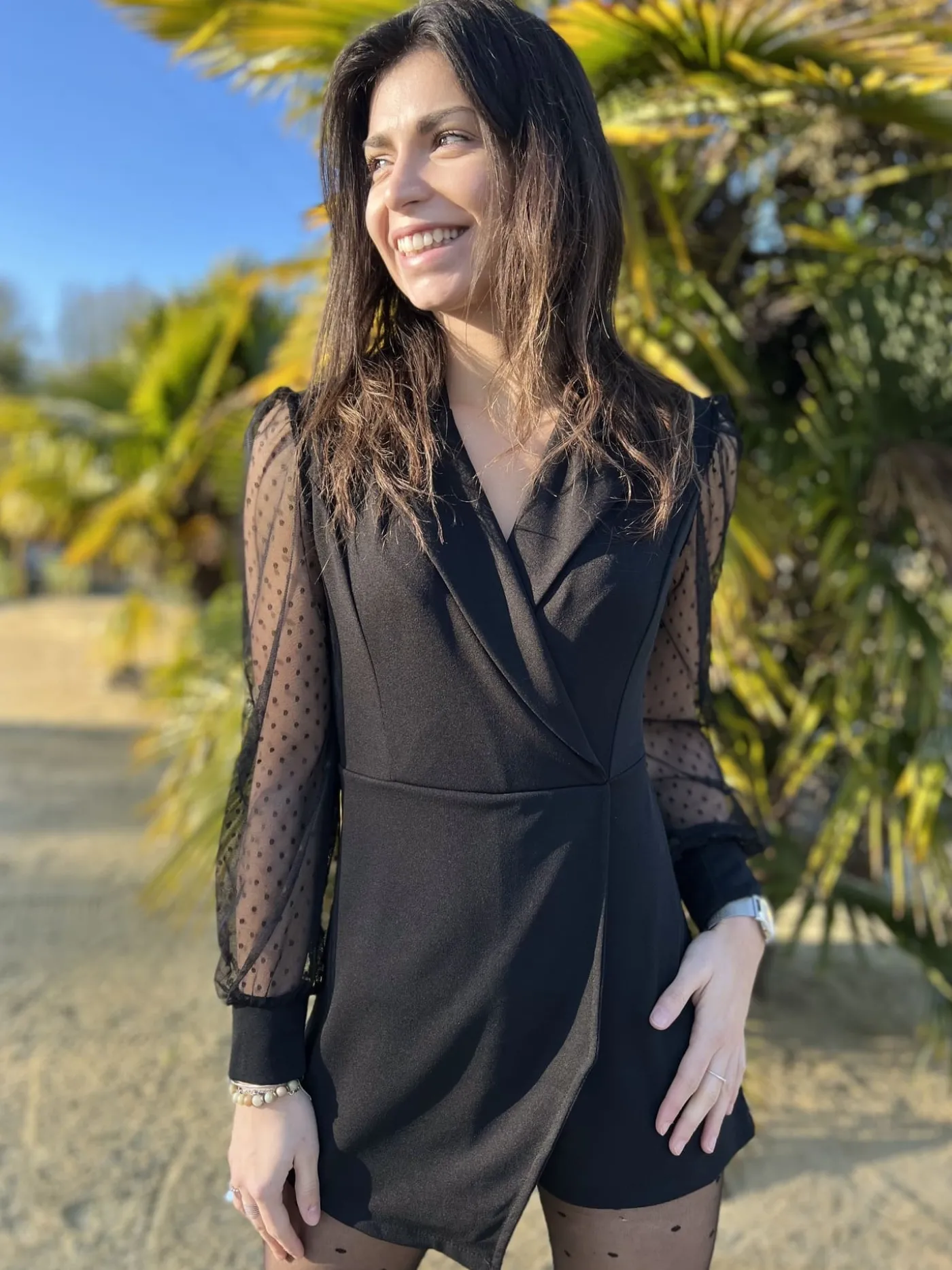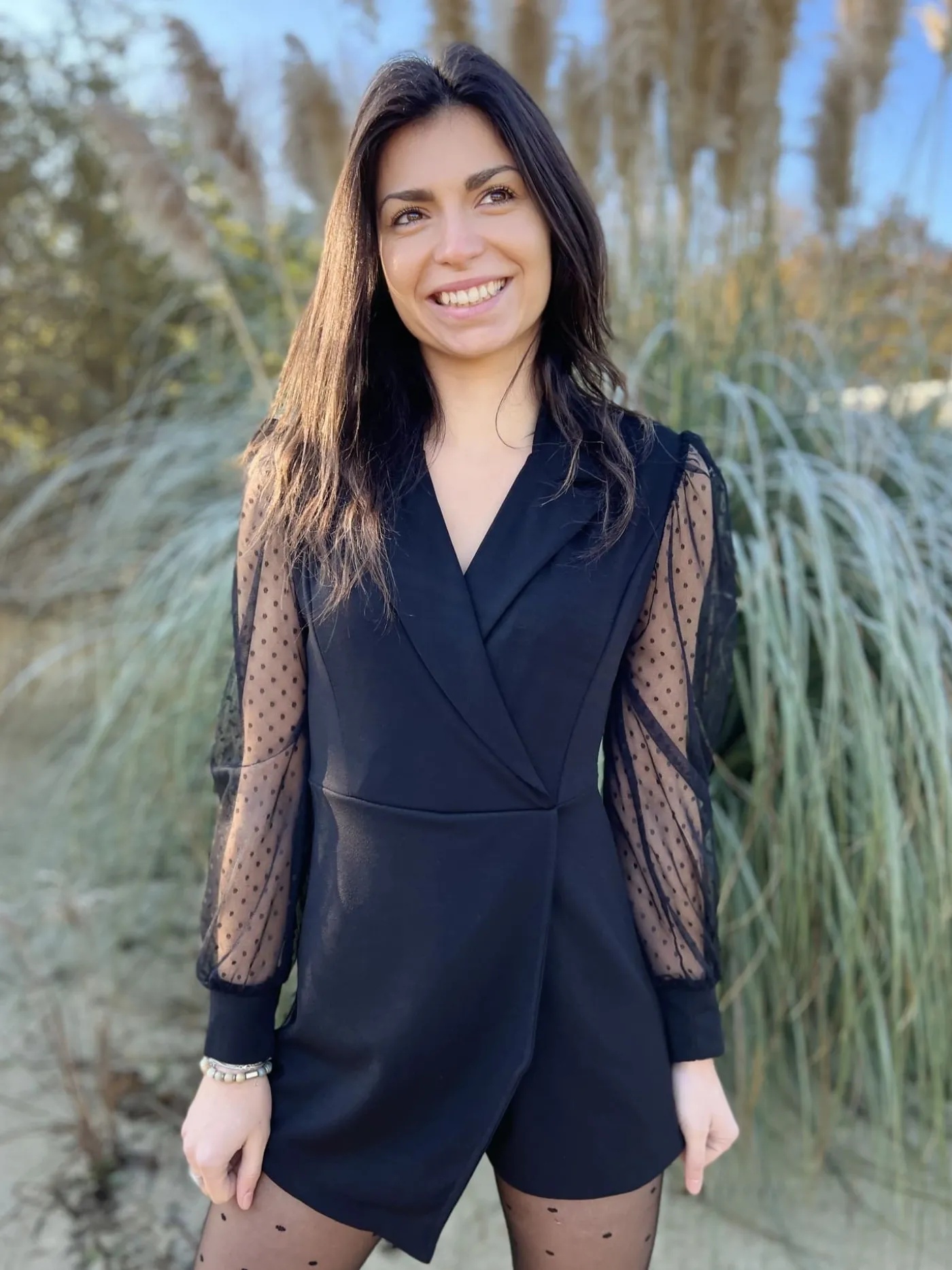Combishort/robe transparente dentelleImprimé poisCol cache cœur chemiseTaille : Justine mesure 1m69. Elle porte la ta…
