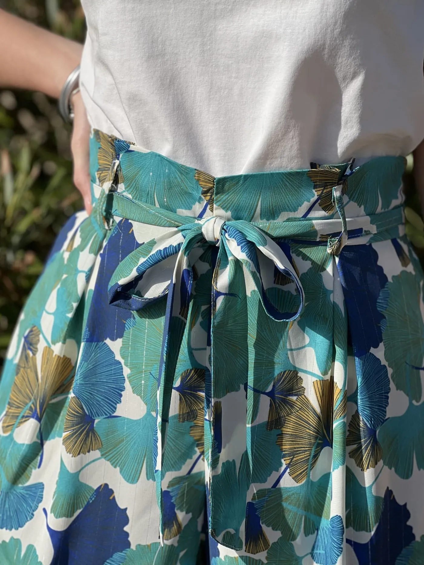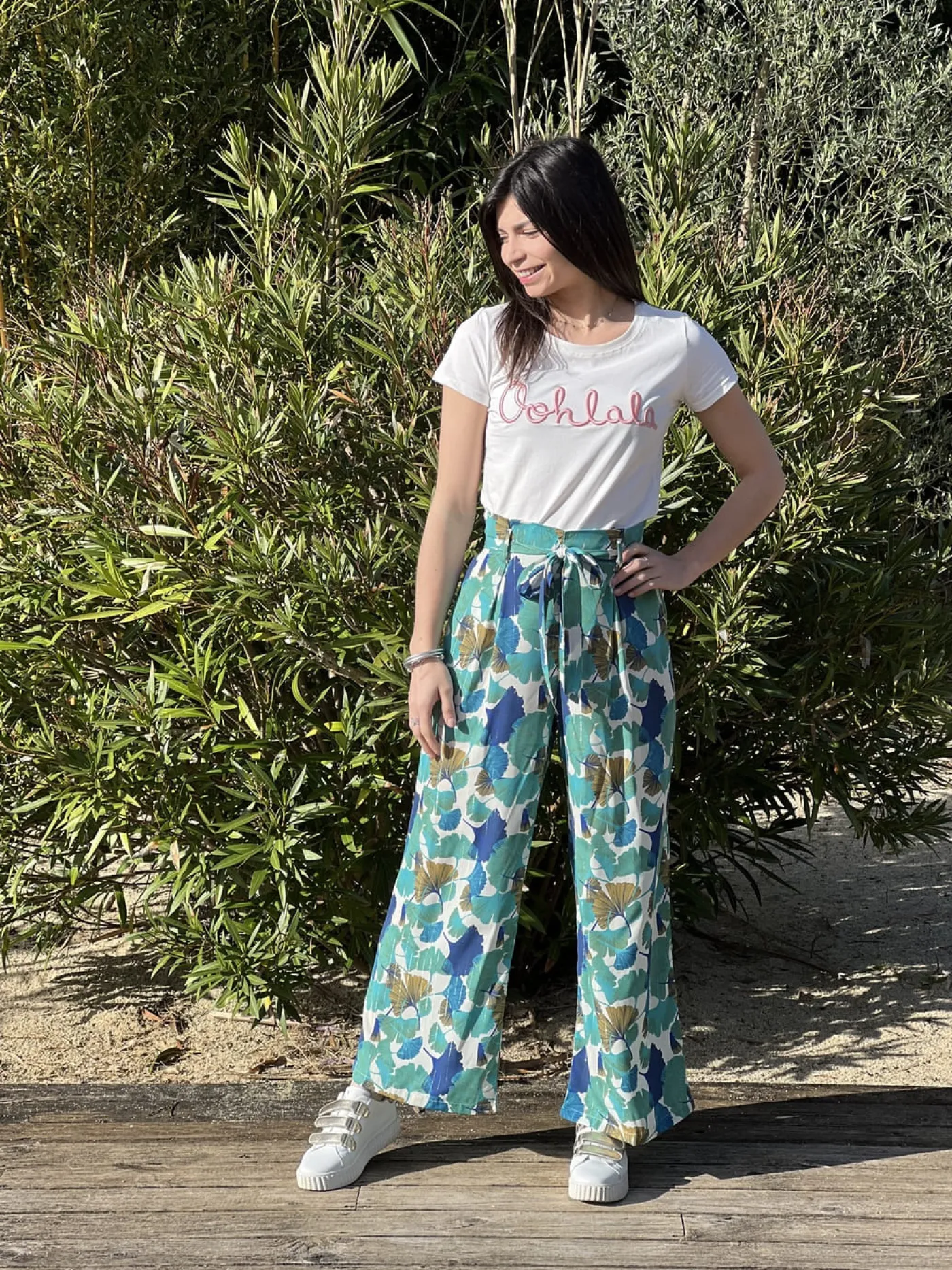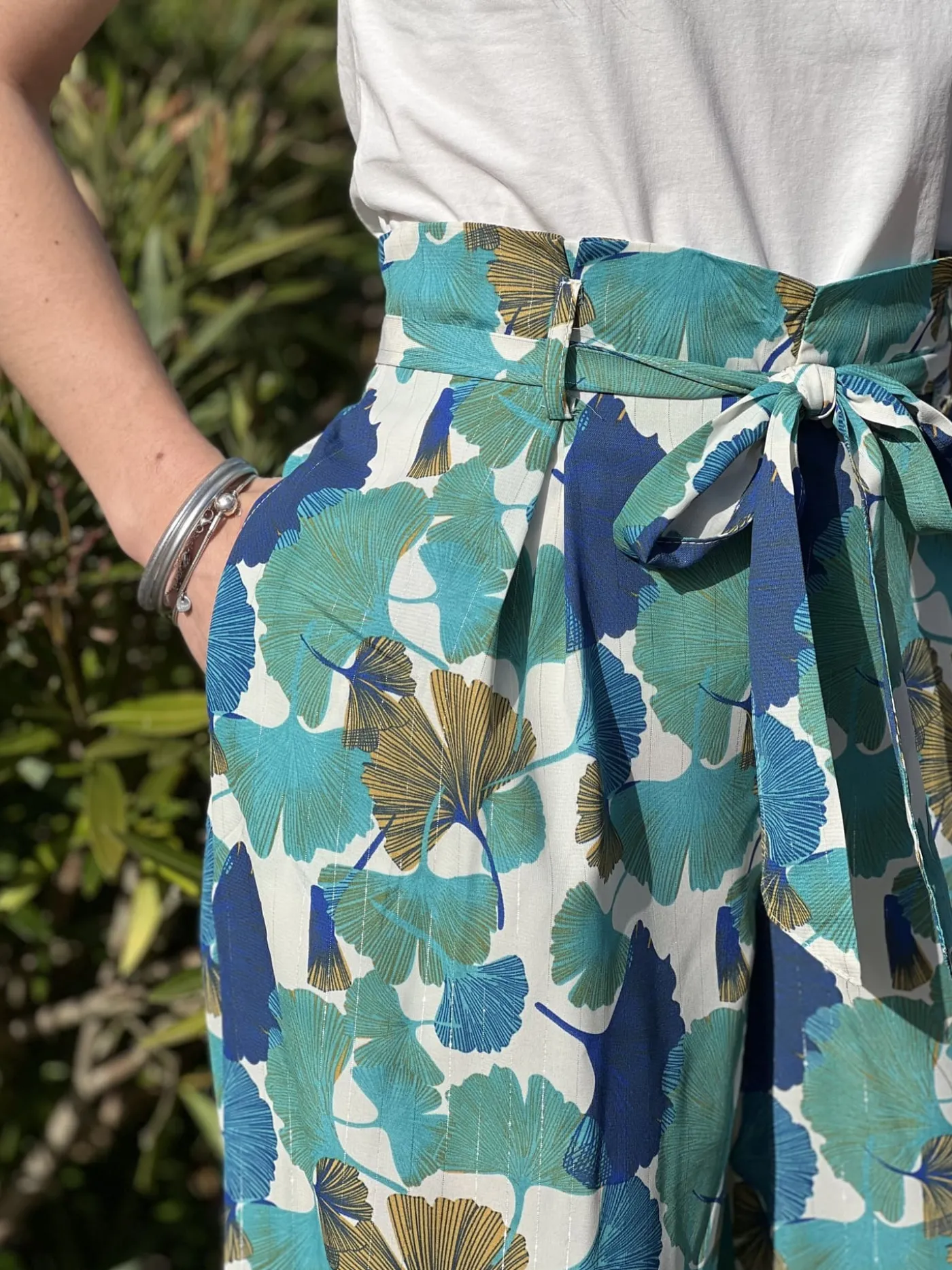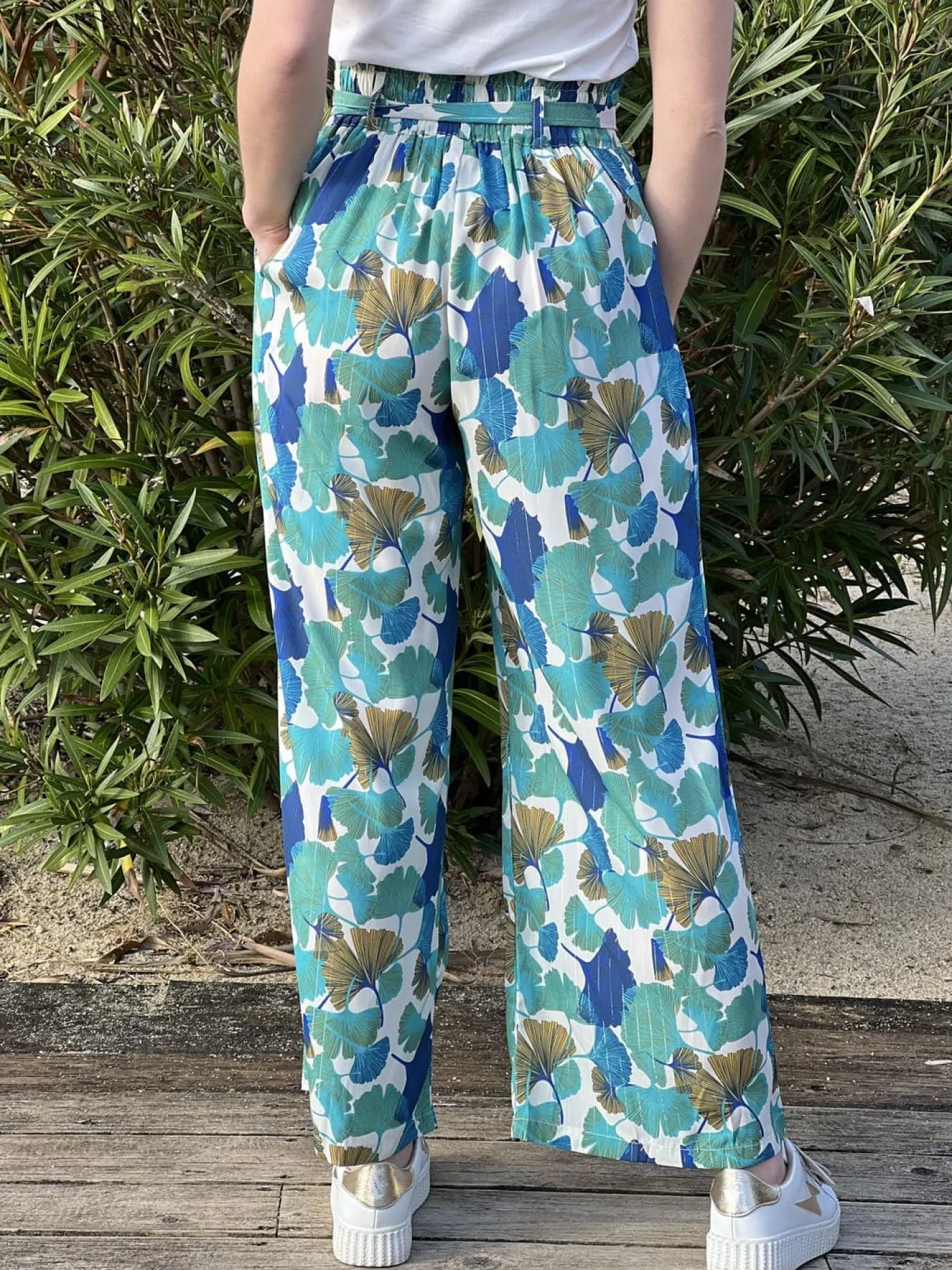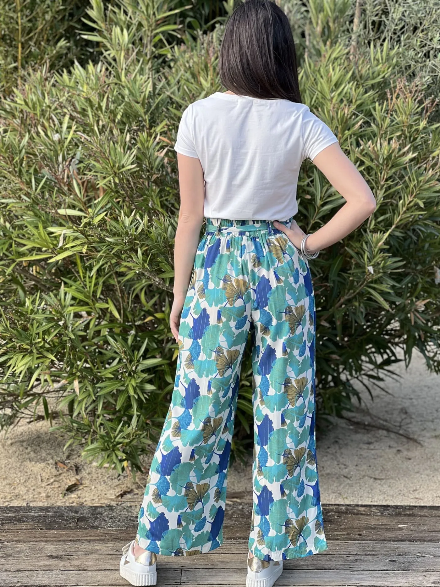 - PANTALON LARGE AVEC CEINTURE À LA TAILLE IMPRIMÉ PAON