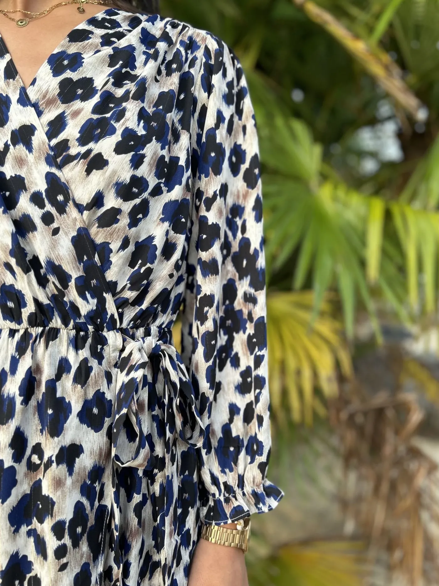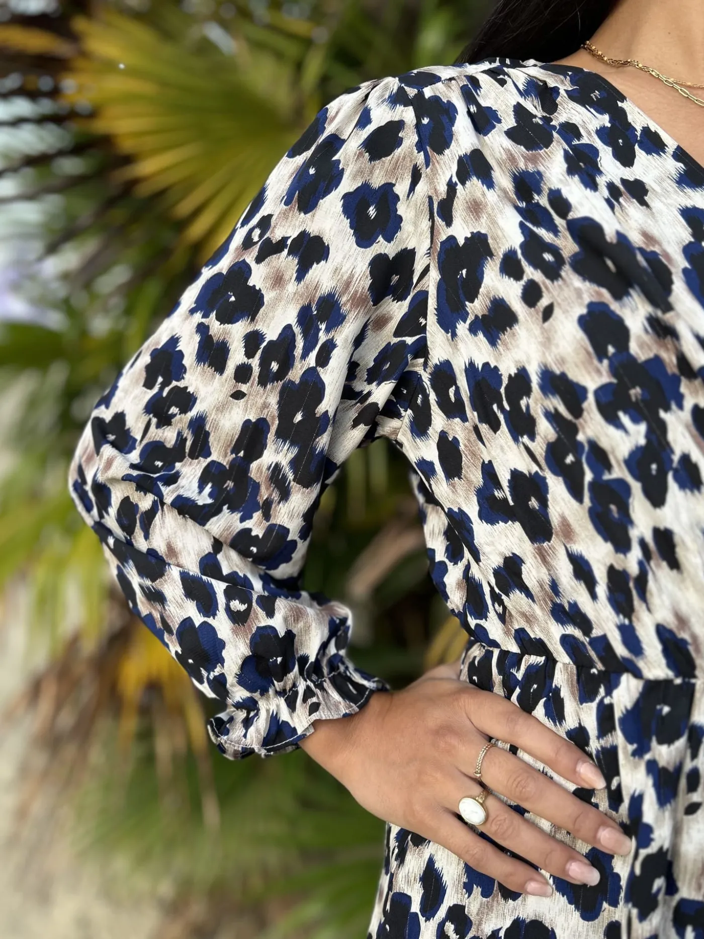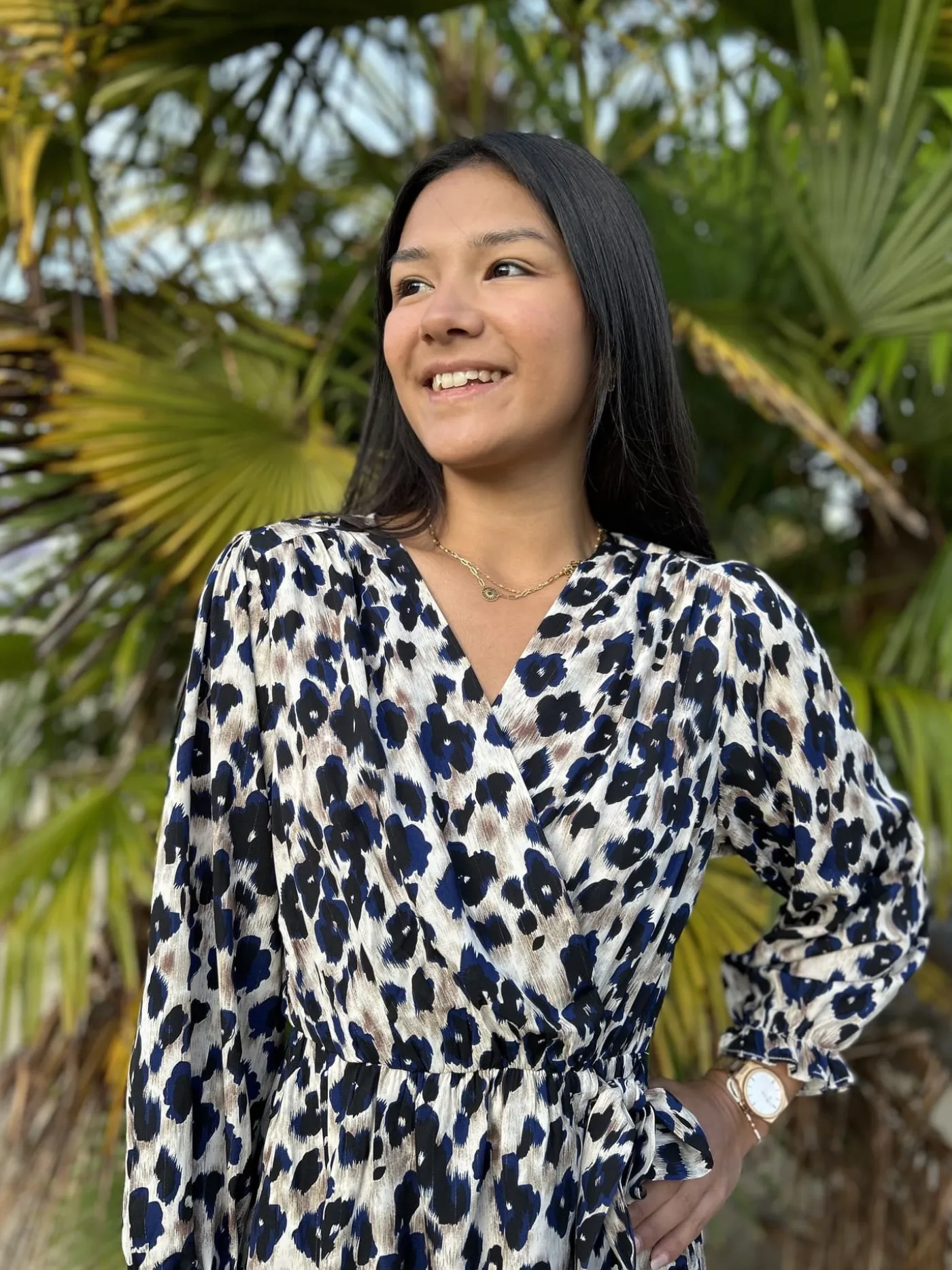 Robe ml col v à motifTaille : Mathilde mesure 1m68. Elle porte la taille S/M pour ce modèle. Taille : S/M (36-38)…