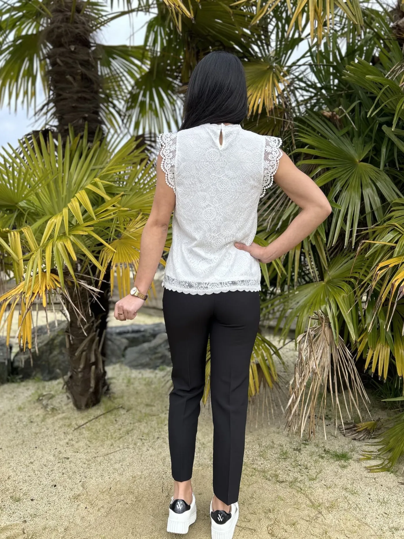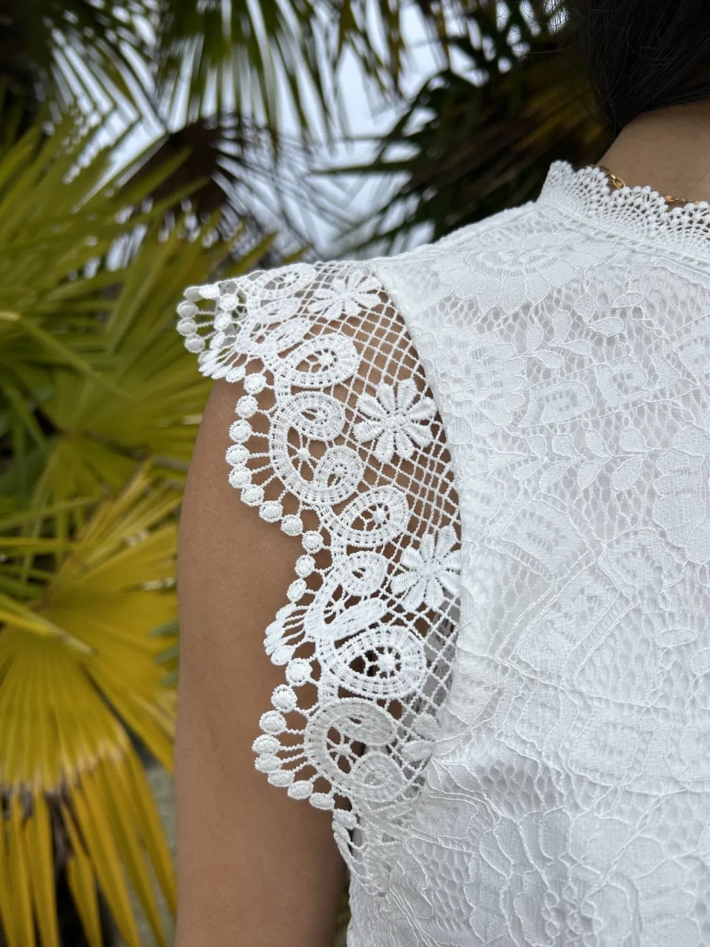 - TOP SANS MANCHES – COL HAUT À DENTELLE