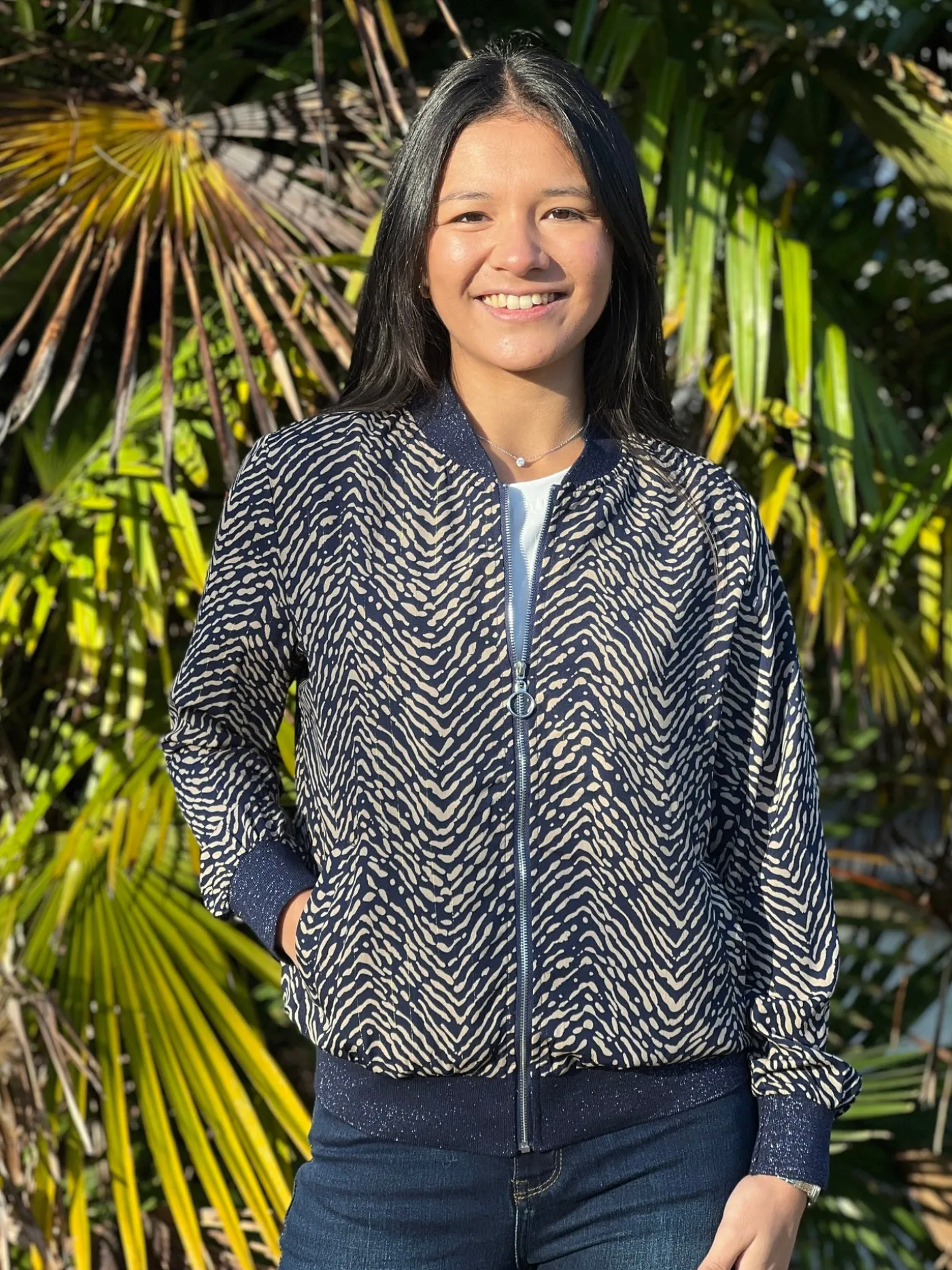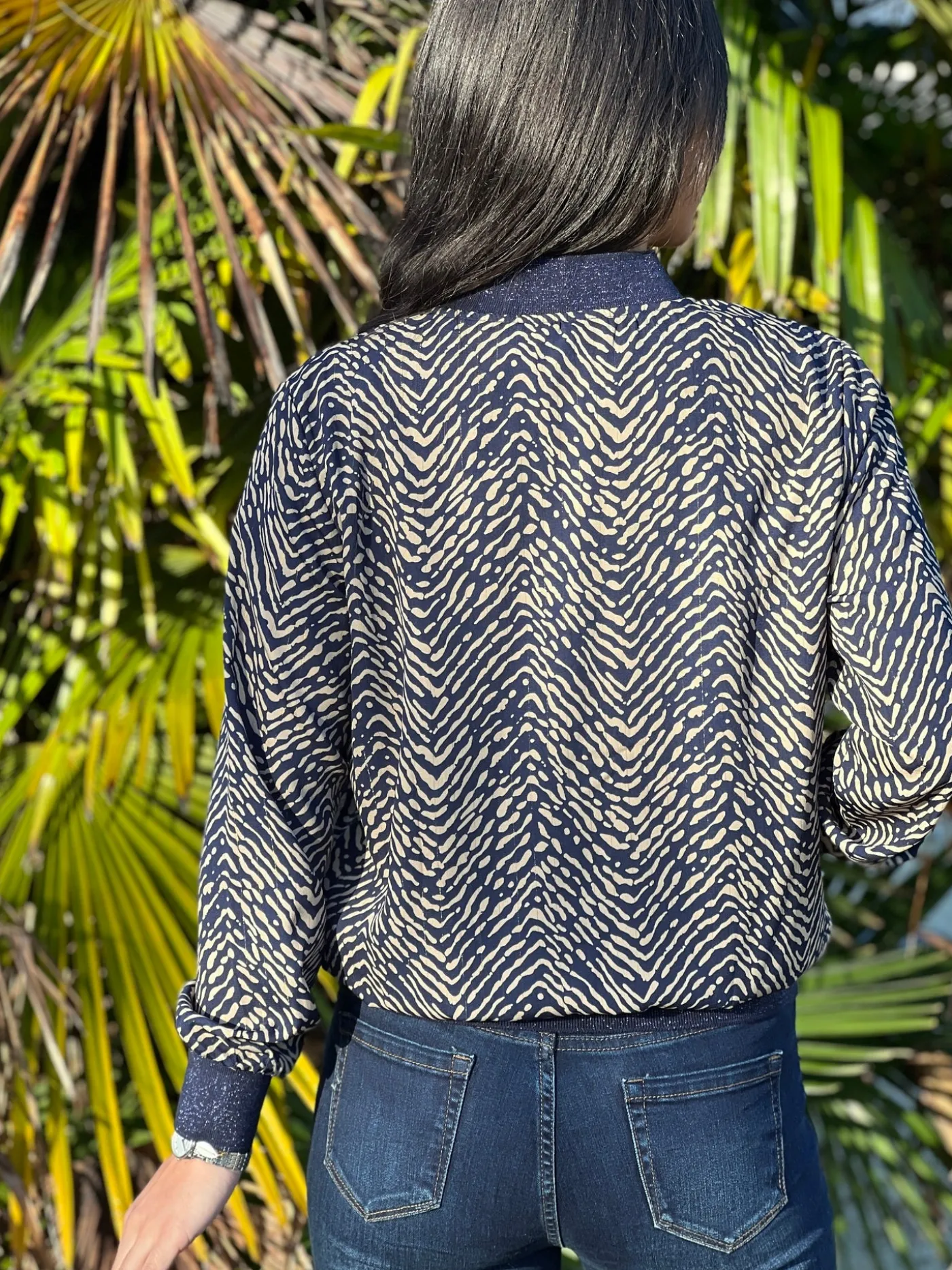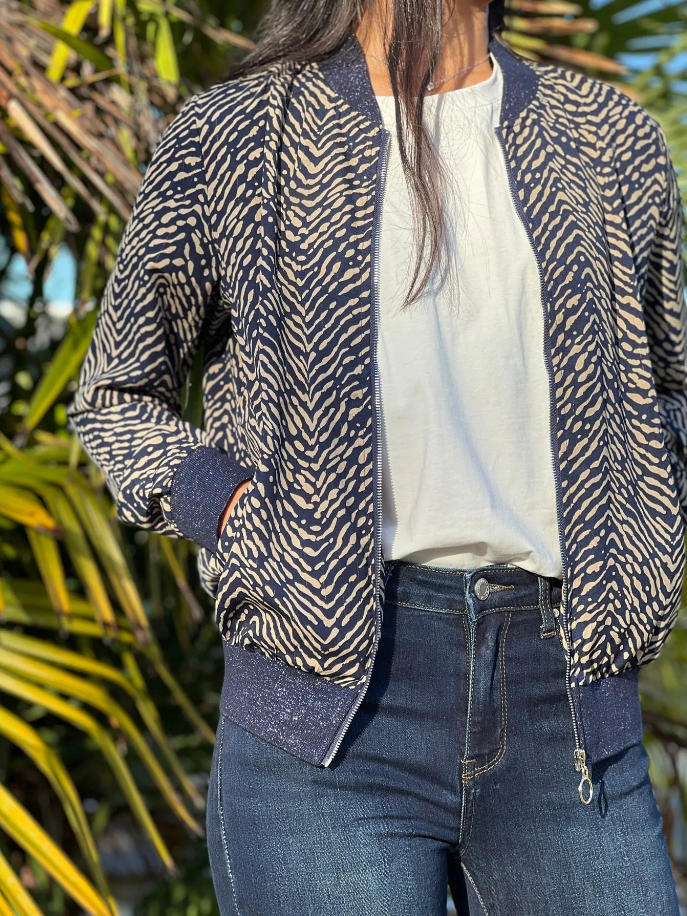 - BOMBER MOTIF ANIMALIER BLEU ET ECRU