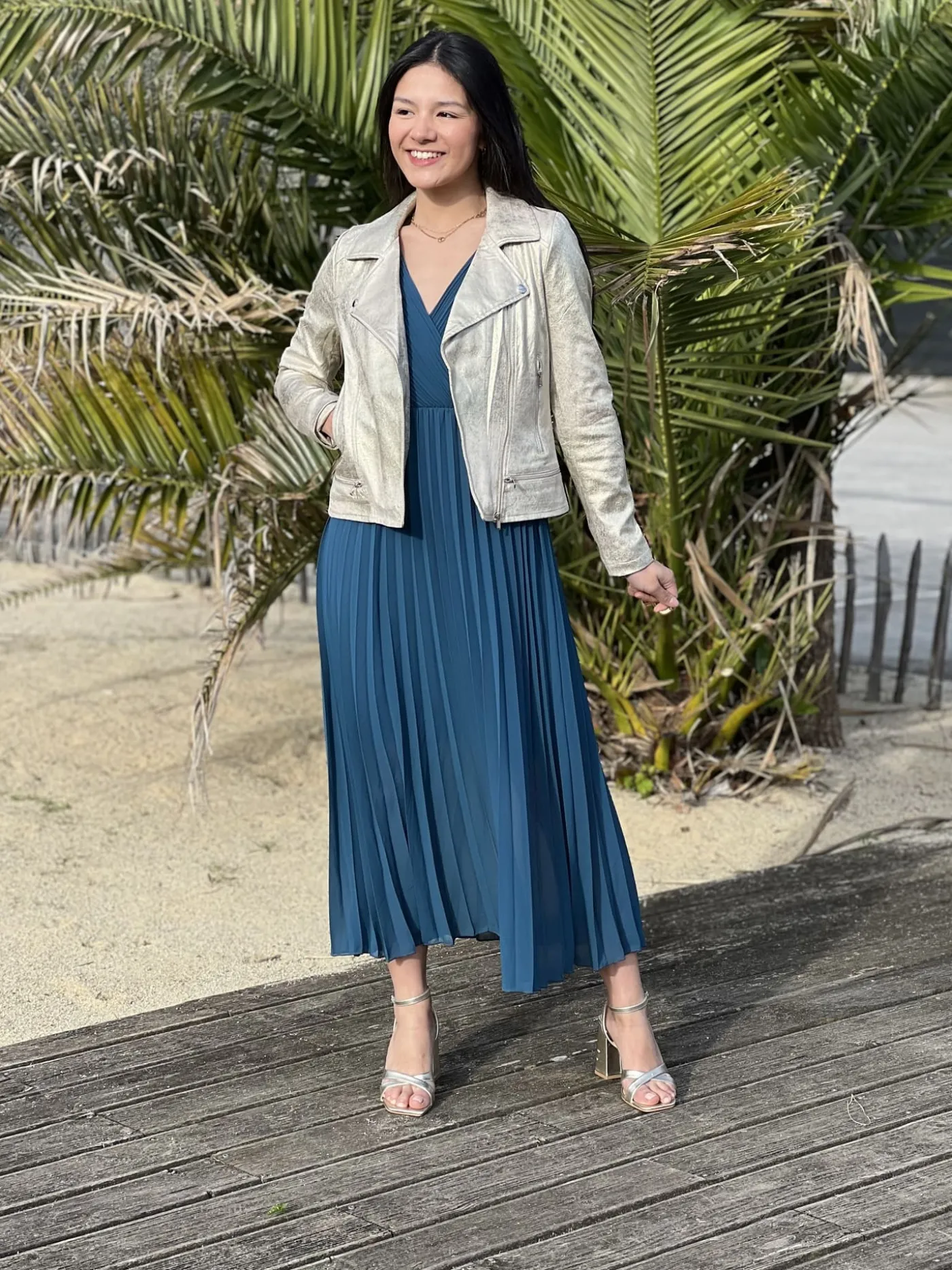 Mathilde mesure 1m65. Elle porte la taille S pour ce modèle.