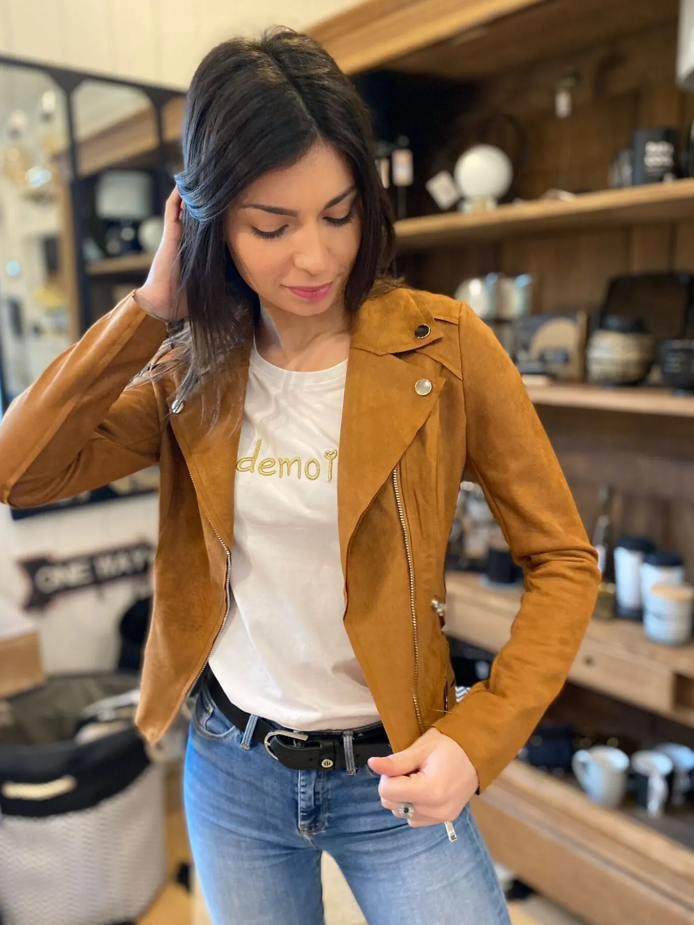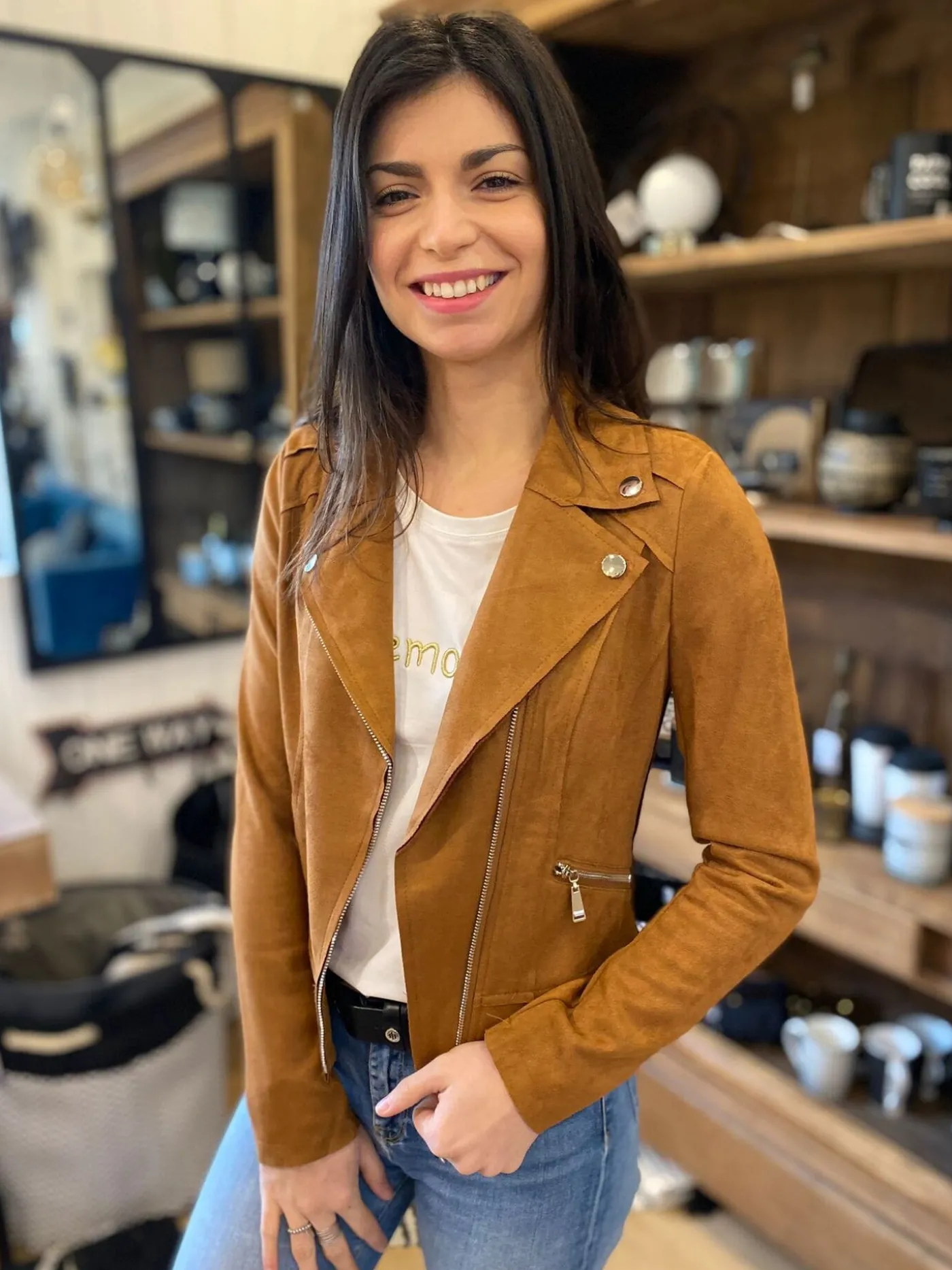 PERFECTO EN DAIM Justine mesure 1m69 et Maëlys mesure 1m68. Elles portent la taille S pour ce modèle. Nous vous reco…