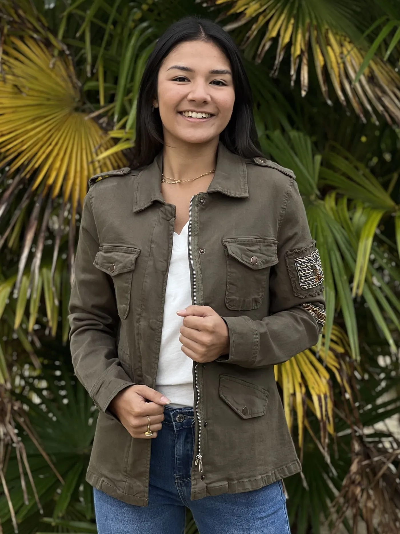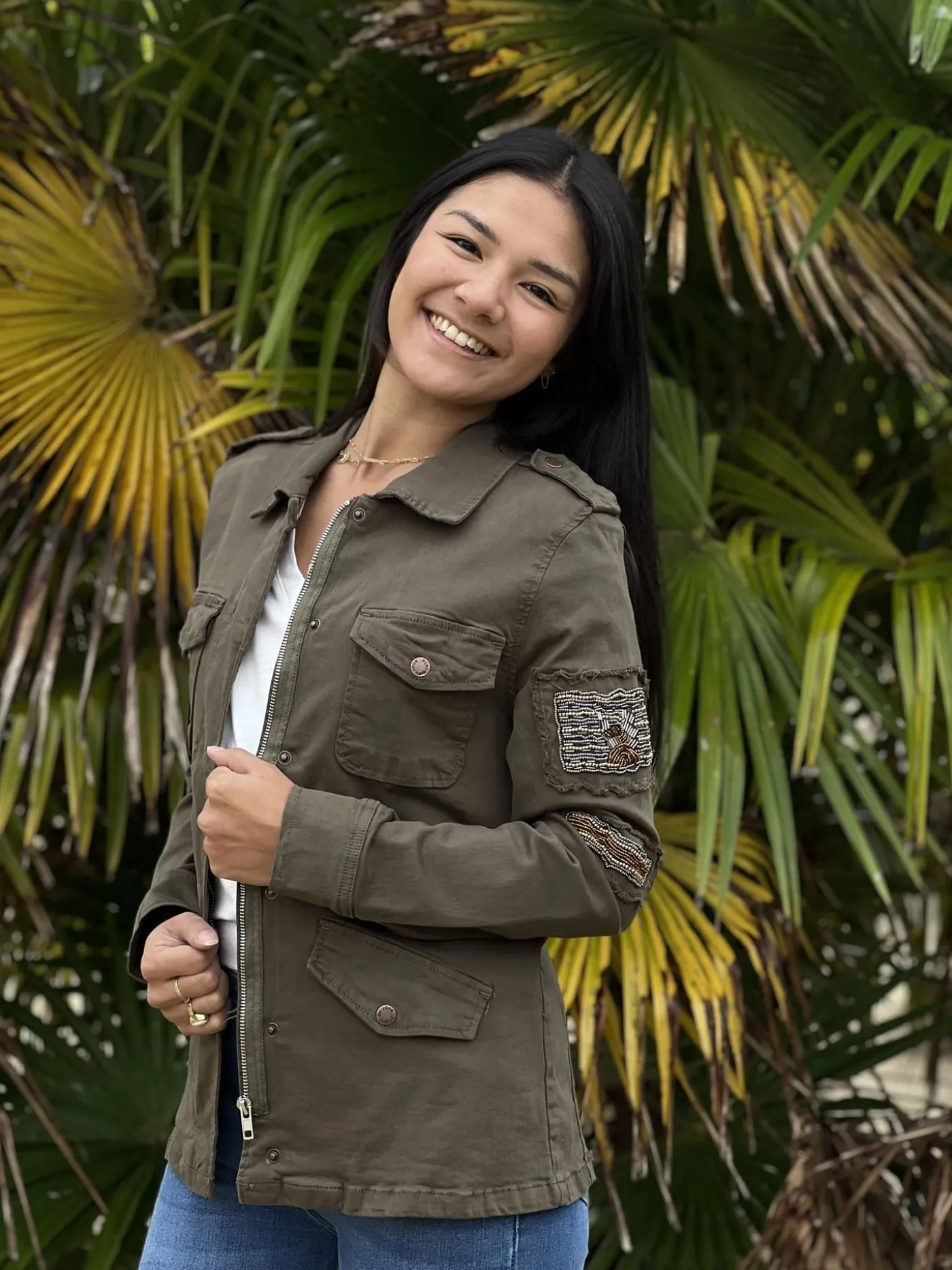 Veste courte à ml militaire à boutons Mathilde mesure 1m65 et porte la taille S. Taille : XS (34) / S (36) / M (38)…