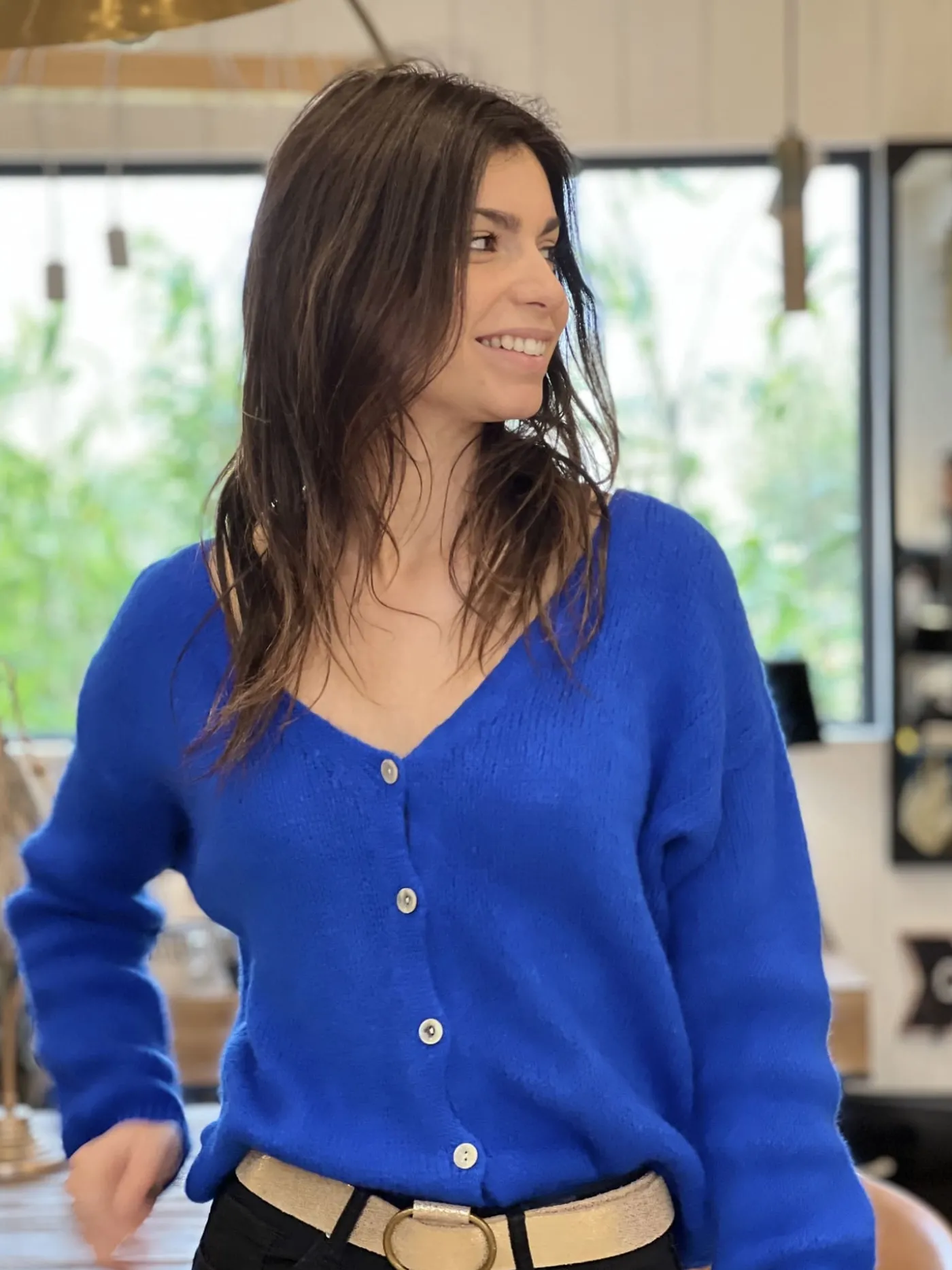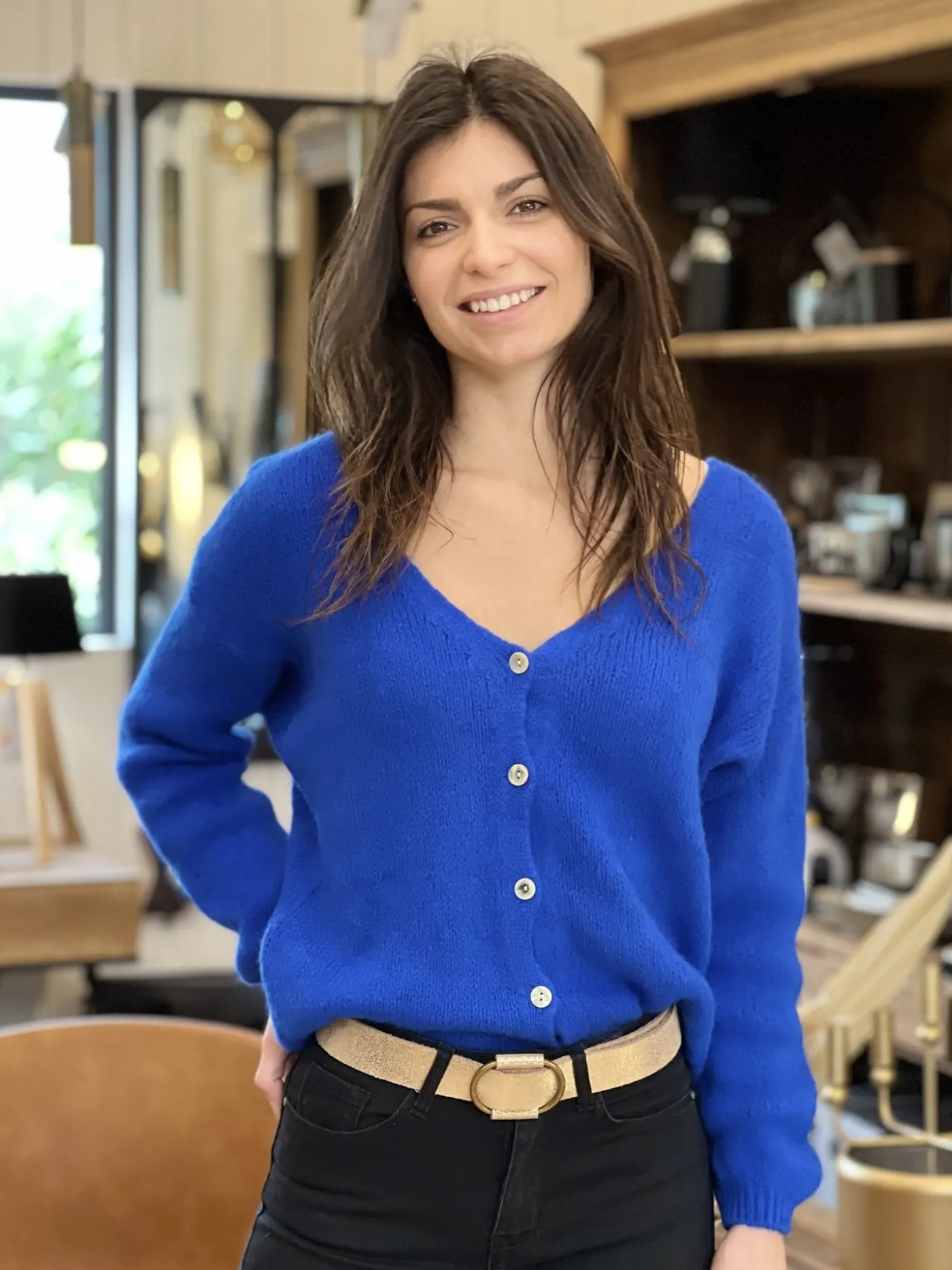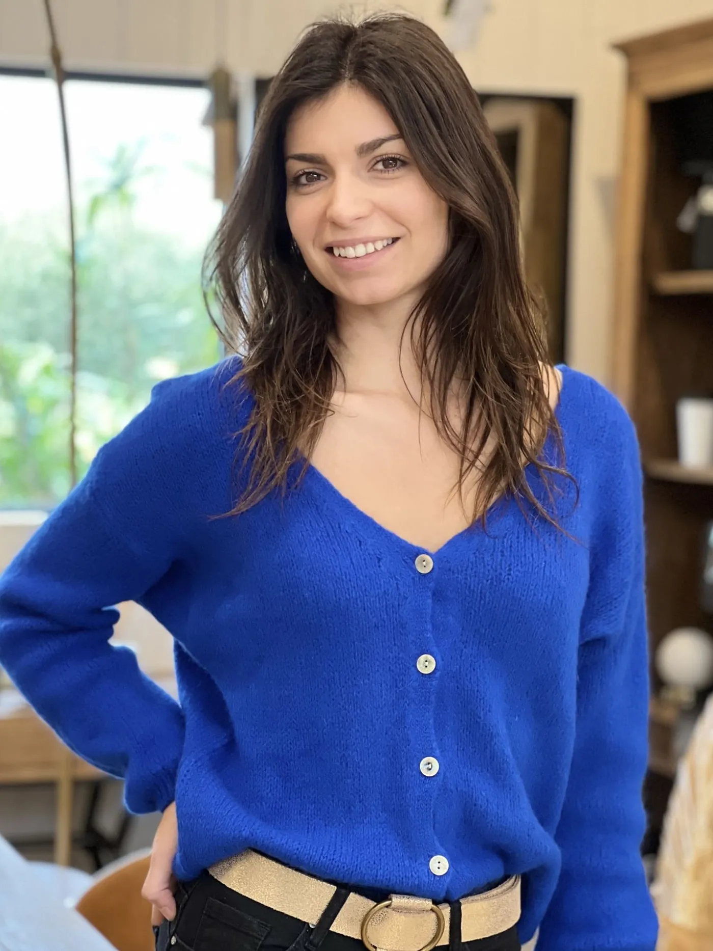 Gilet Col V Bouton devantUniTaille : Justine mesure 1m69 et Louann mesure 1m64. Elles portent la taille Taille unique …