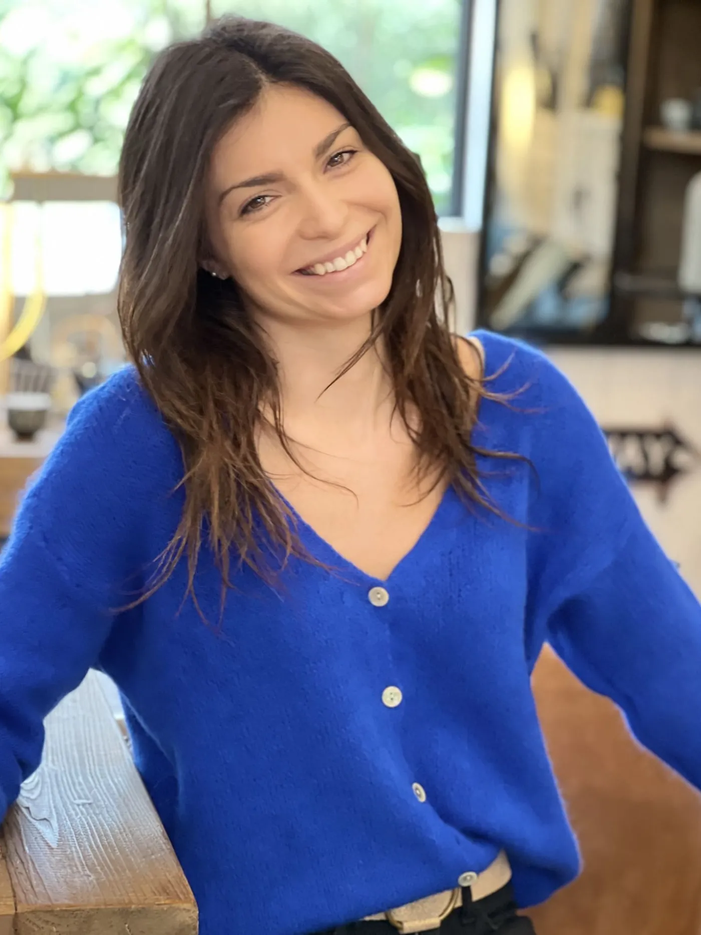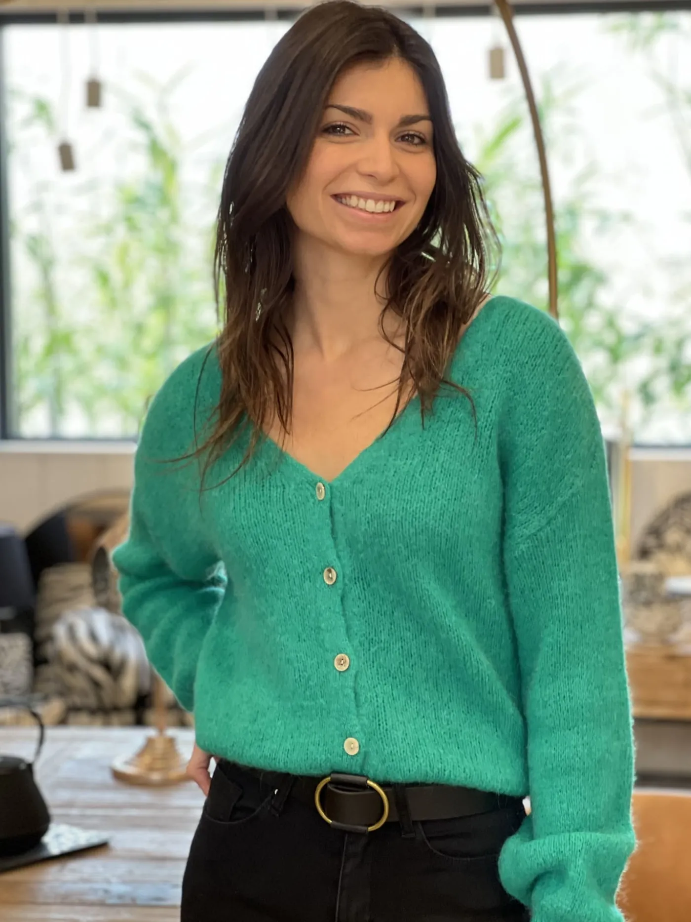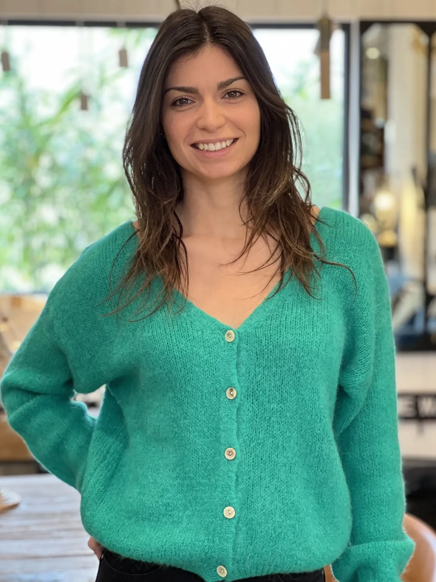 Gilet Col V Bouton devantUniTaille : Justine mesure 1m69 et Louann mesure 1m64. Elles portent la taille Taille unique …