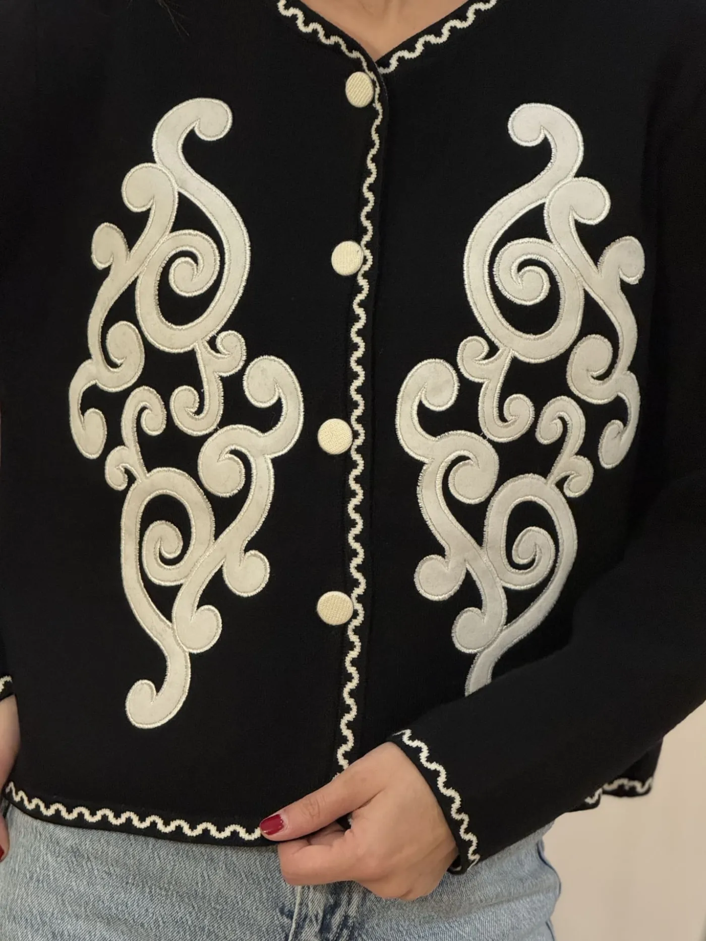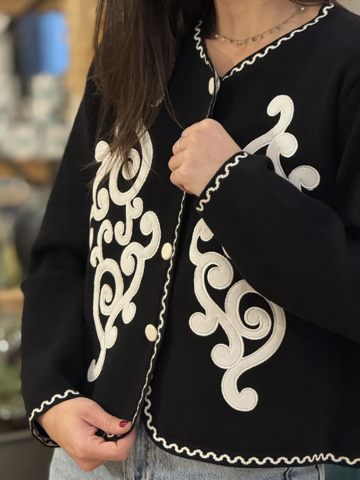 - GILET à ml avec boutons devant + imprimé arabesque
