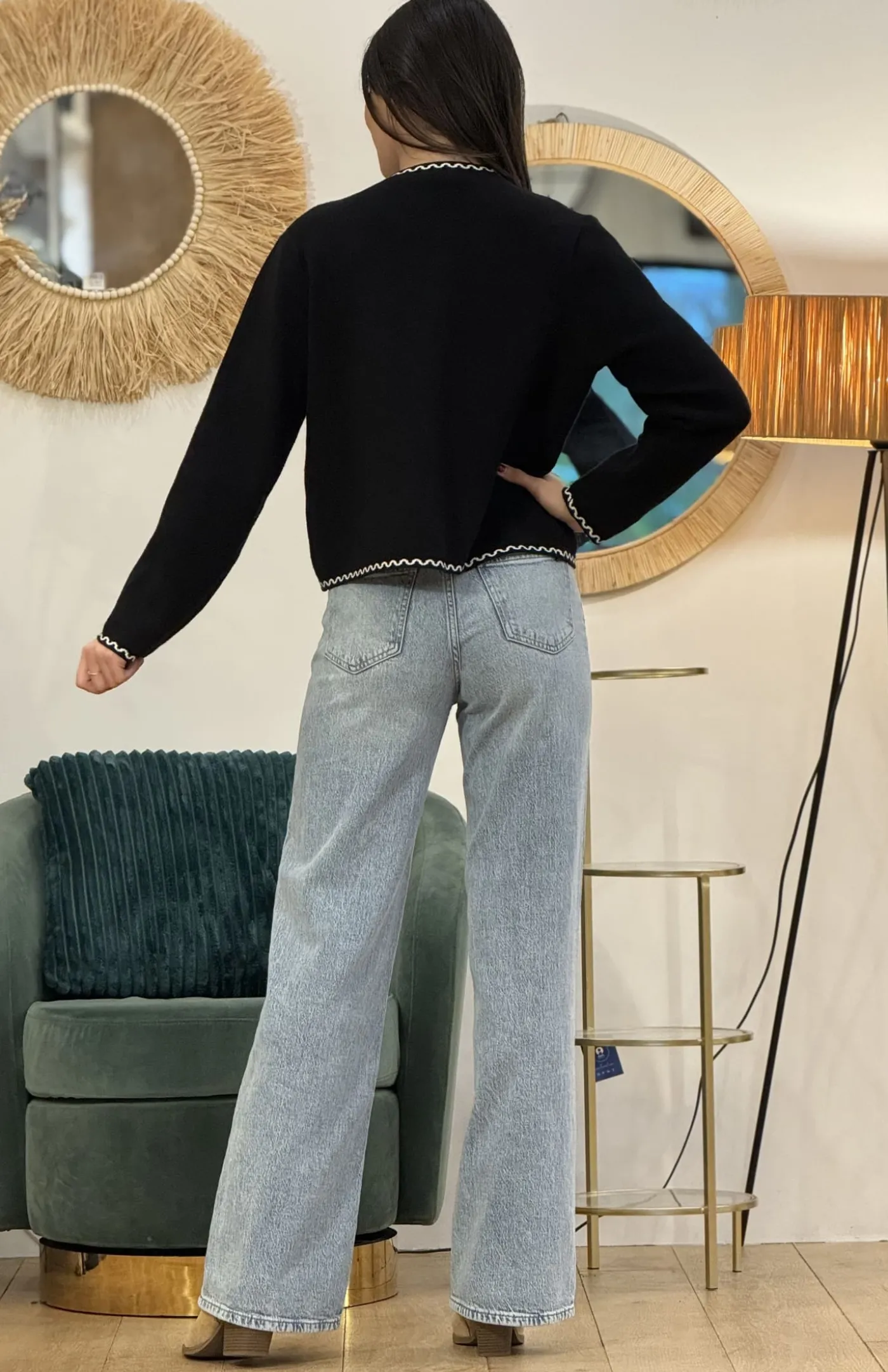 GILET à ml avec boutons devant + imprimé arabesqueTaille : Justine mesure 1m69. Elle porte la taille Taille unique po…
