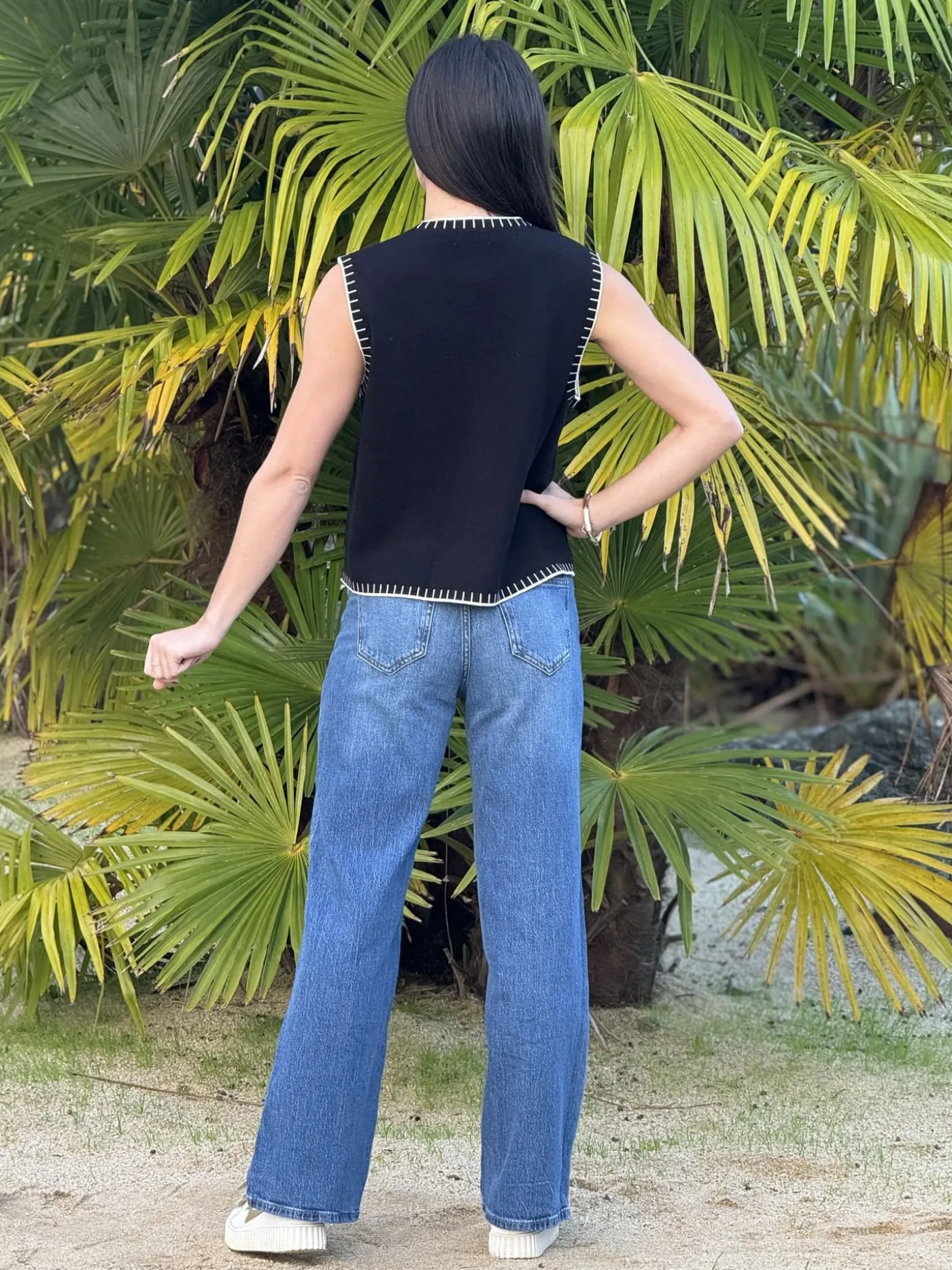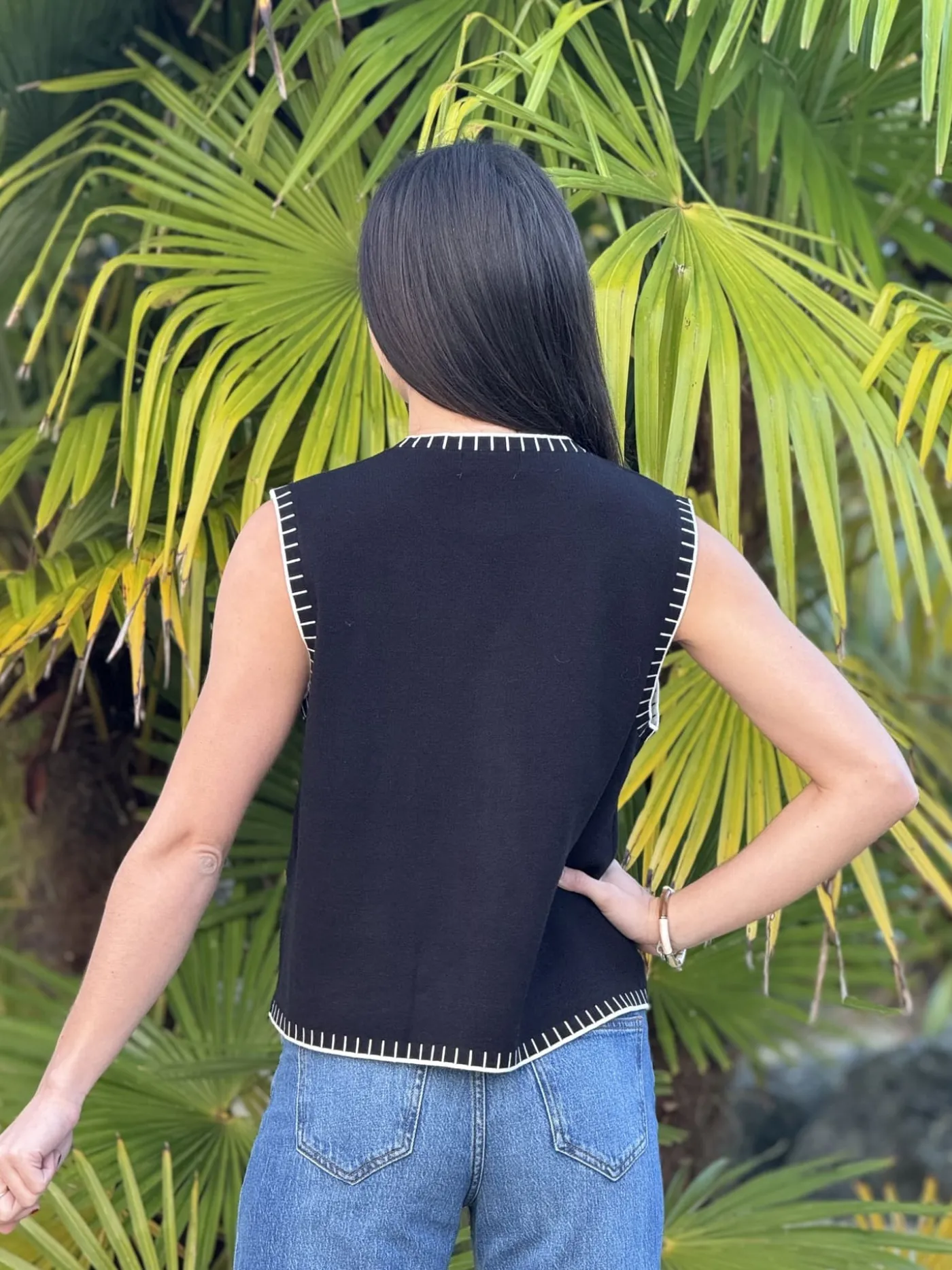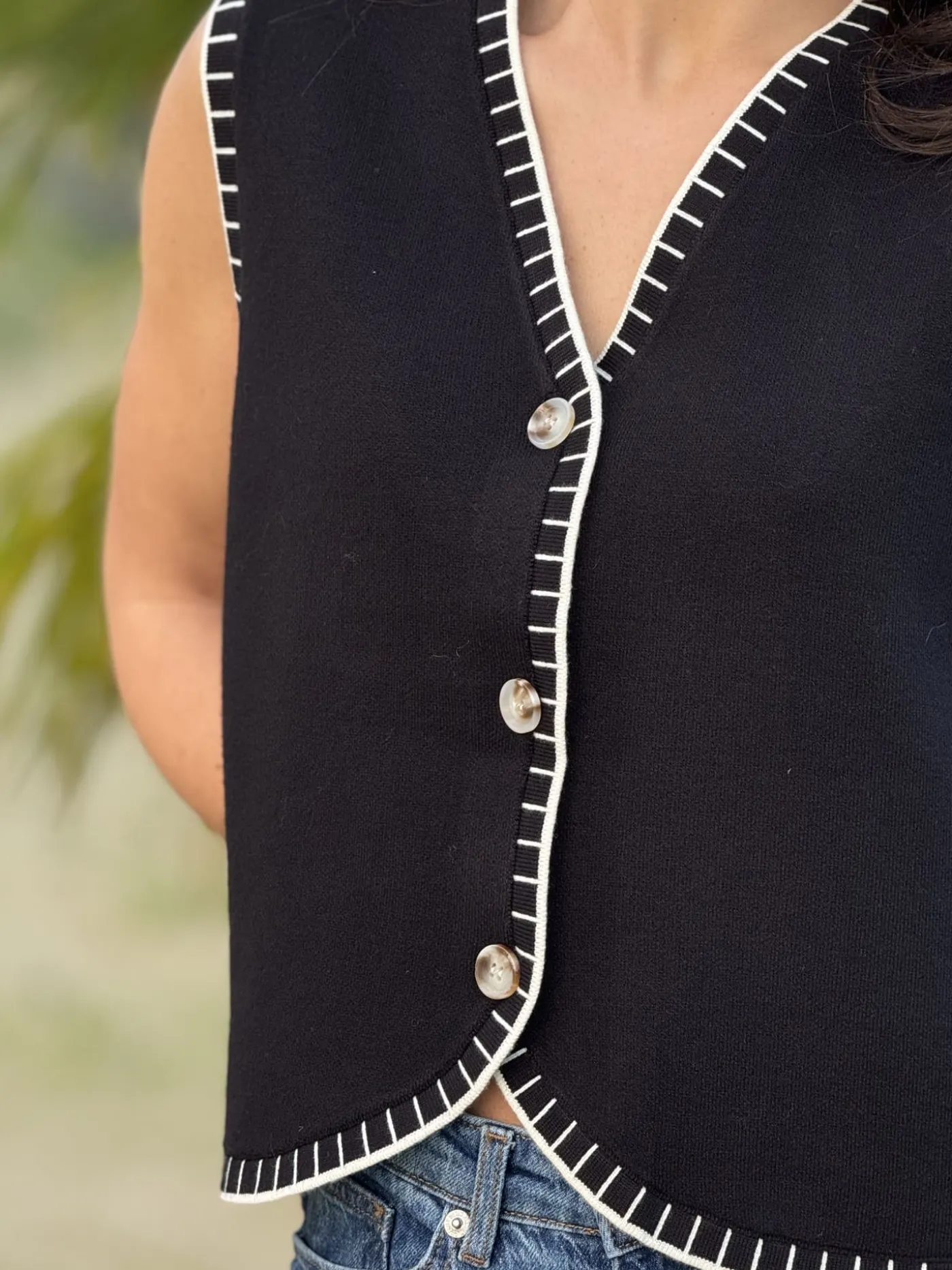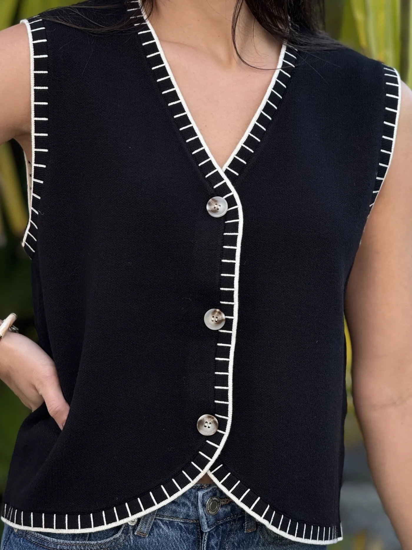 - GILET SANS MANCHE contour blanc – 3 boutons