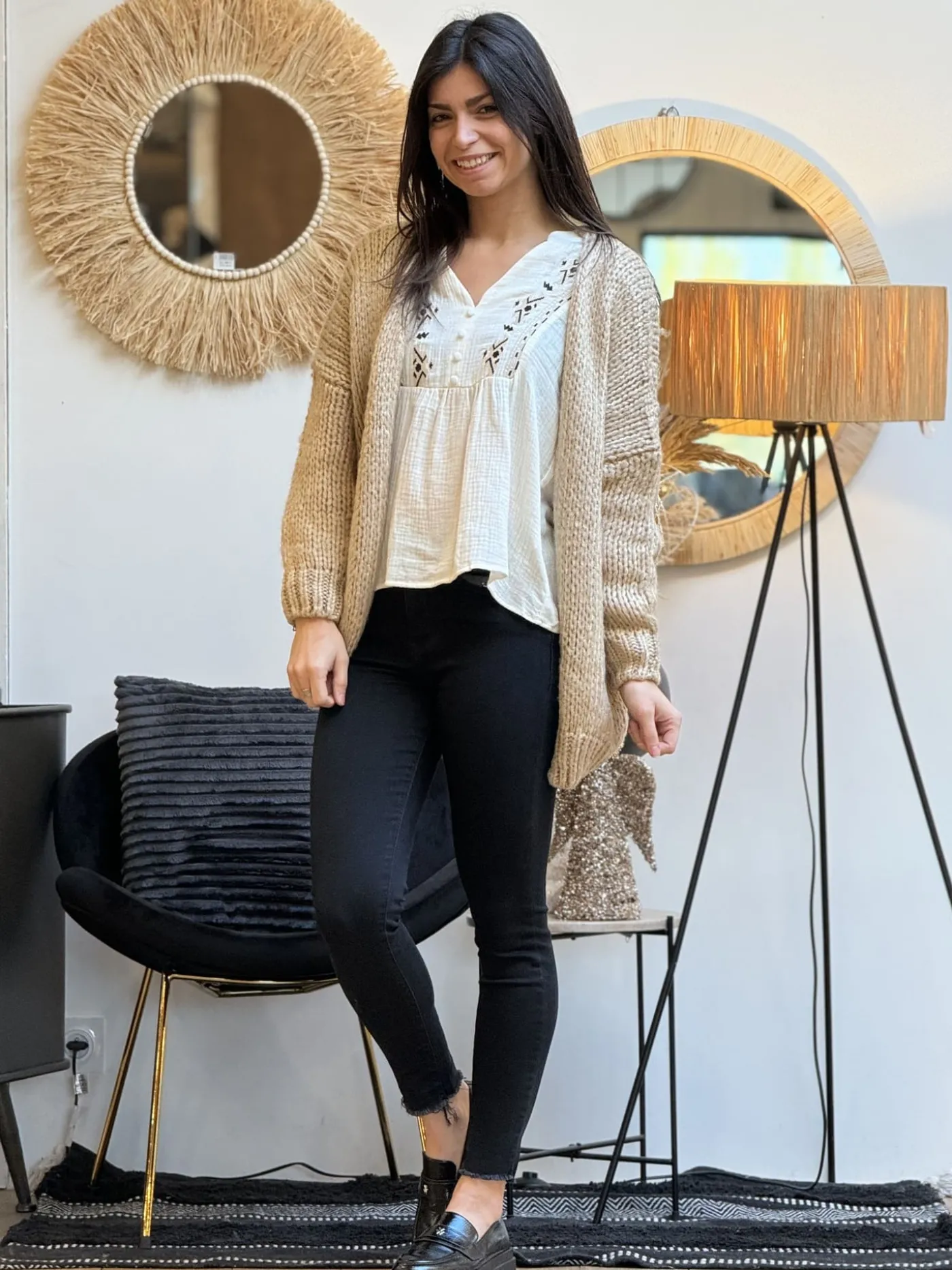 GILET COURT GROSSES MAILLESTaille : Justine mesure 1m69. Elles portent la taille Taille unique pour ce modèle. Taille…