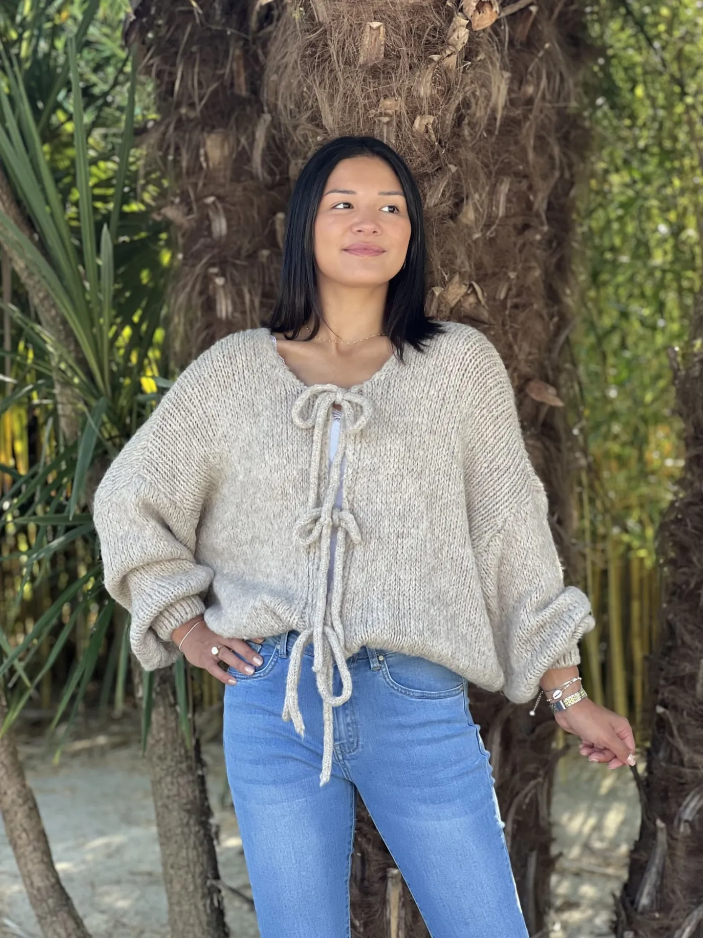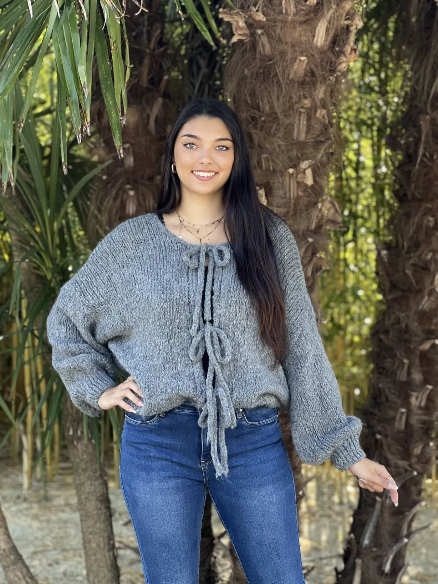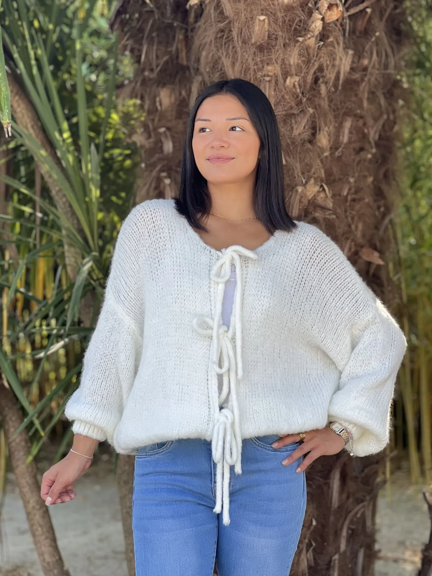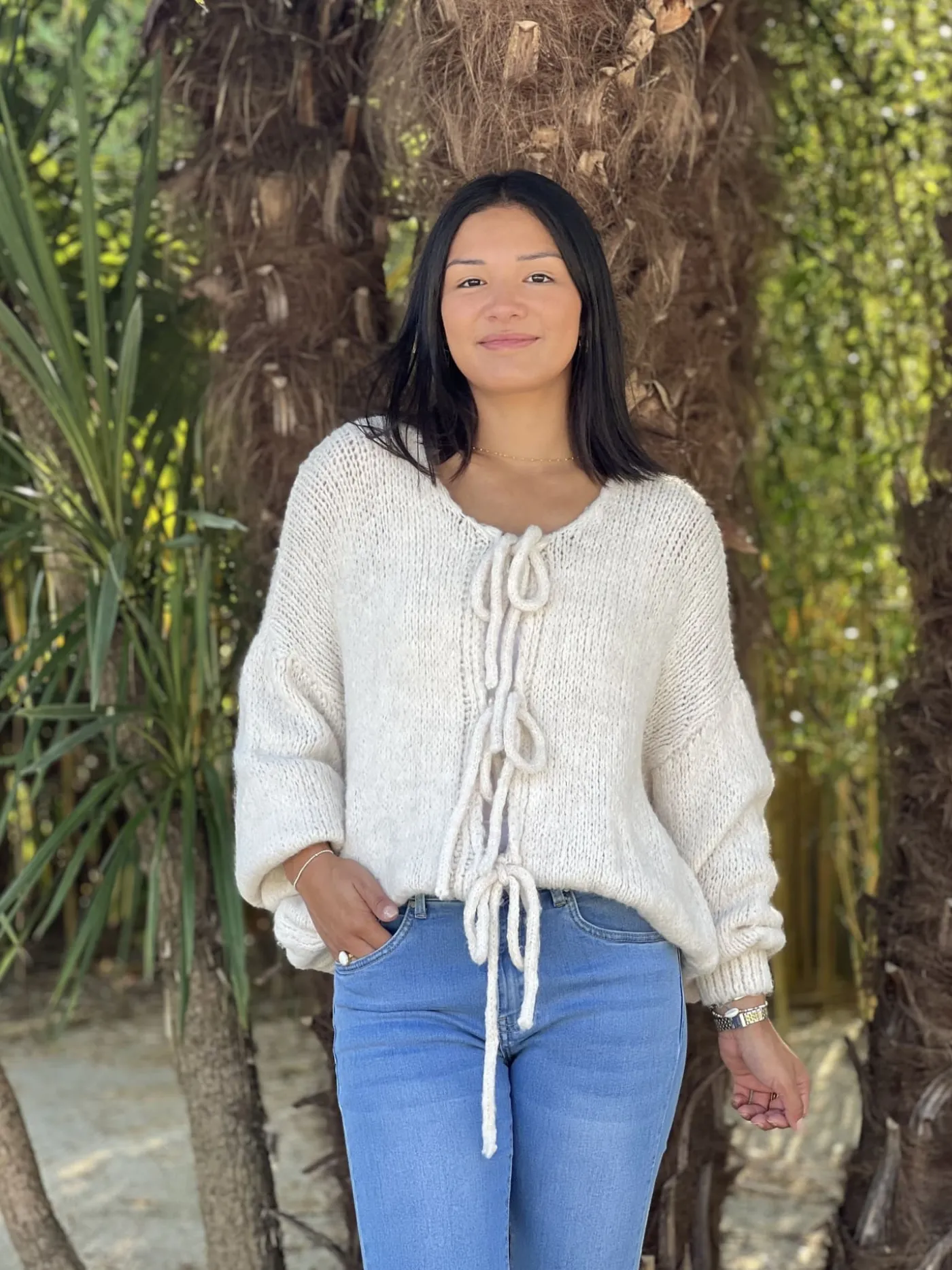 - GILET À ML AVEC NŒUDS DEVANT
