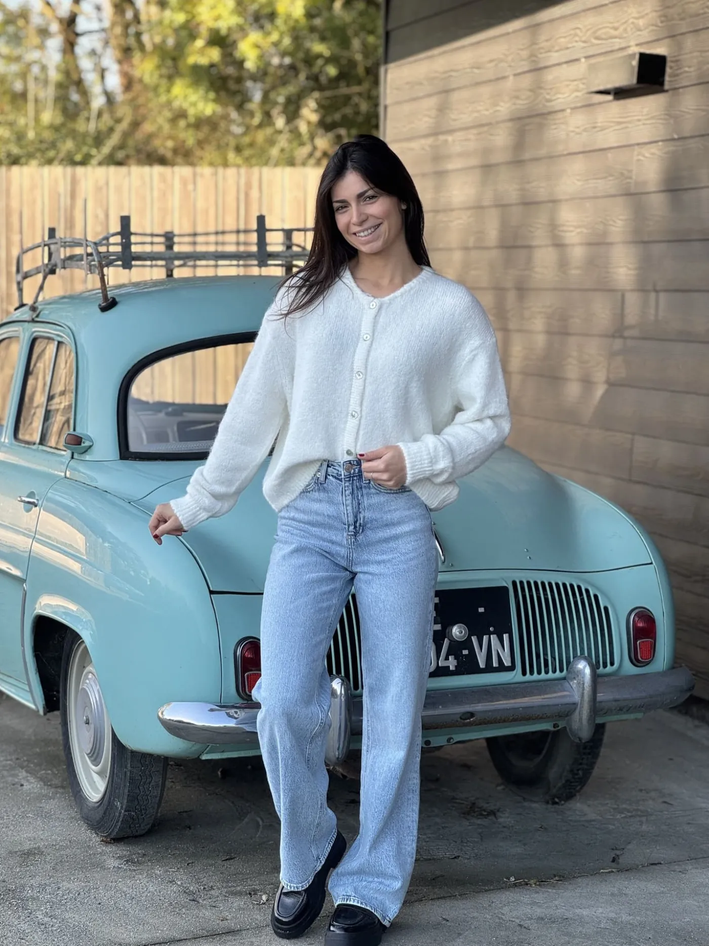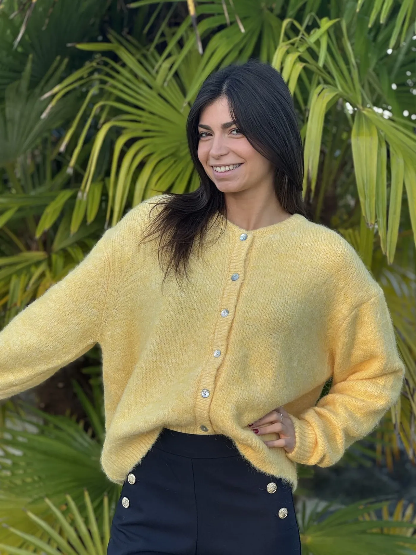 gilet à ml col rond petits boutonsTaille : Justine mesure 1m69, Alice mesure 1m60. Elles portent la taille Taille…