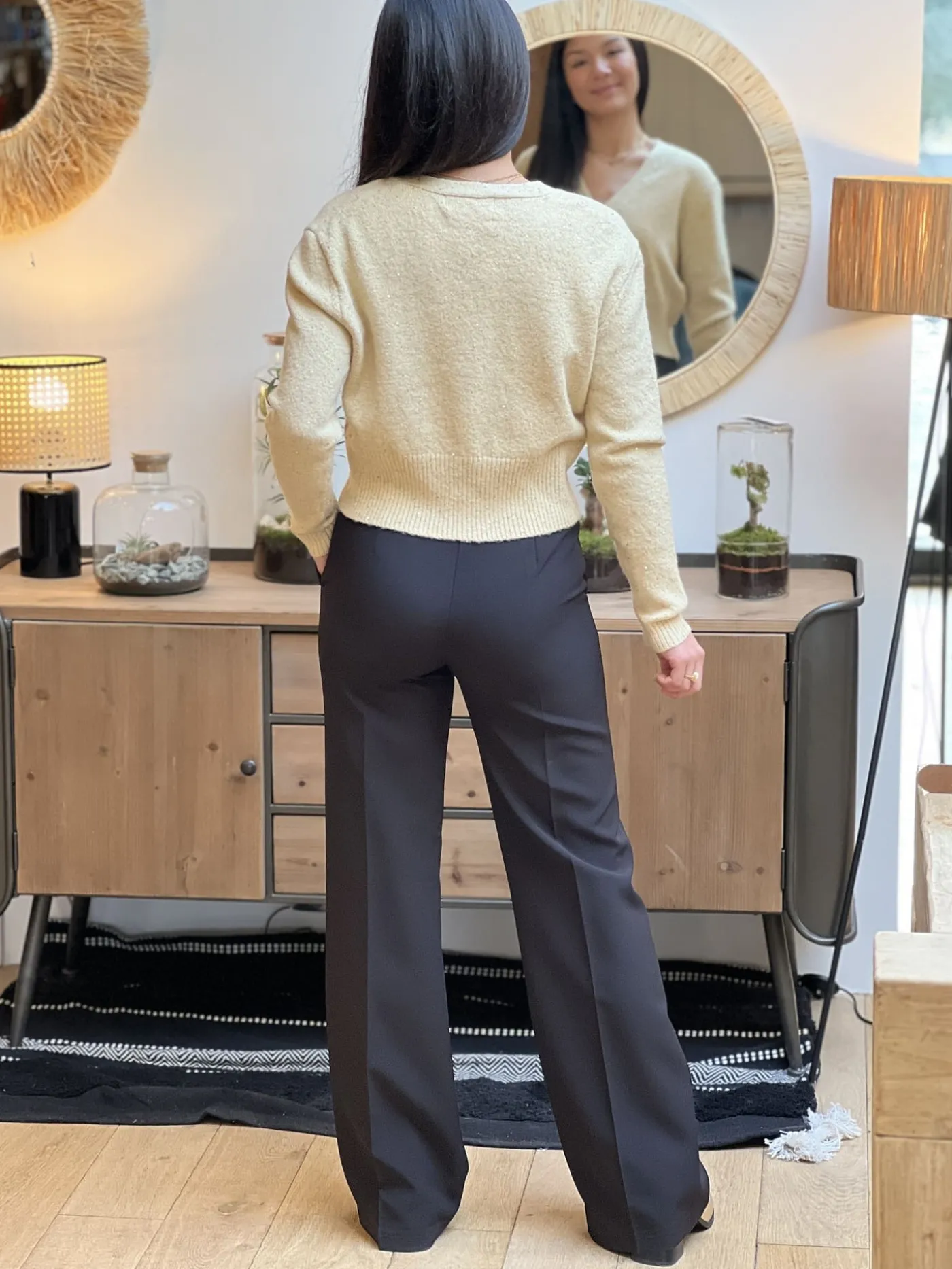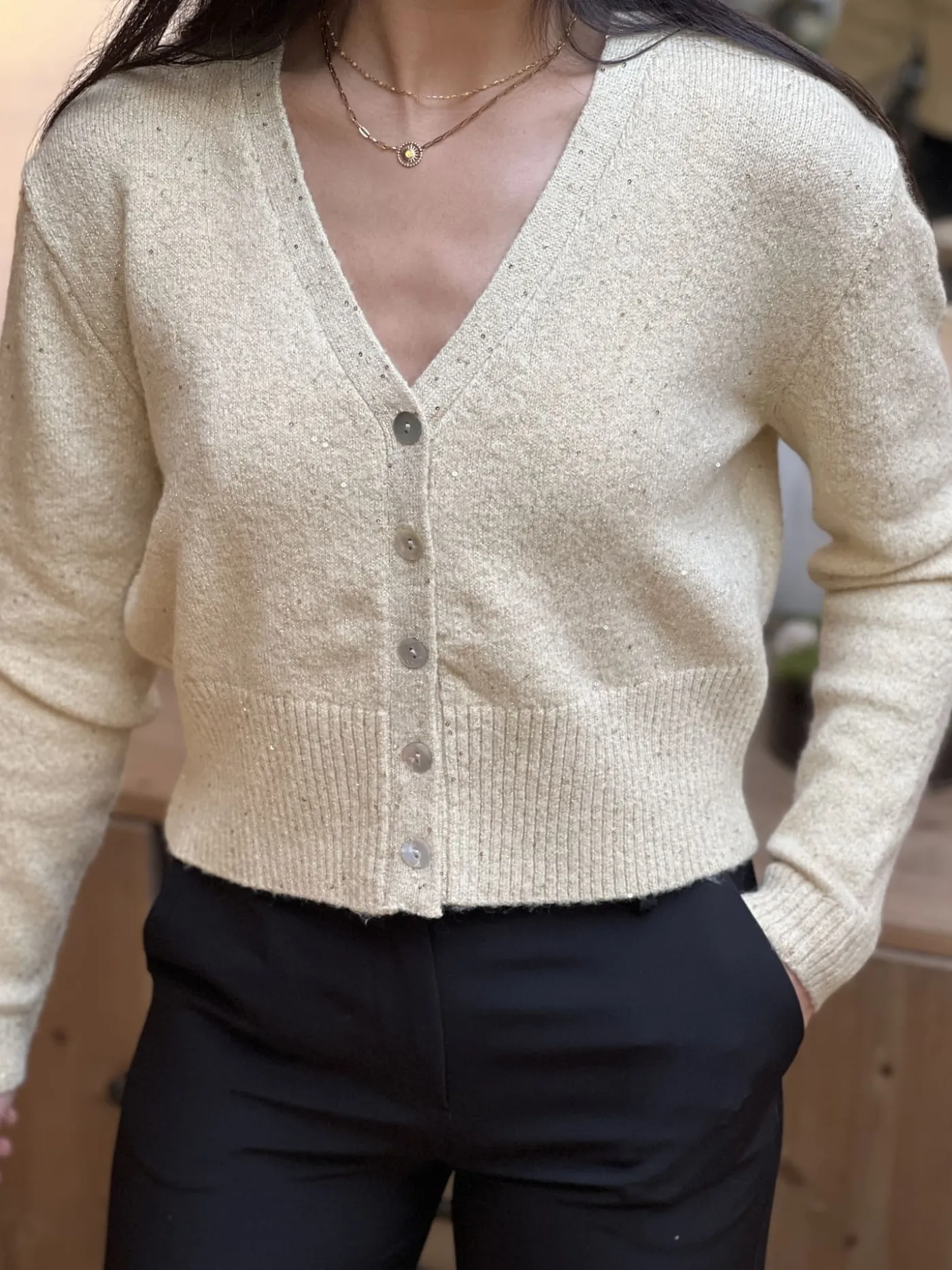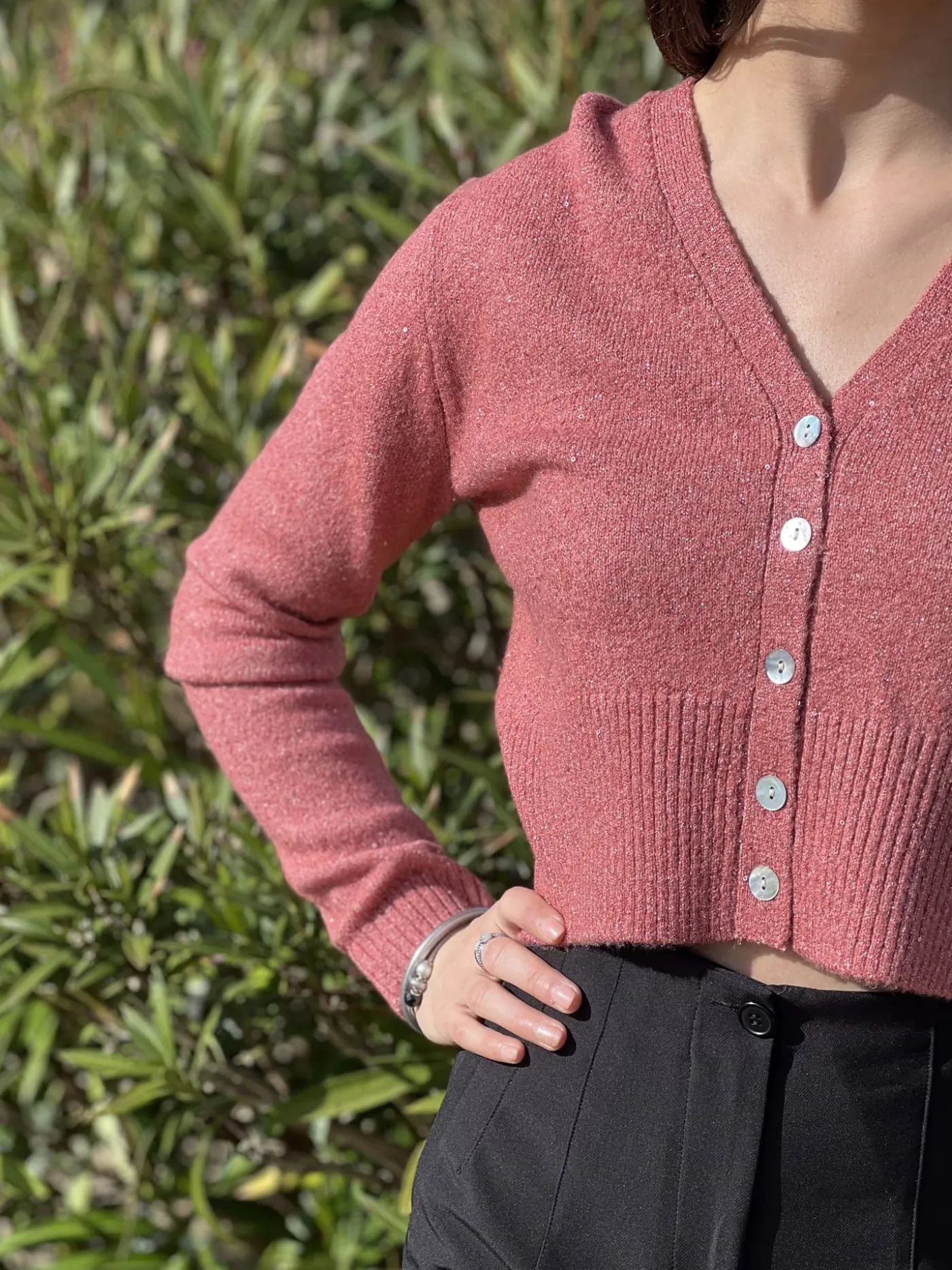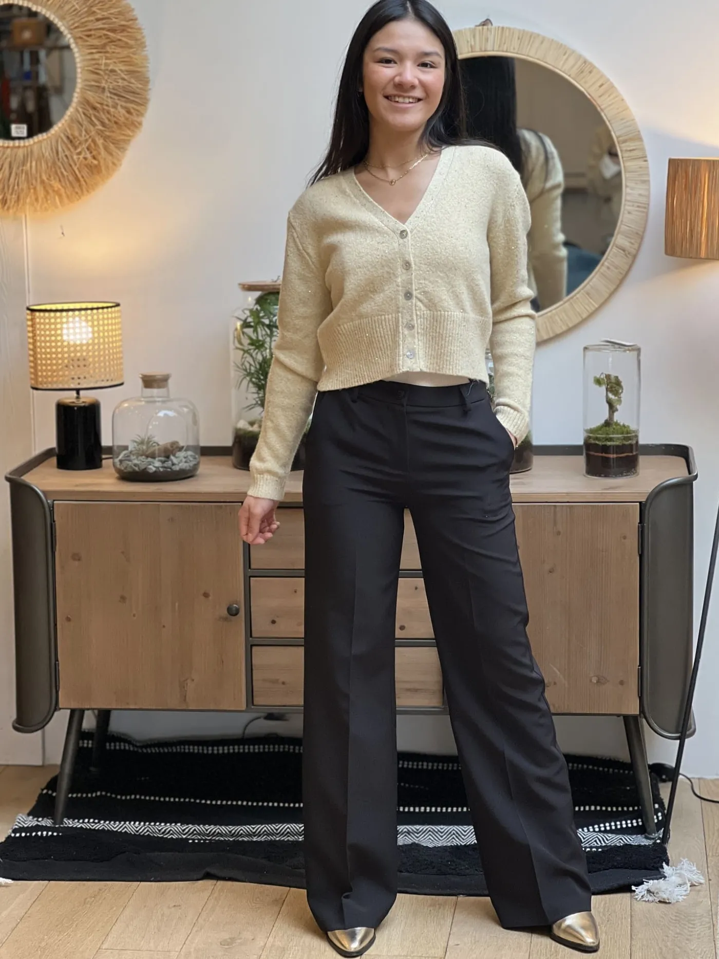 Gilet court à ml col v avec petits boutonsTaille : Justine mesure 1m69 et Louann mesure 1m64. Elles portent la taille …