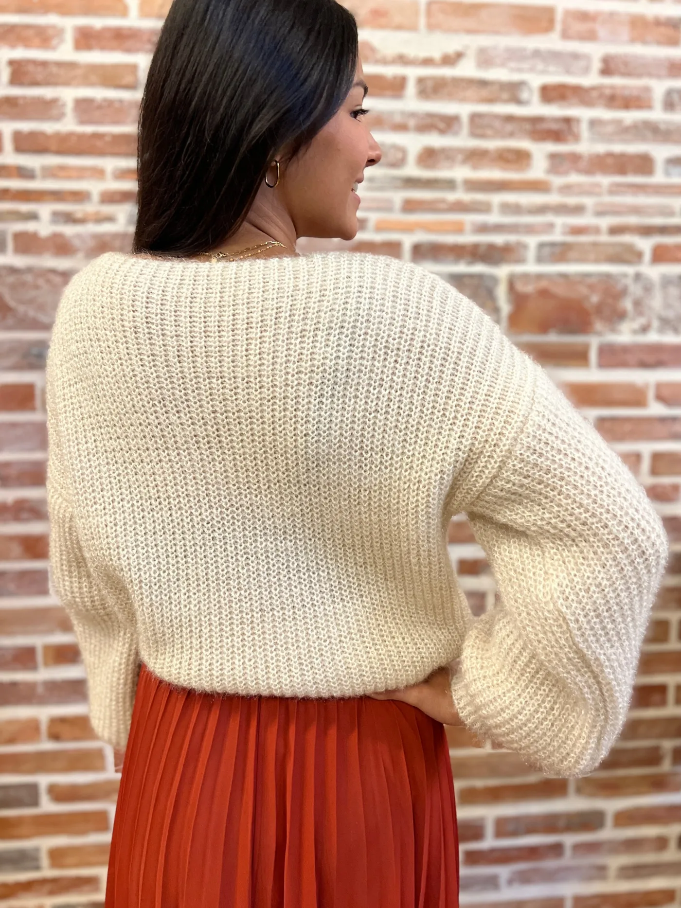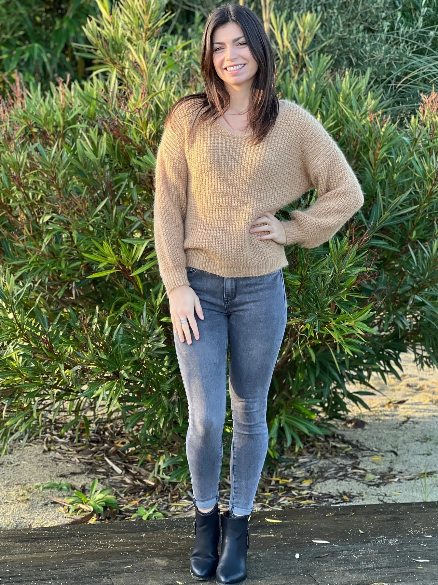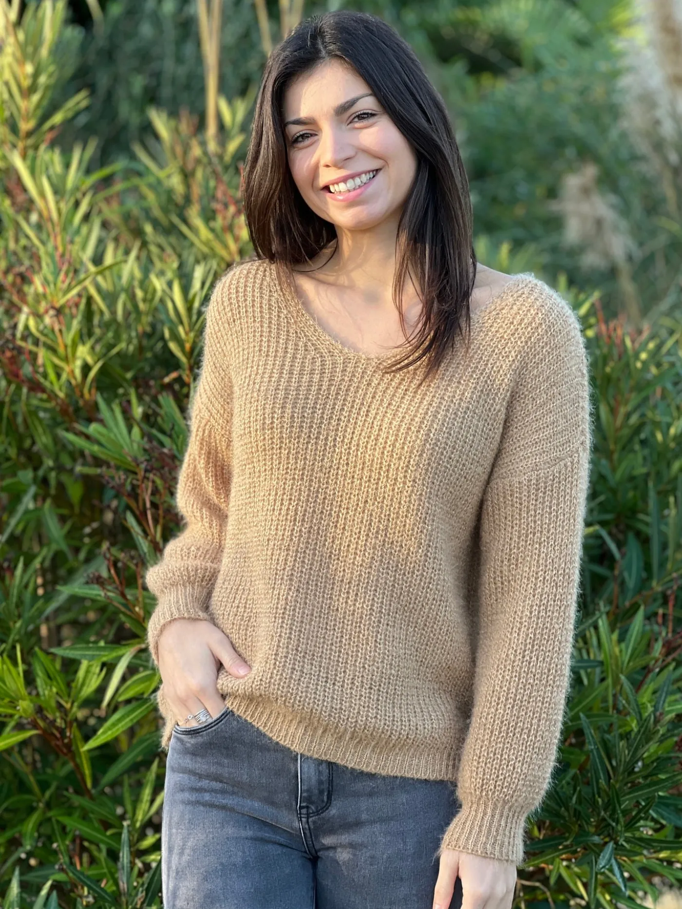 Pull à ml col v tout douxTaille : Mathilde mesure 1m65, Justine mesure 1m69 et Juliette mesure 1m63. Elles portent la…