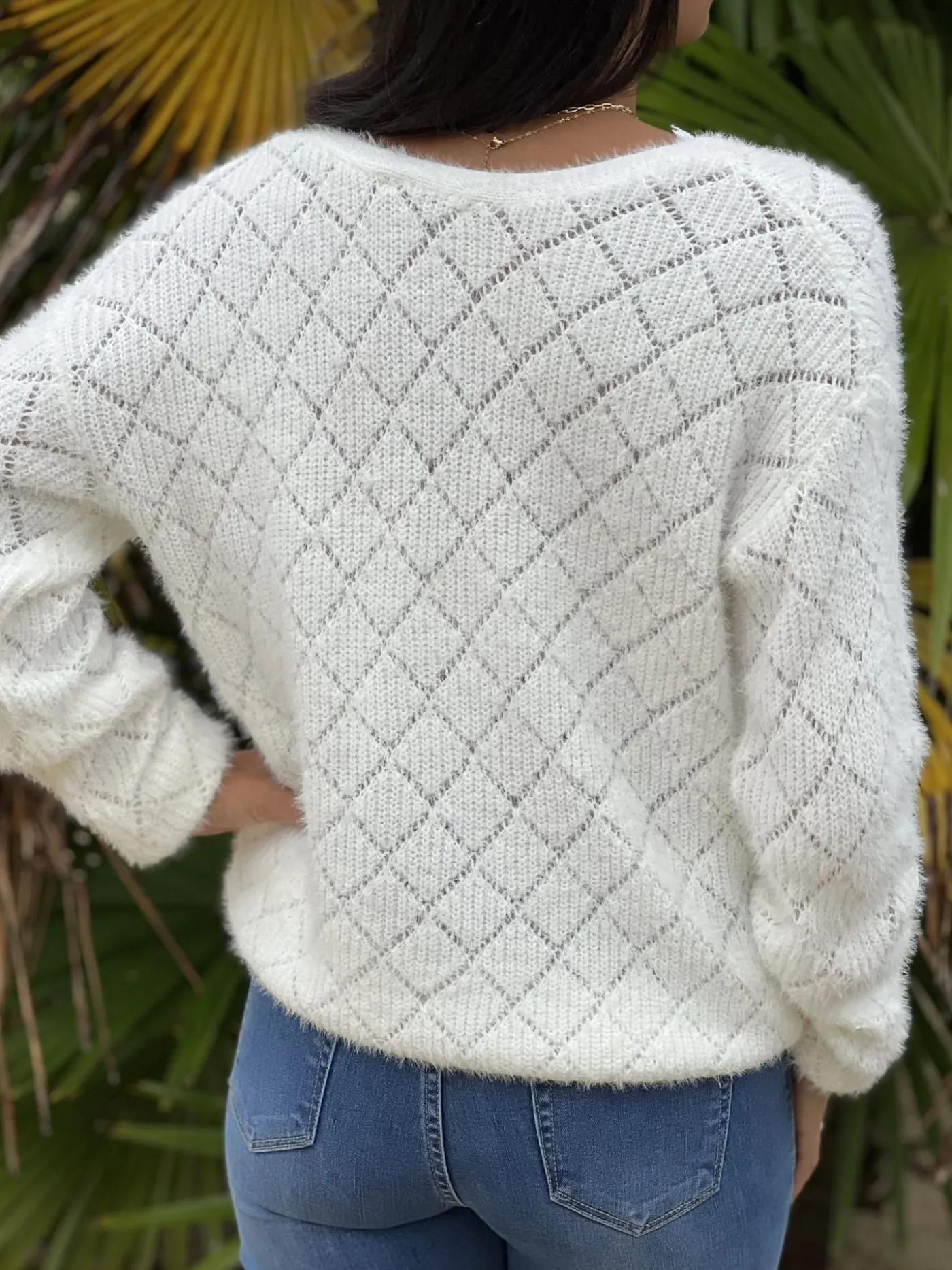- PULL À ML COL V DENTELLE + PETITS BOUTONS