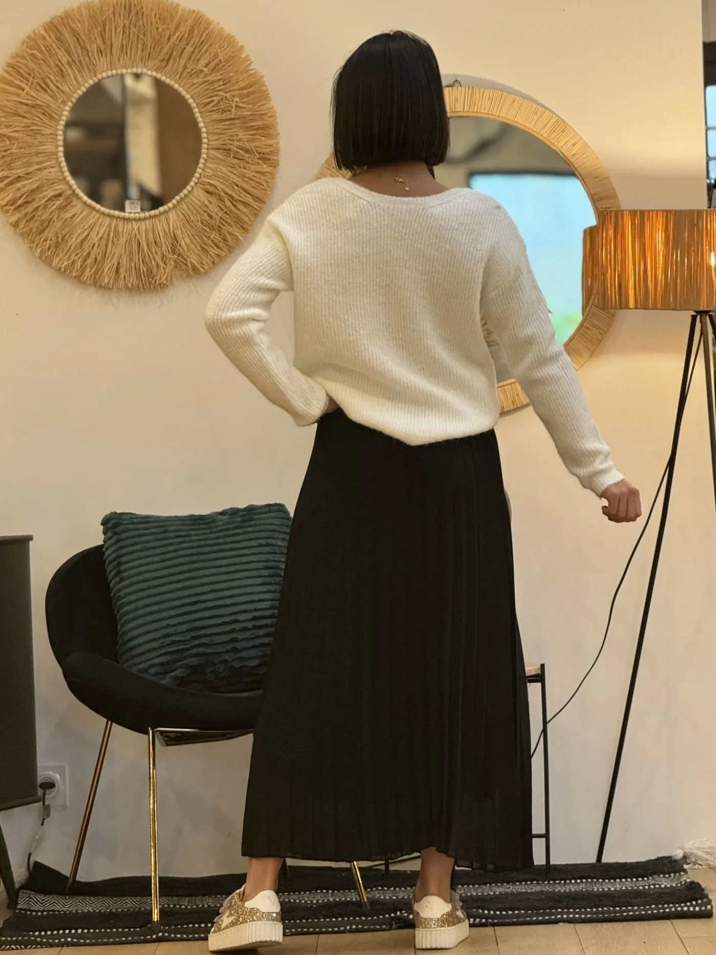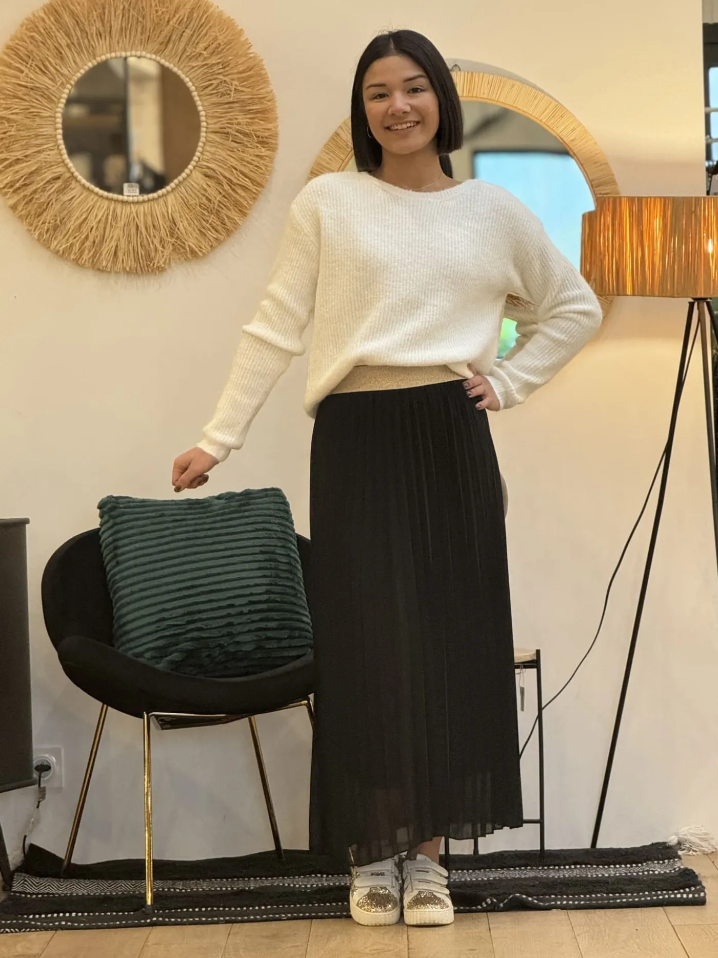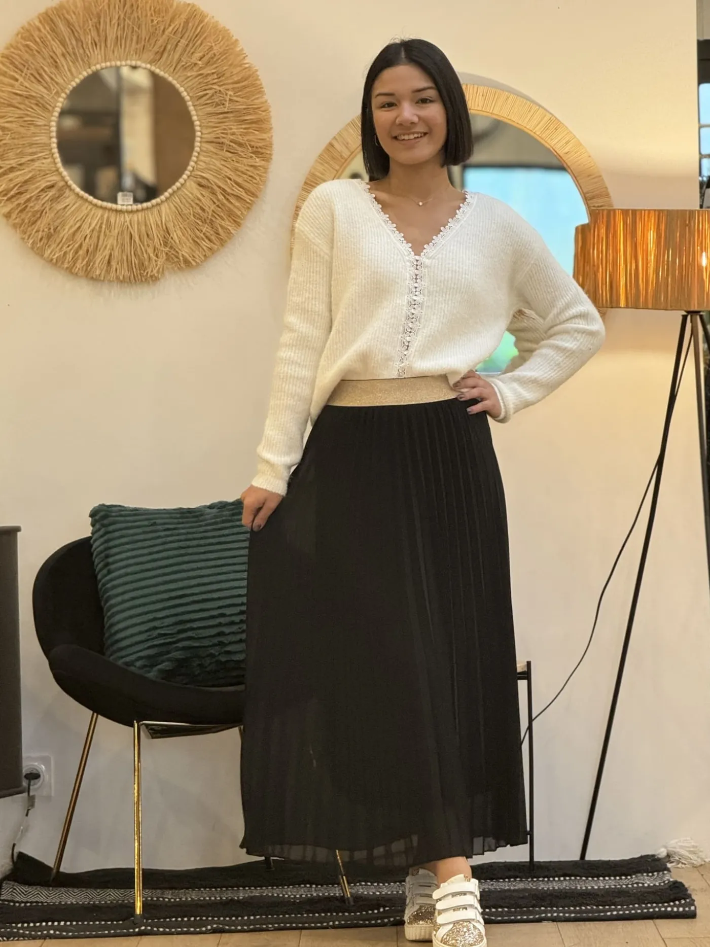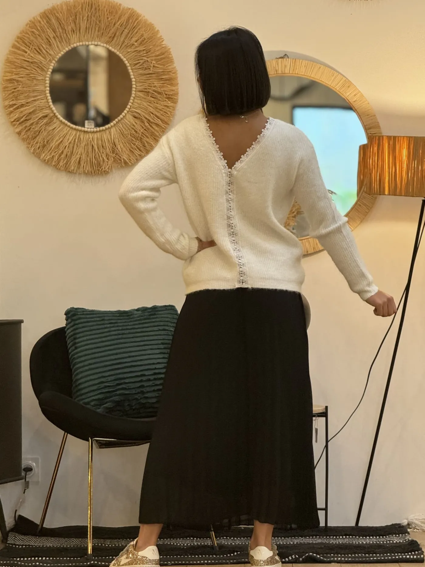 PULL À ML col v dentelle fleurieTaille : Mathilde mesure 1m65 et Justine mesure 1m69. Elles portent la taille S/M p…