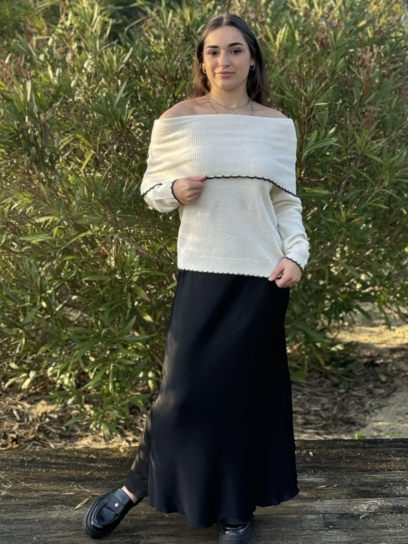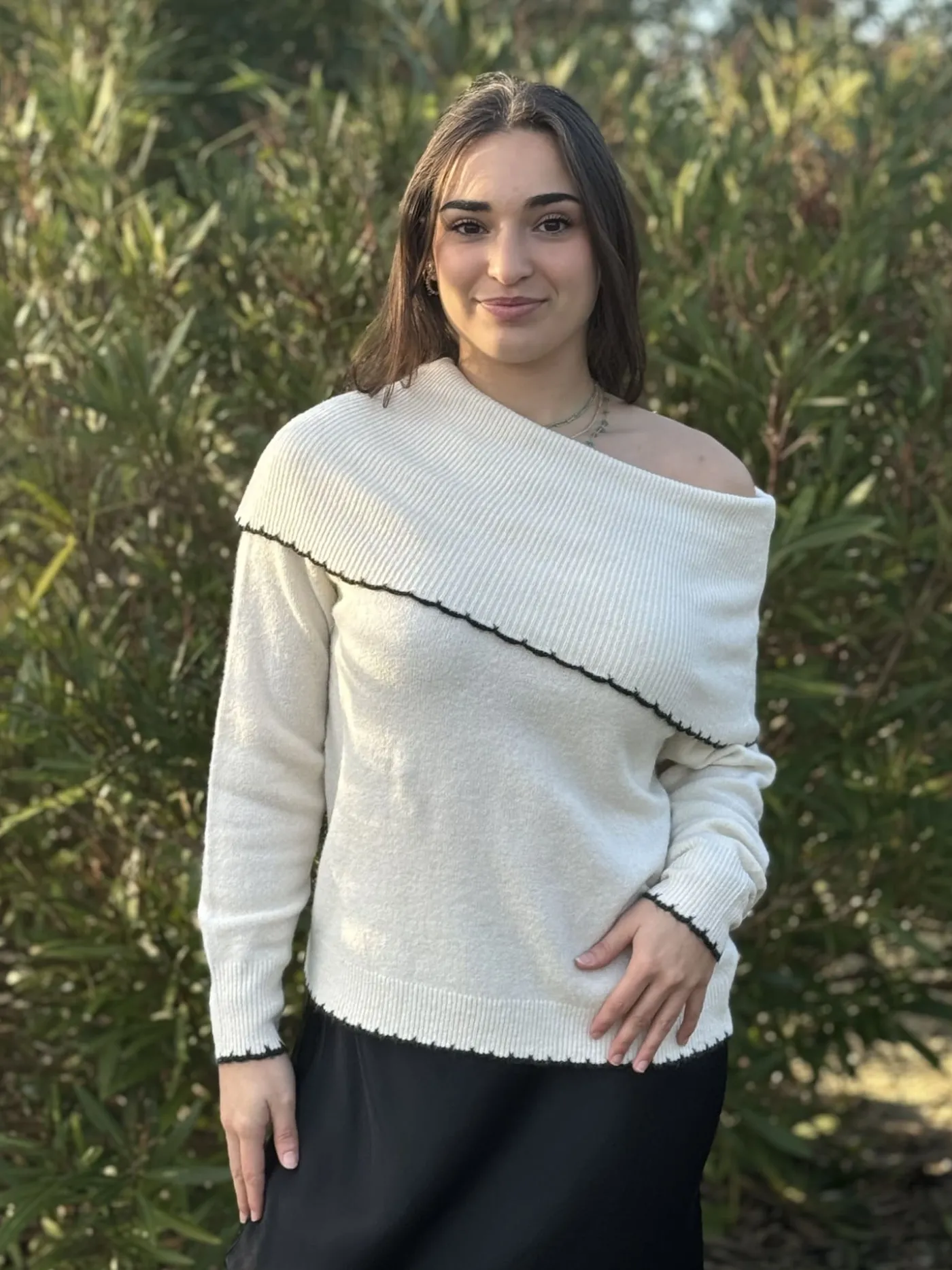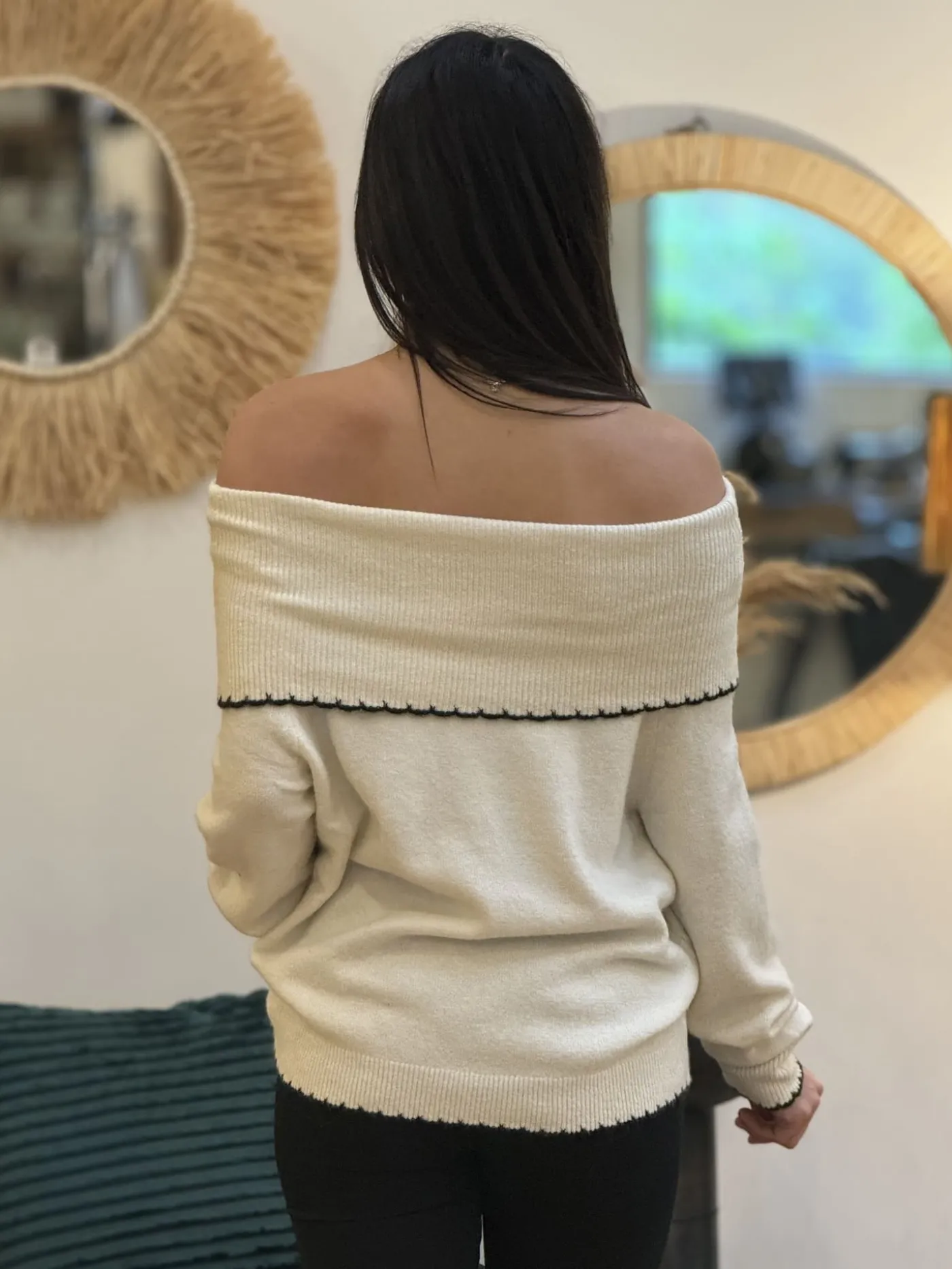 PULL à ml col sur épauleTaille :Justine mesure 1m69. Elle porte la taille Taille unique pour ce modèle. Taille : Ta…