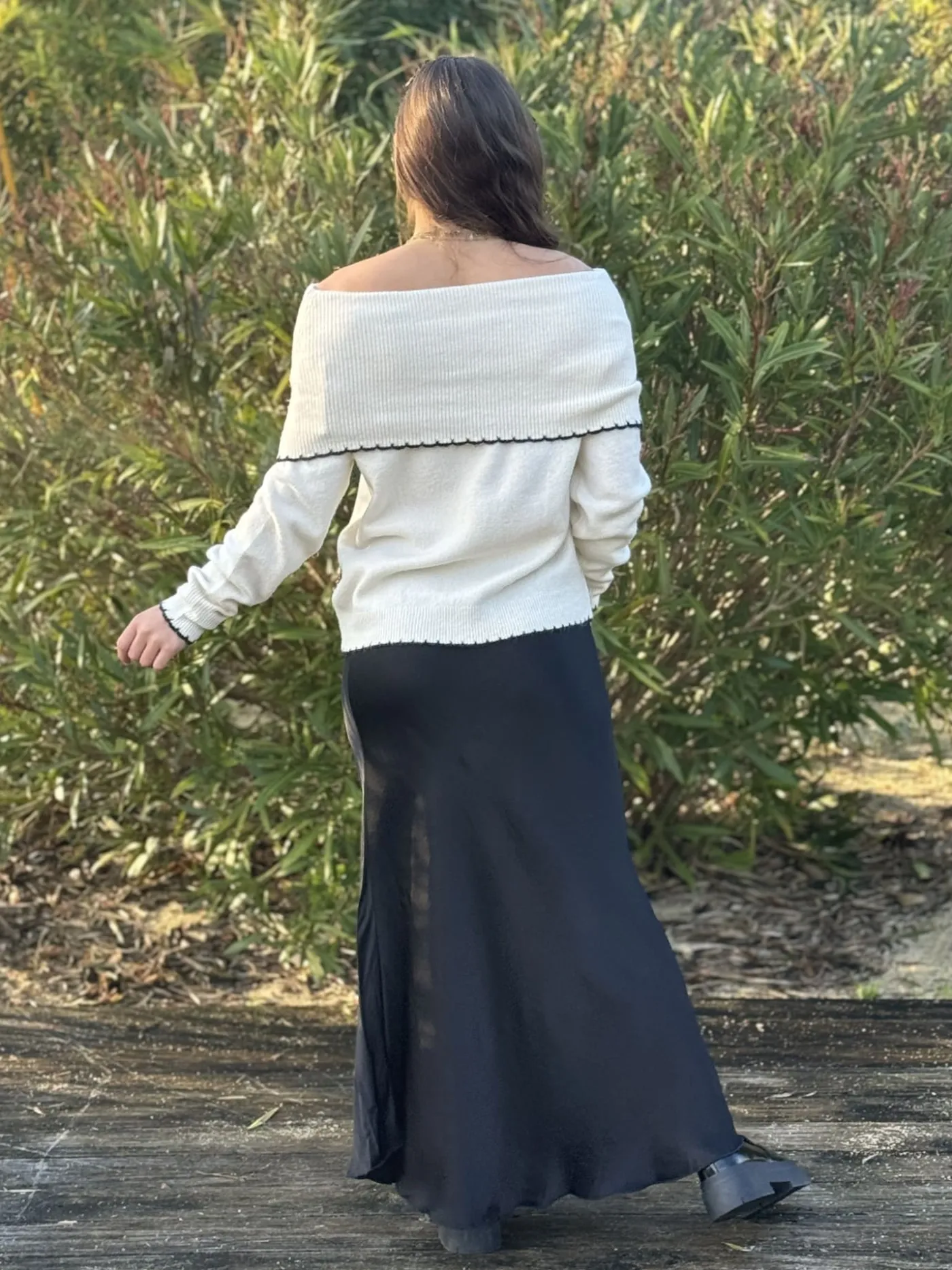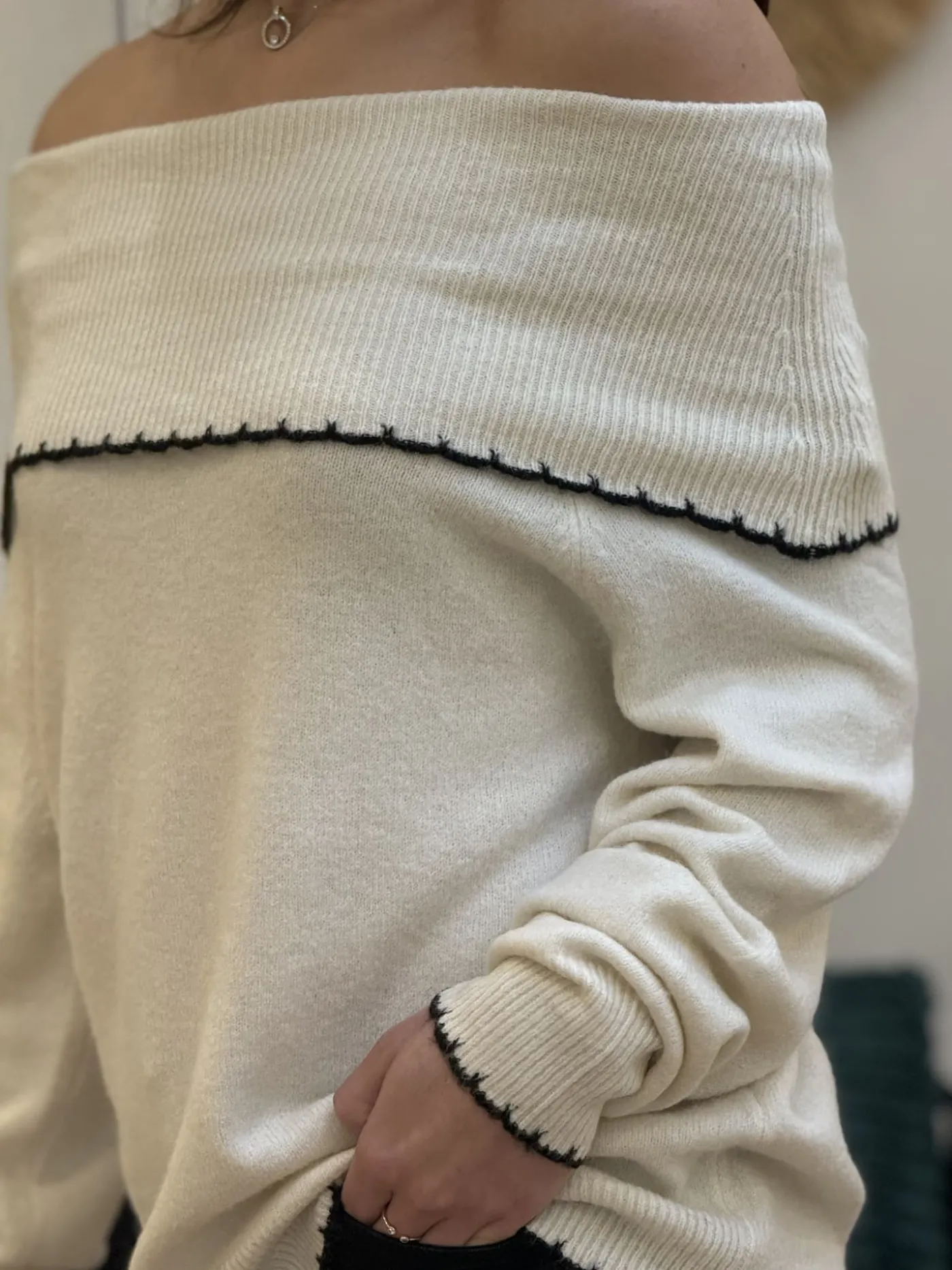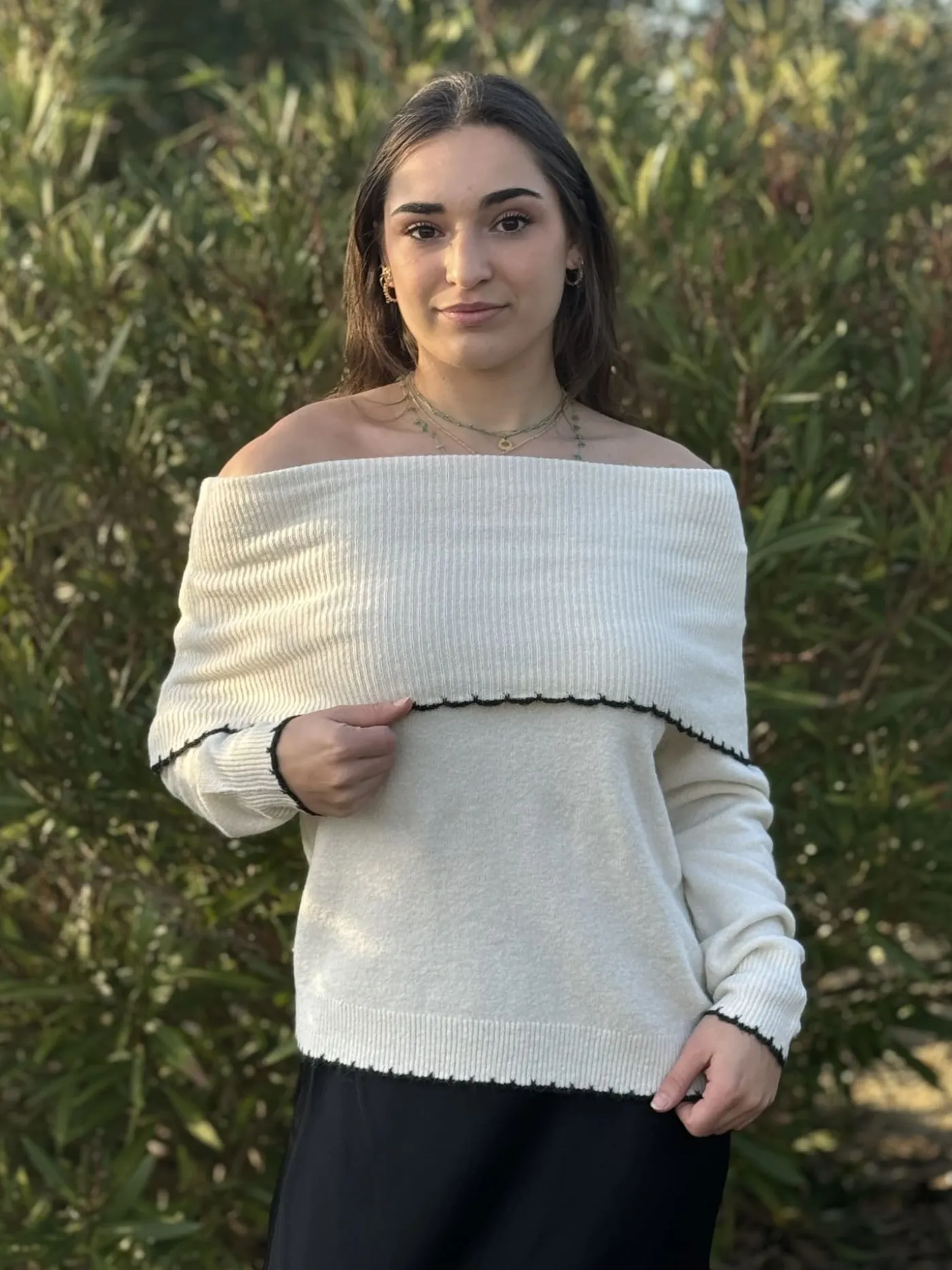 PULL à ml col sur épauleTaille :Justine mesure 1m69. Elle porte la taille Taille unique pour ce modèle. Taille : Ta…