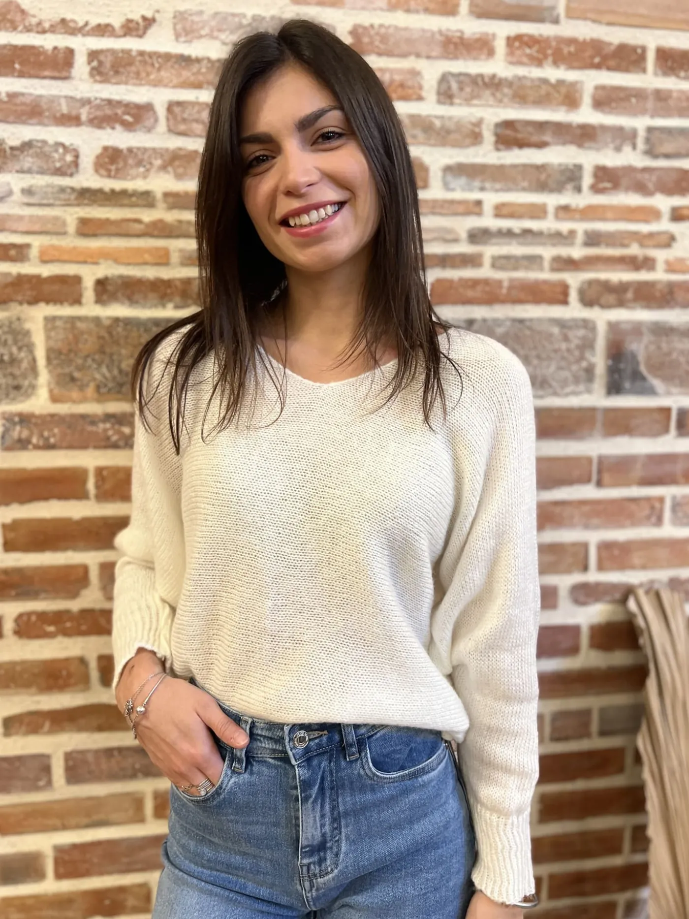 PULL MLTaille : Justine mesure 1m69, Juliette mesure 1m63 et Louane mesure 1m64. Elles portent la taille Taille uniqu…