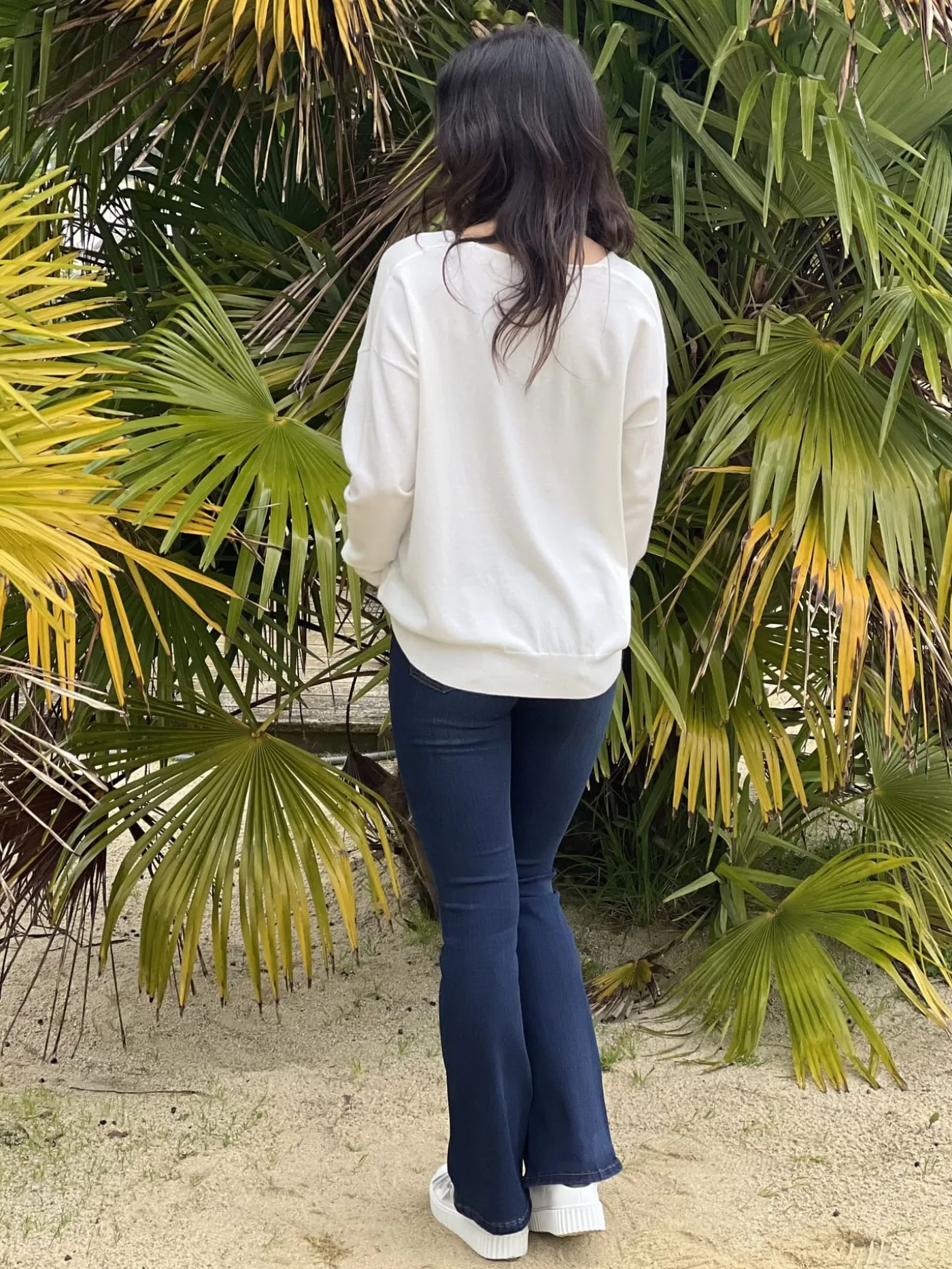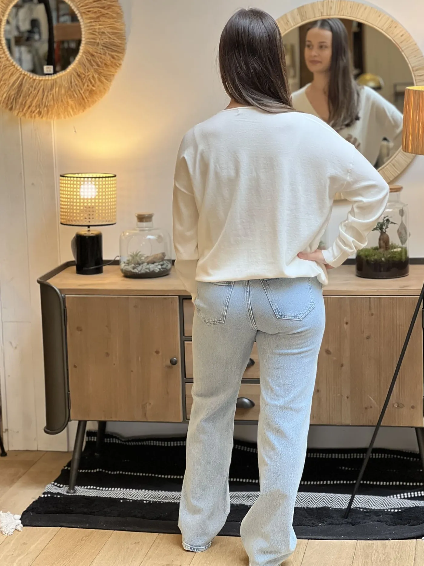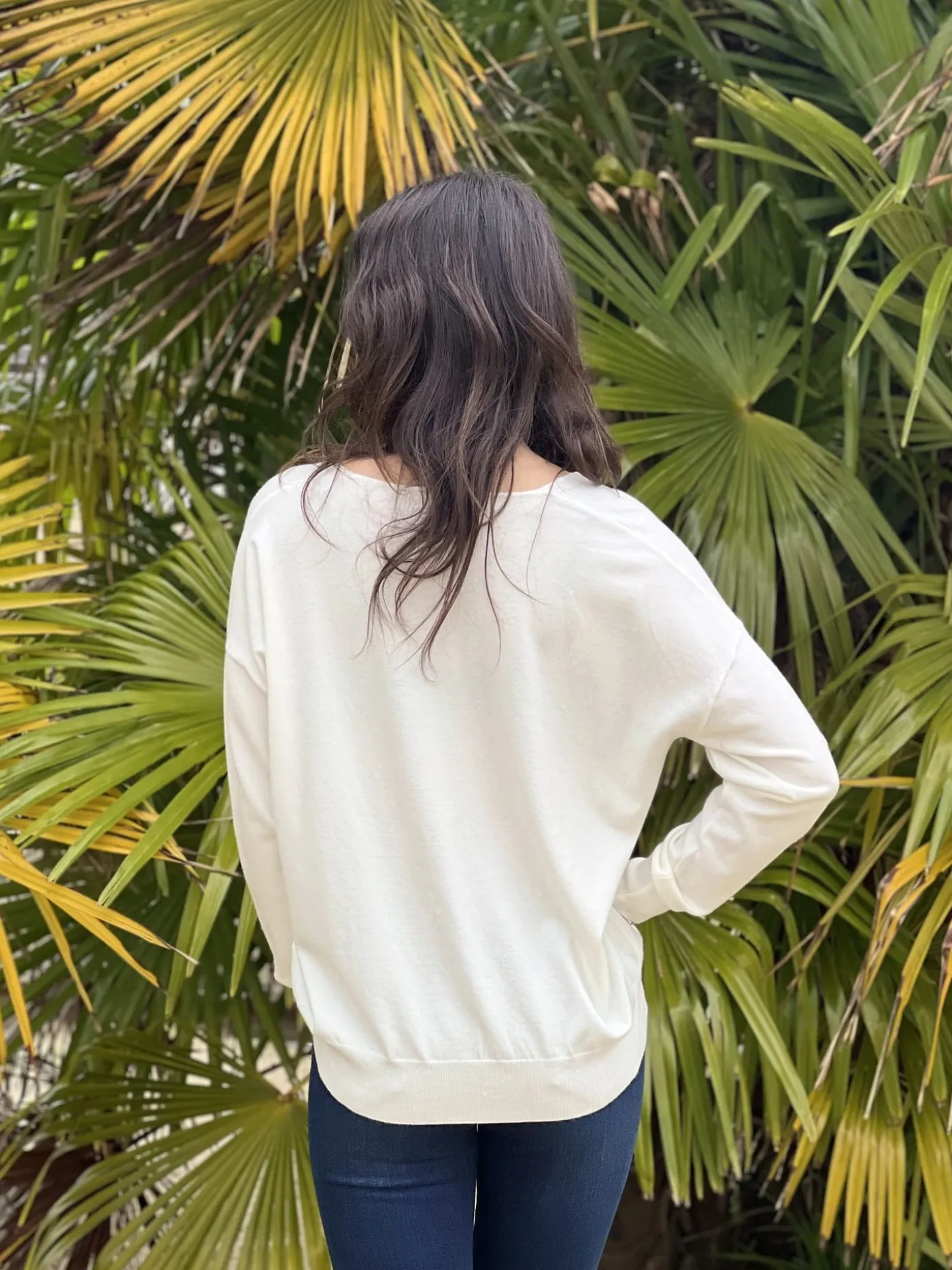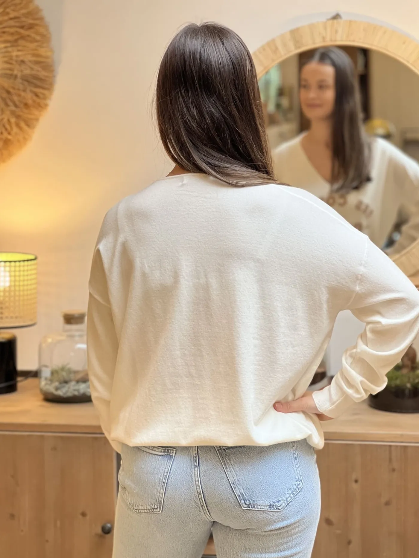 PULL LES COPINES D’ABORD – FOND BLANCTaille : Justine mesure 1m9. Elle porte la taille Taille unique pour ce modèle. …