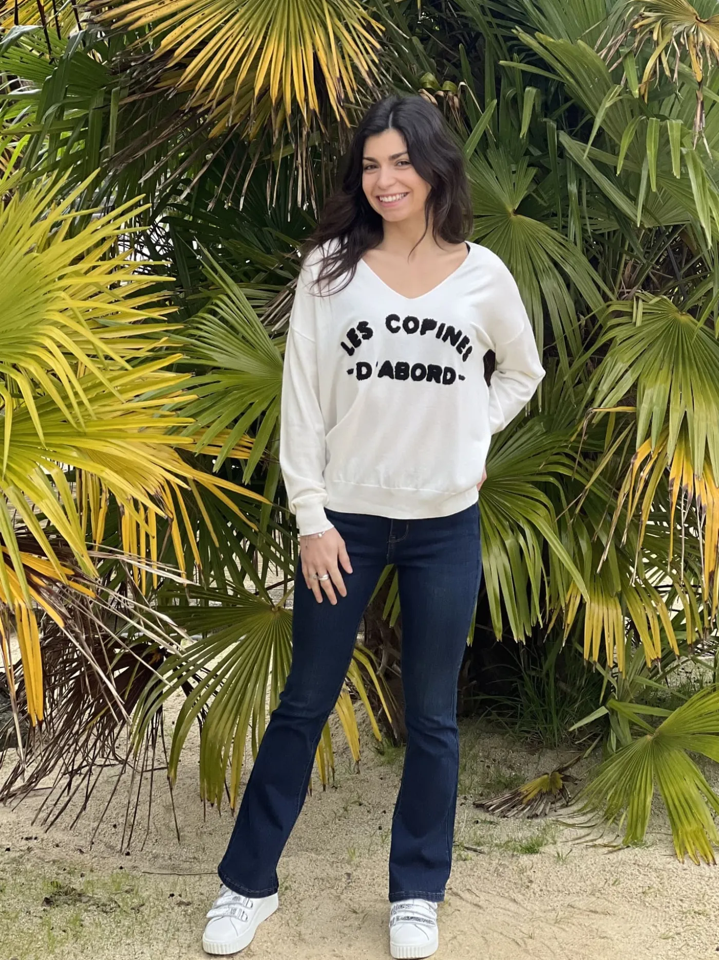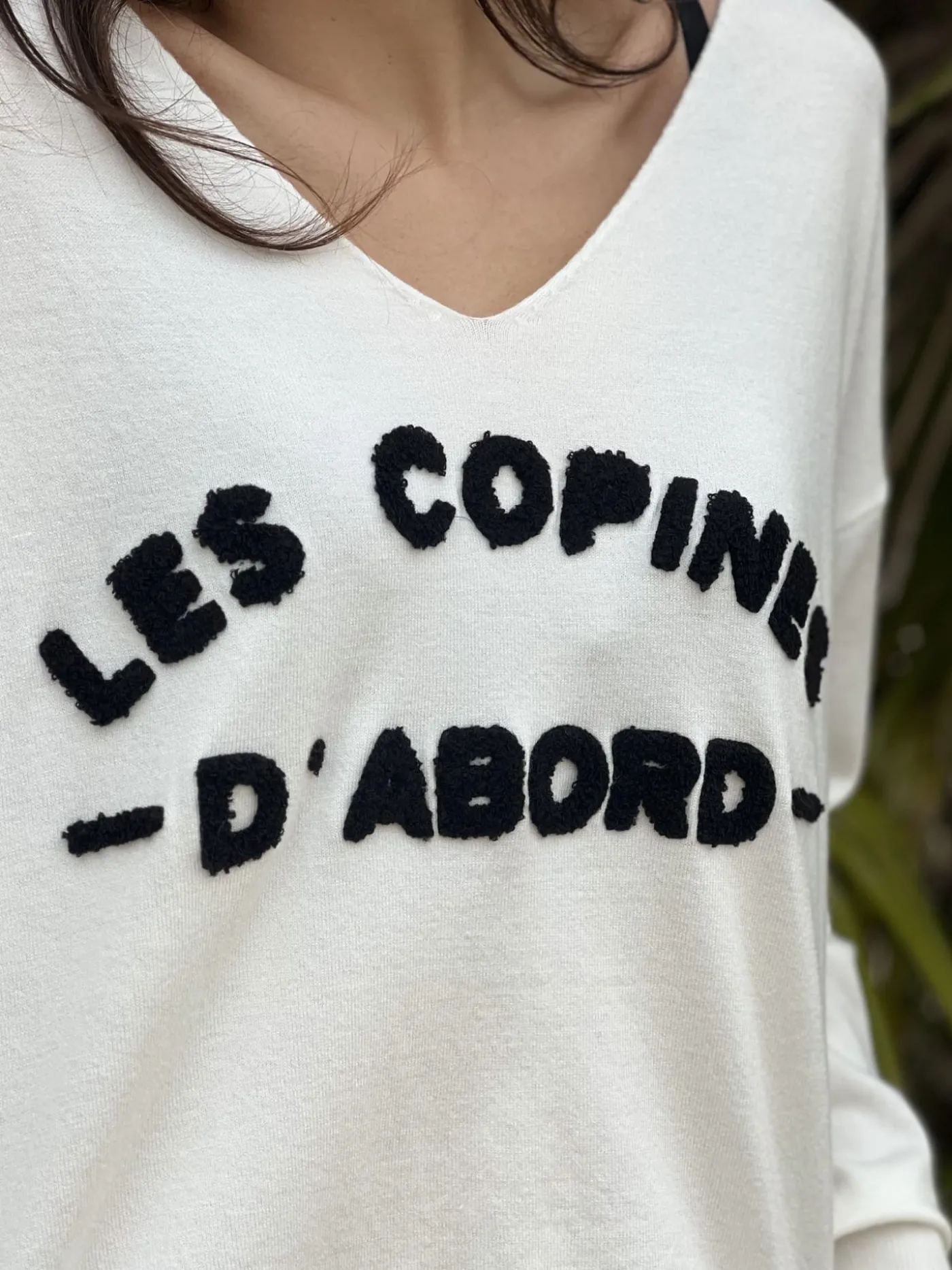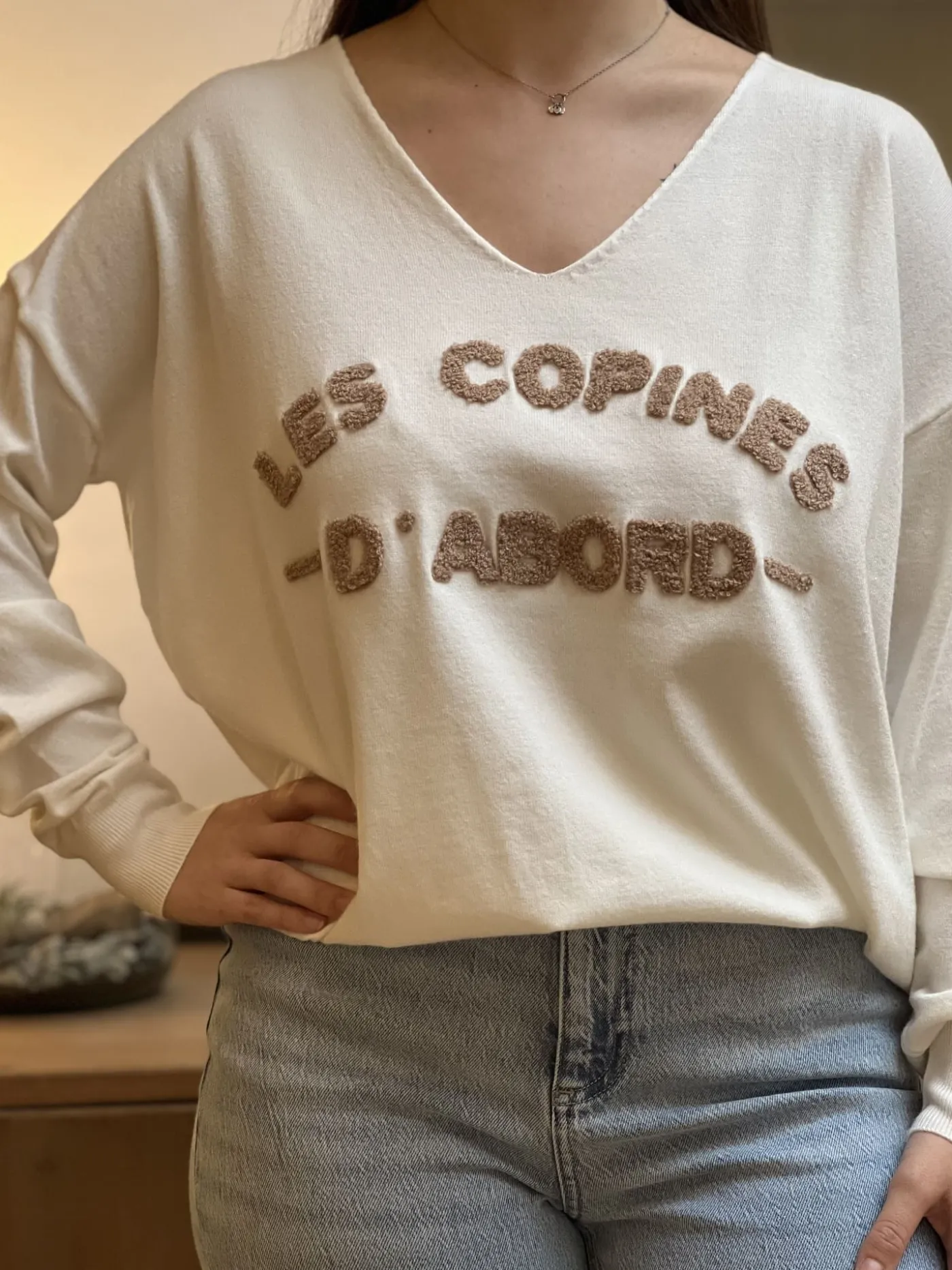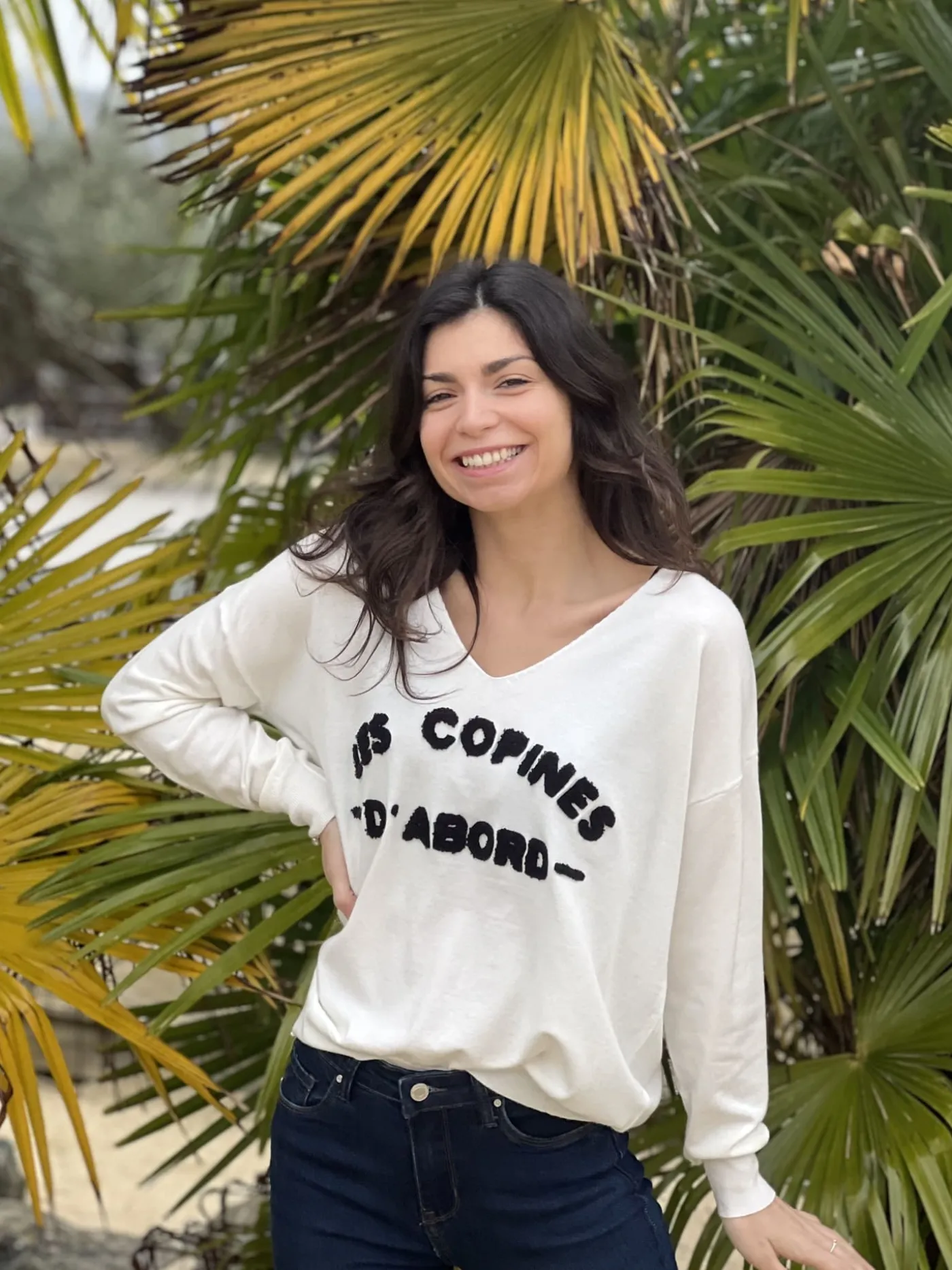 - PULL LES COPINES D’ABORD – FOND BLANC