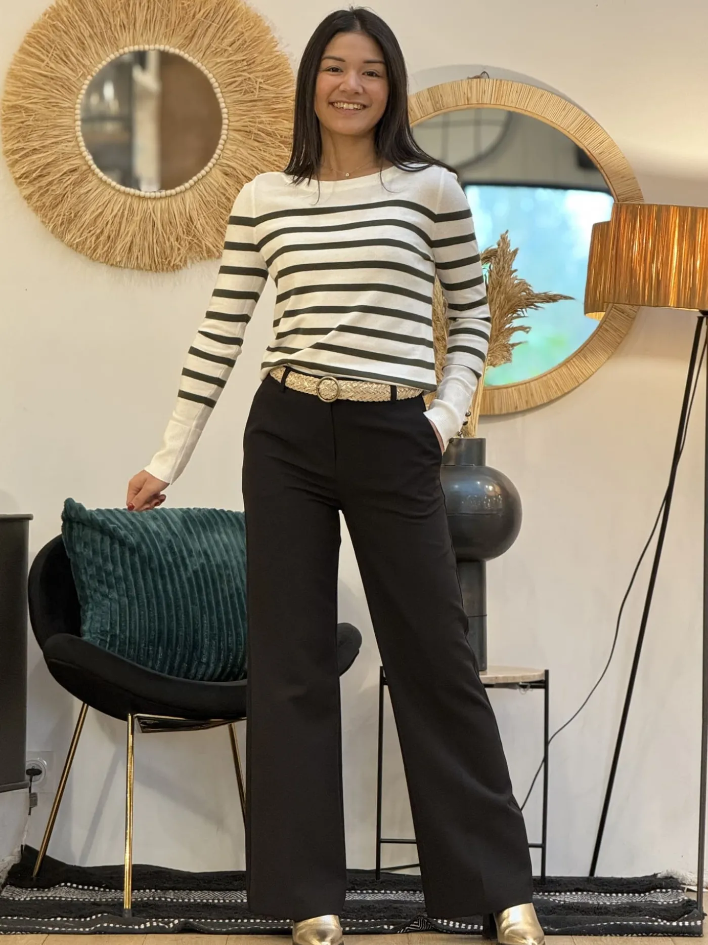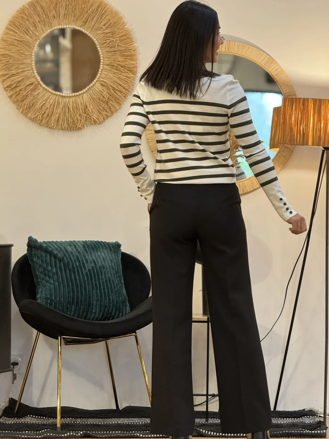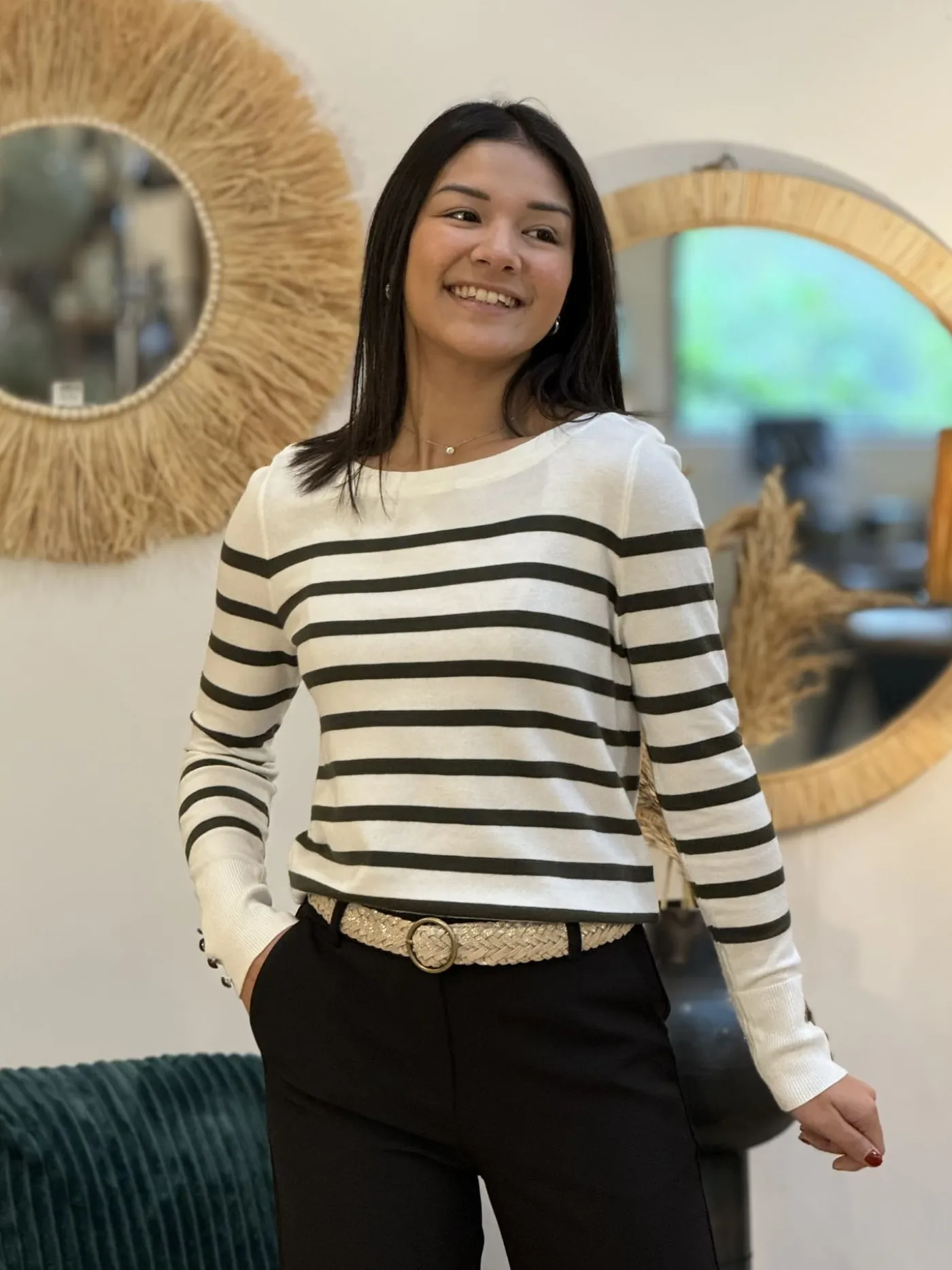 Pull à ml col rond avec boutons sur manche doré- imprimé marinièreTaille : Mathilde mesure 1m65. Elle porte la tail…