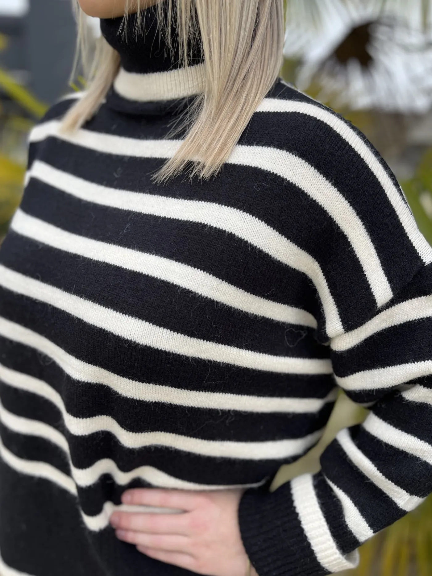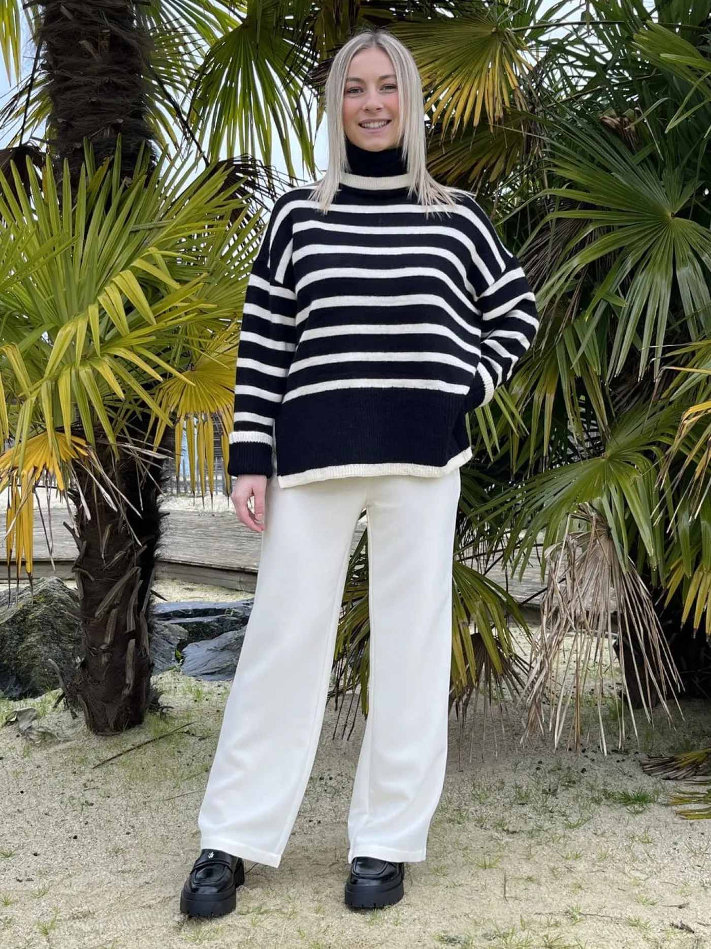 PULL À ML COL ROULÉ MARINIÈRETaille : Mathilde mesure 1m64. Elle porte la taille Taille unique pour ce modèle. …