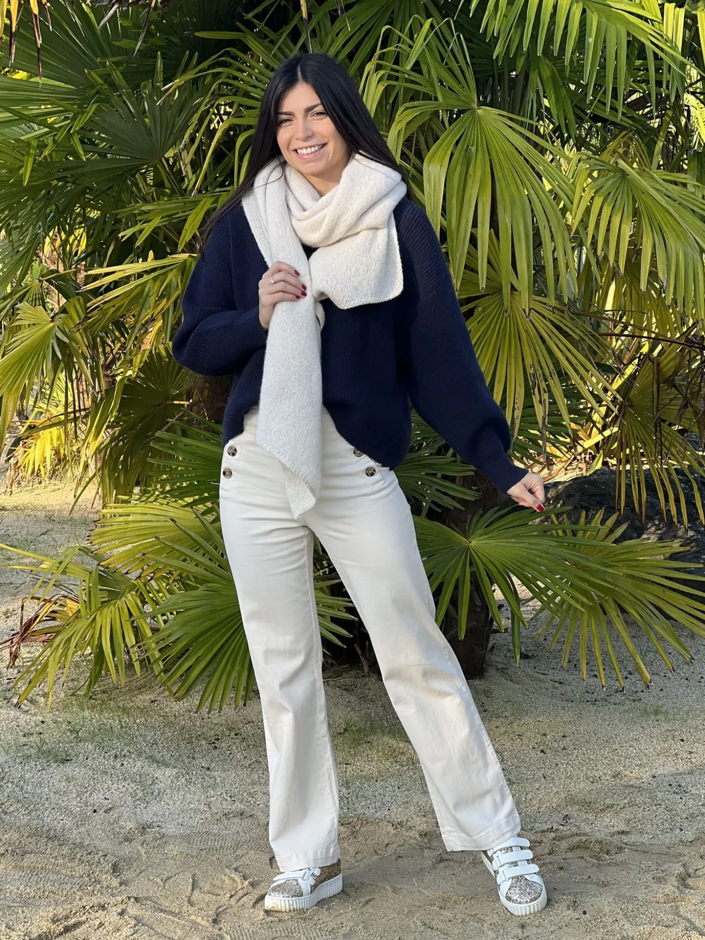 Mathilde mesure 1m65. Elle porte la taille Taille unique pour ce modèle.
