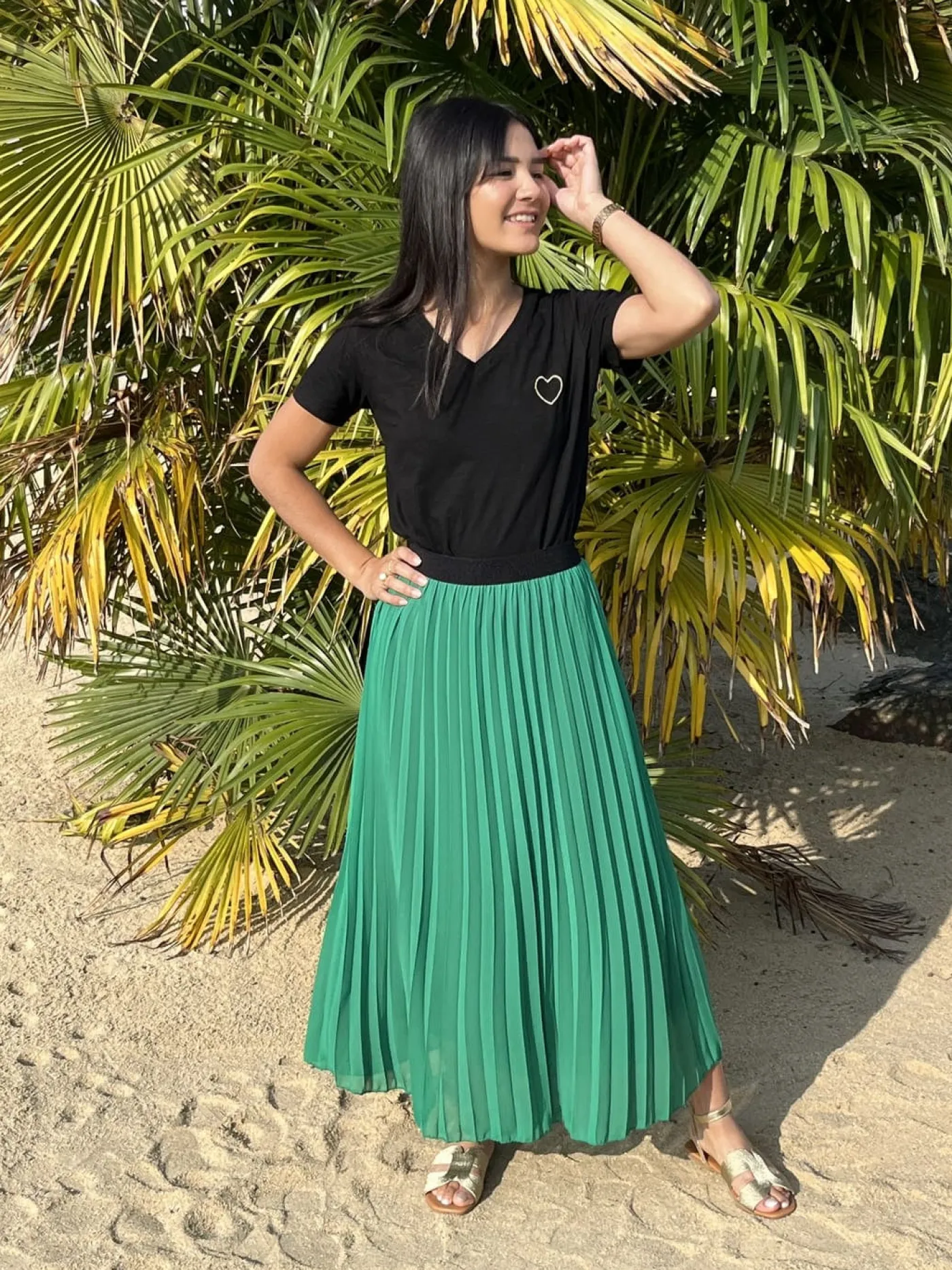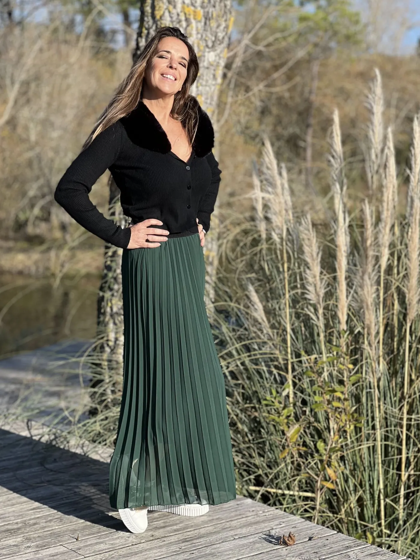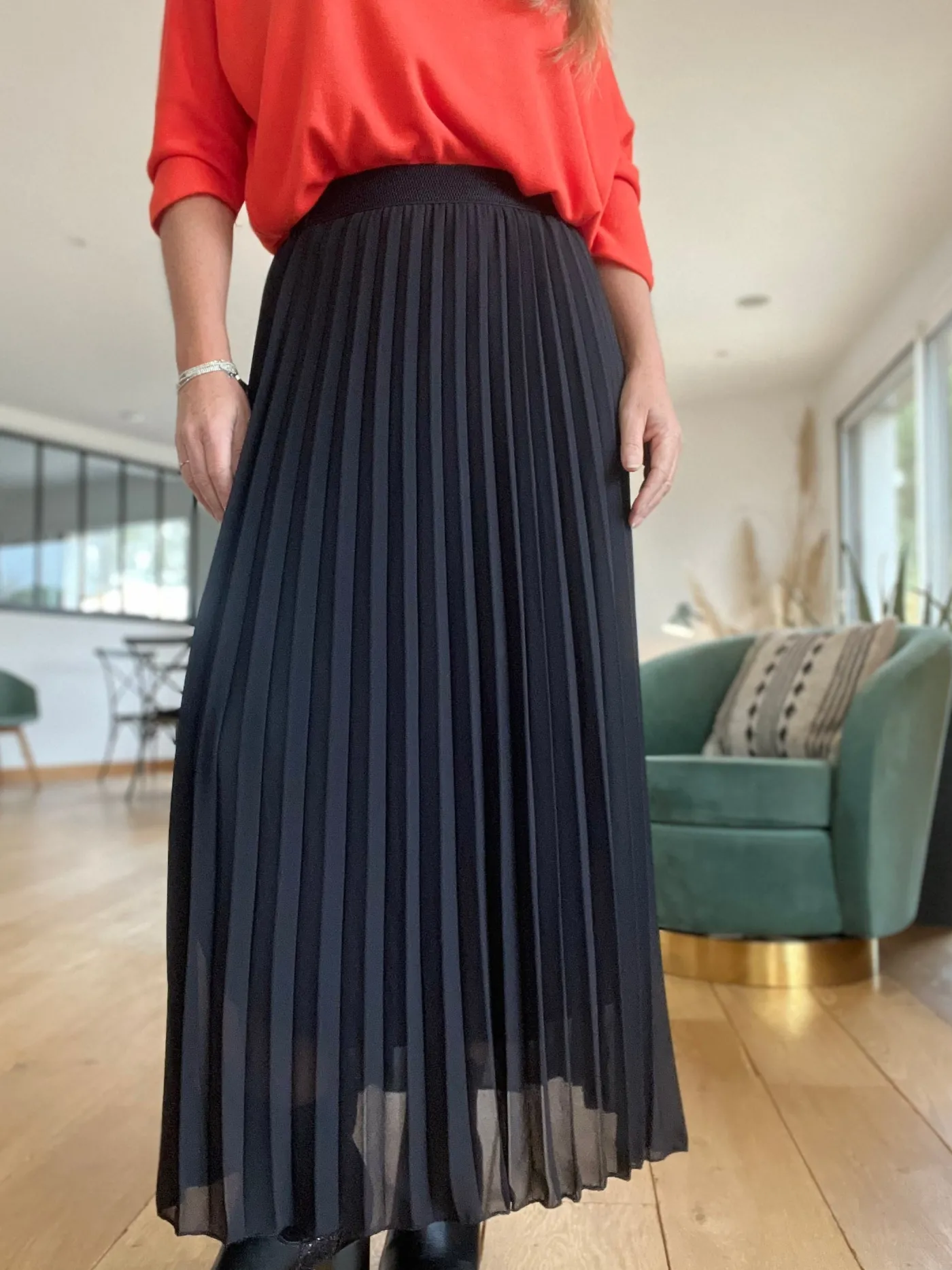 Jupe longue plisséeCeinture noirTaille : Magali mesure 1m58 et Justine mesure 1m69. Elles portent la taille Taille …