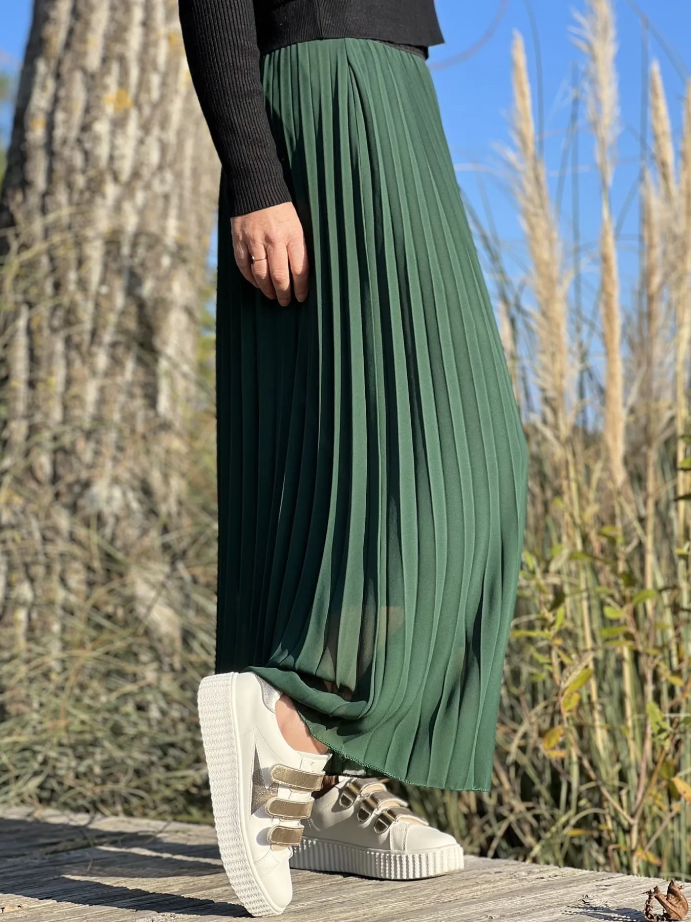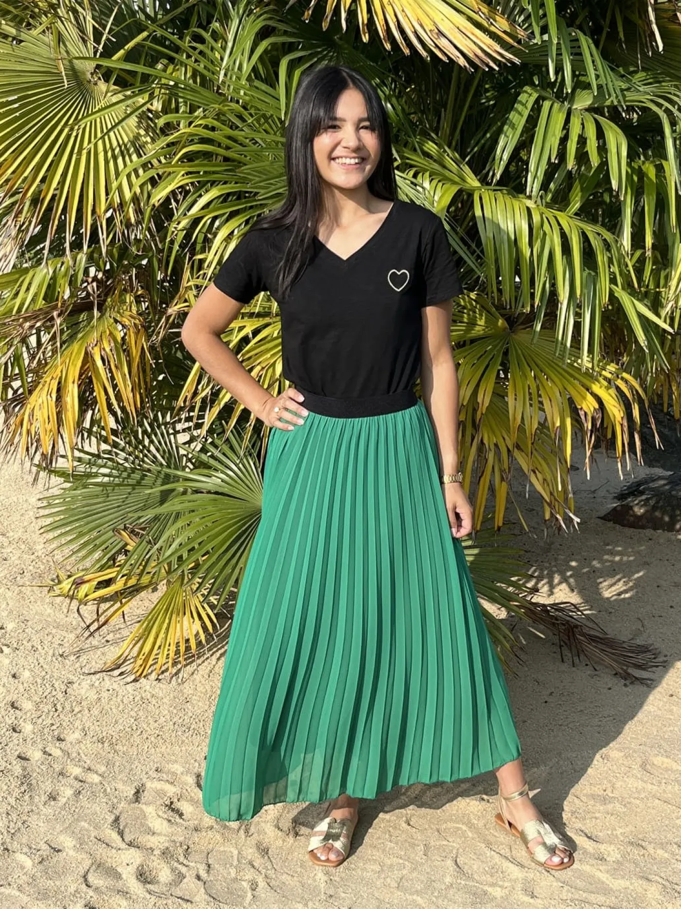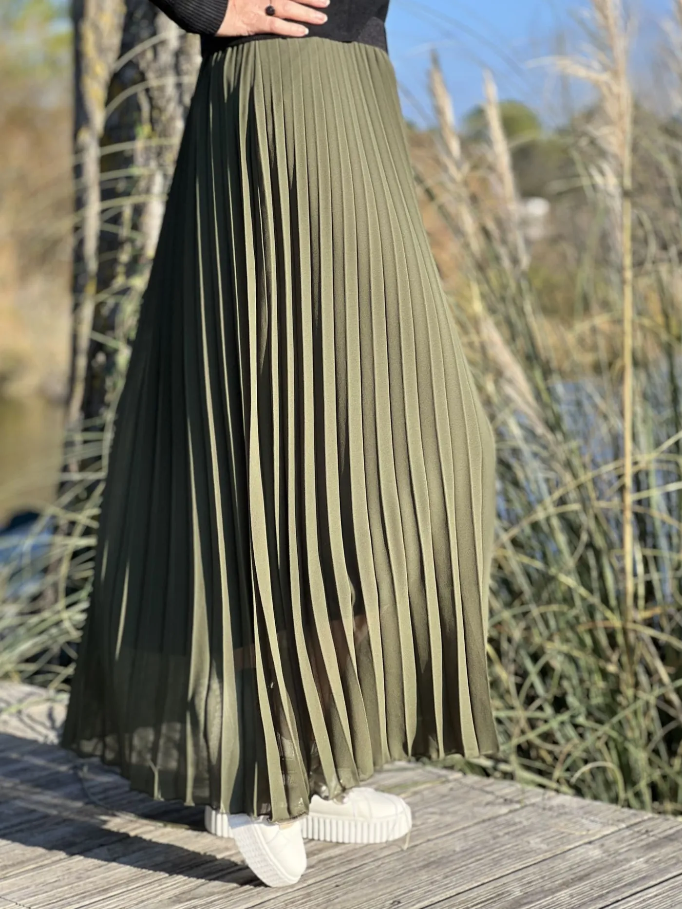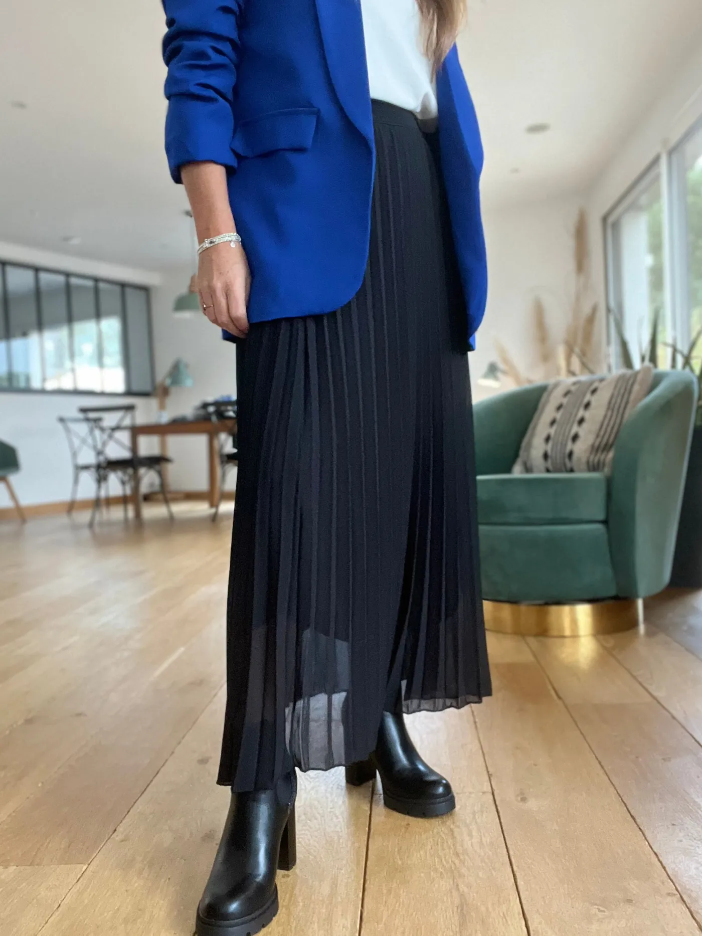 Jupe longue plisséeCeinture noirTaille : Magali mesure 1m58 et Justine mesure 1m69. Elles portent la taille Taille …