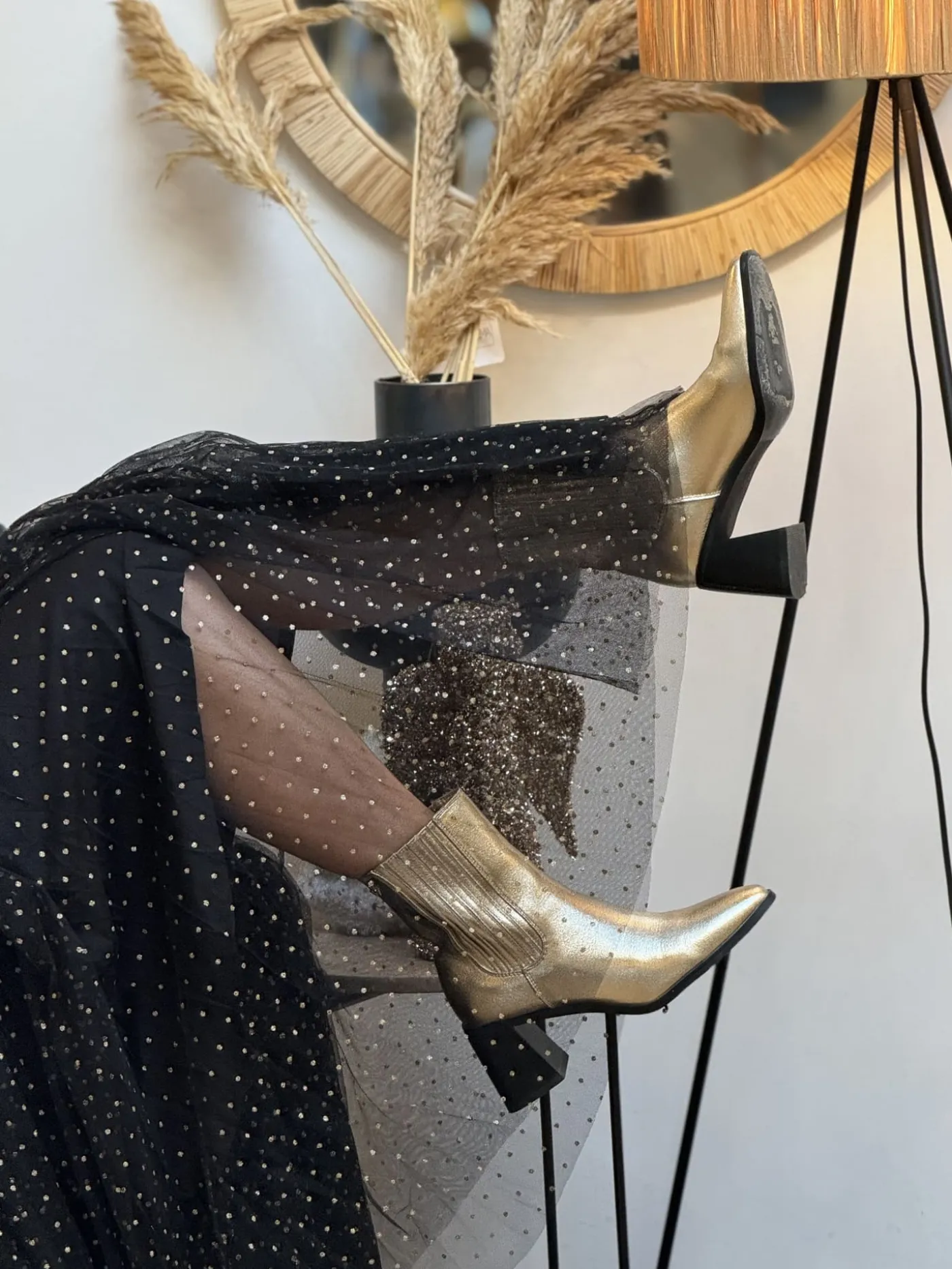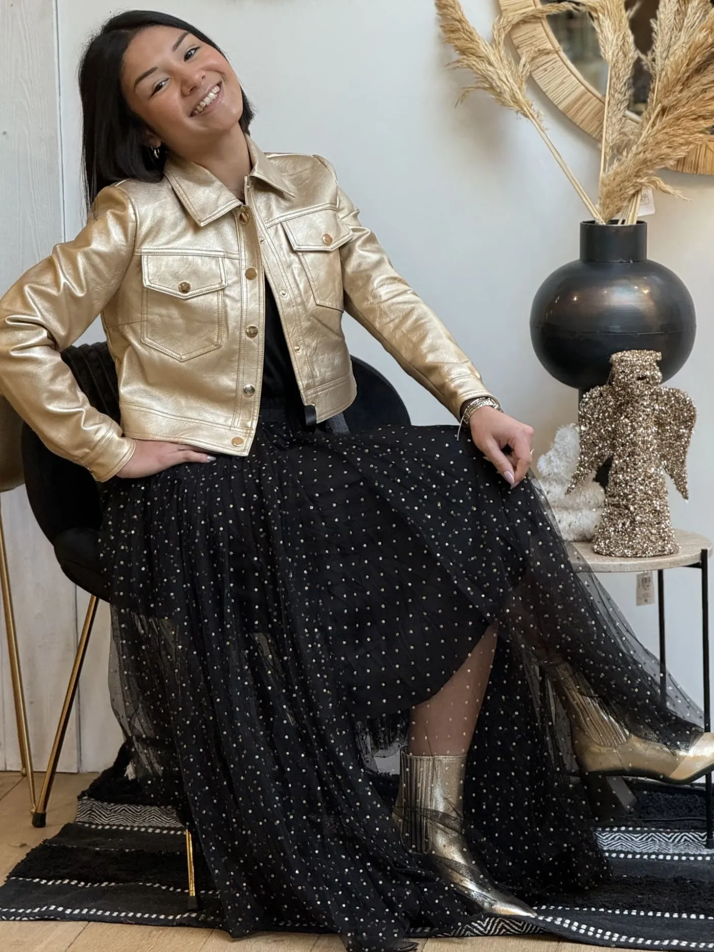 - JUPE LONGUE EN TULLE À POIS DORÉS