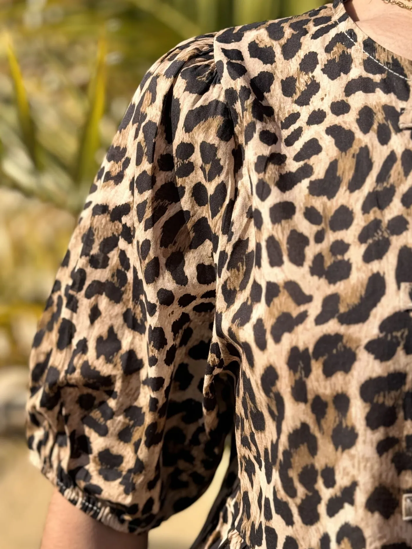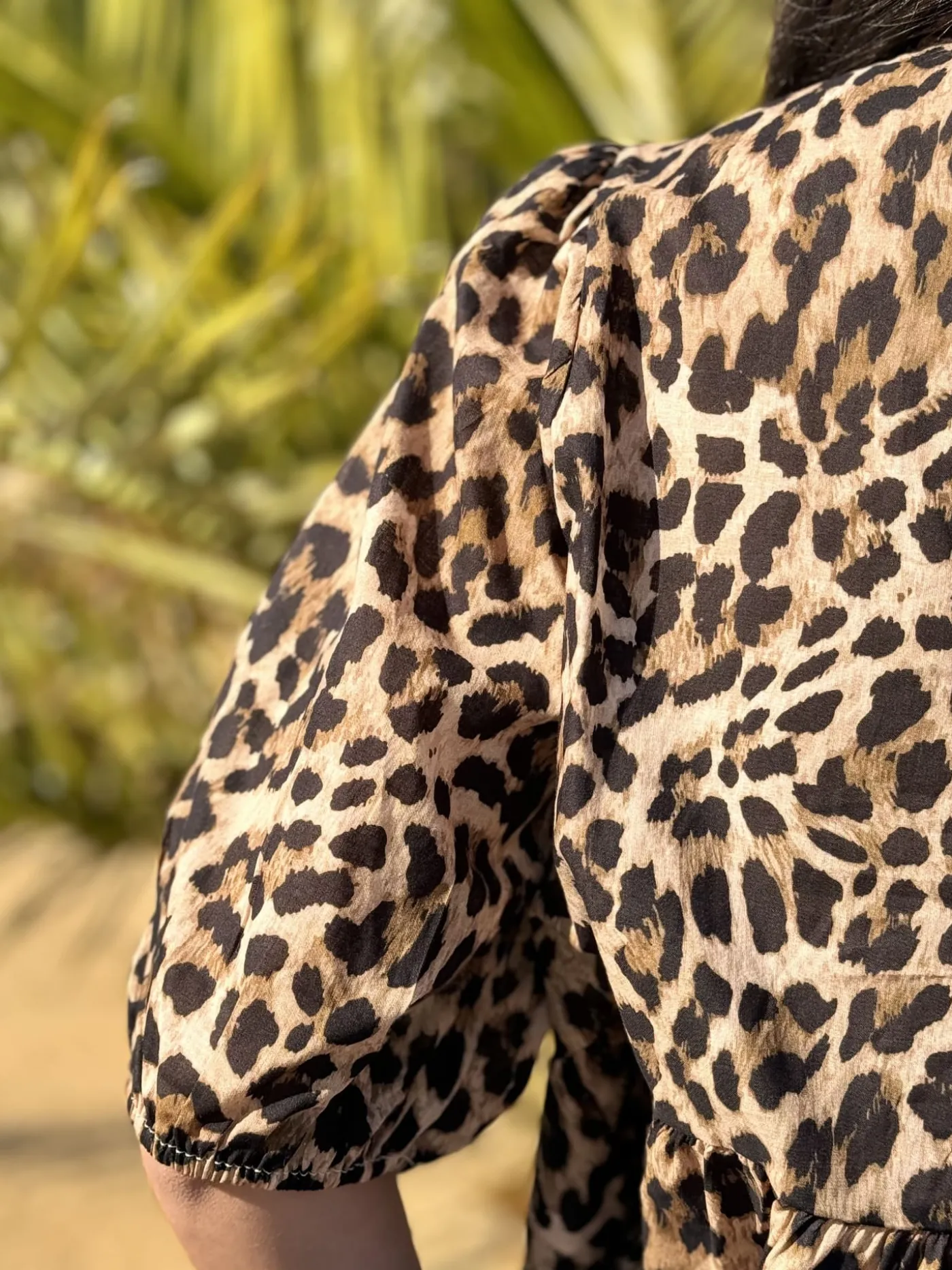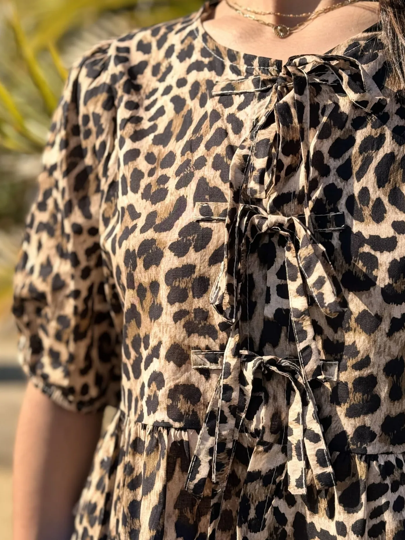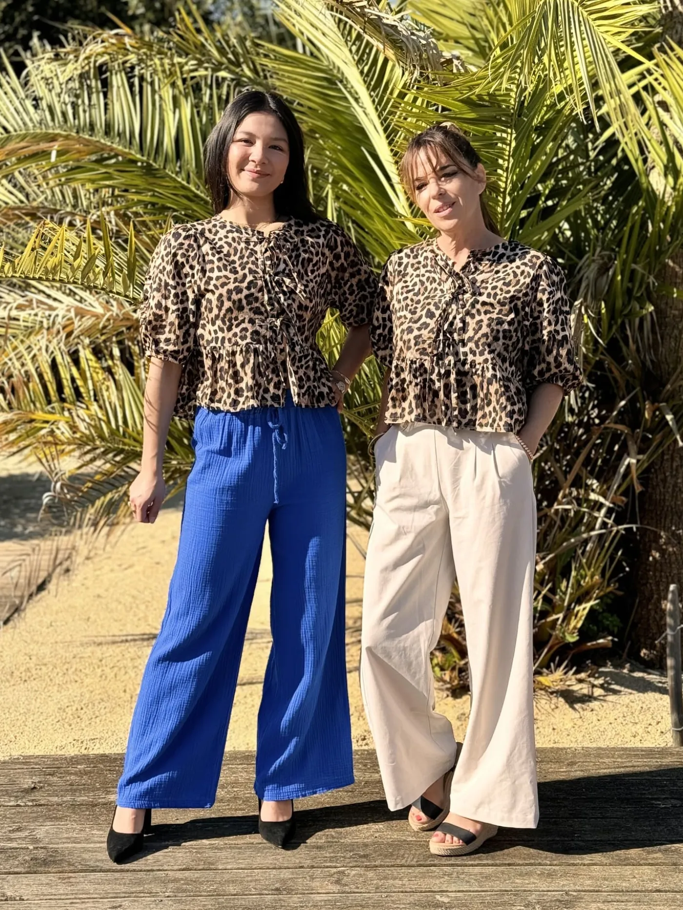 - Blouse à manches 3/4 + nœuds devant – imprimé léopard
