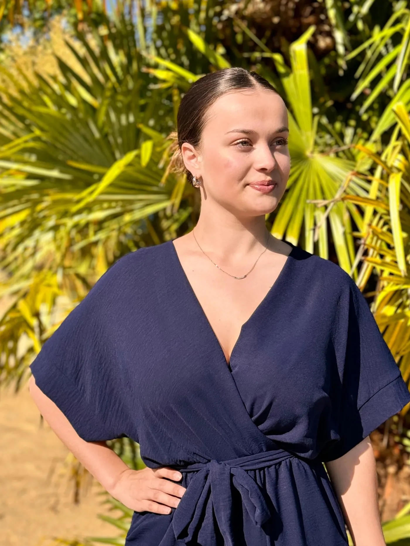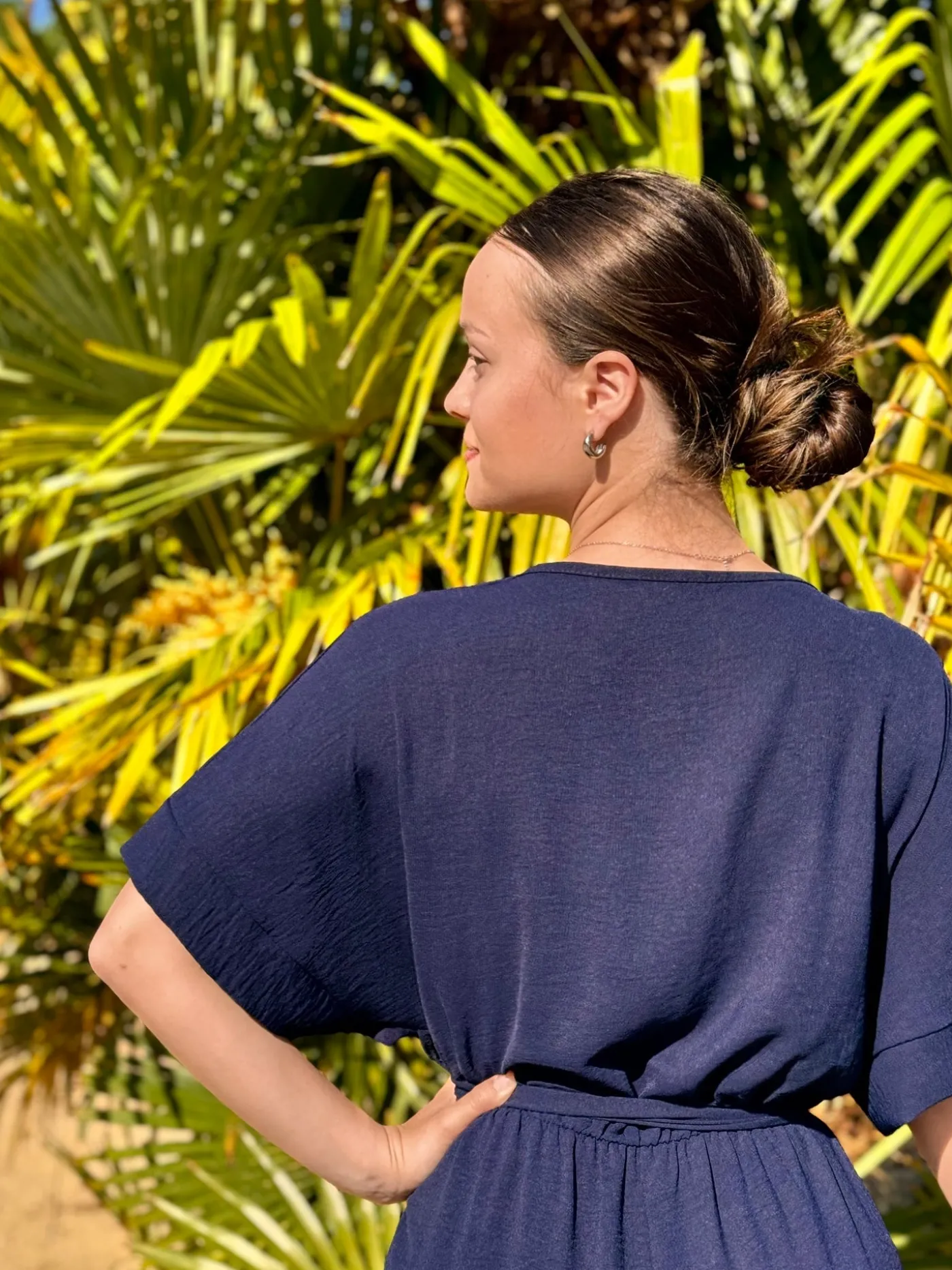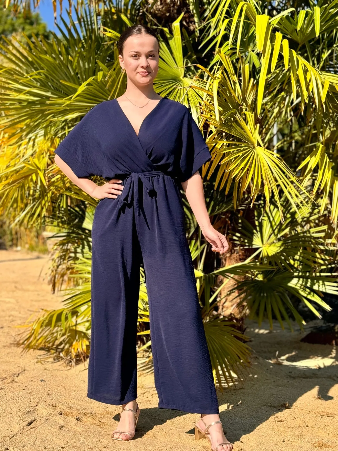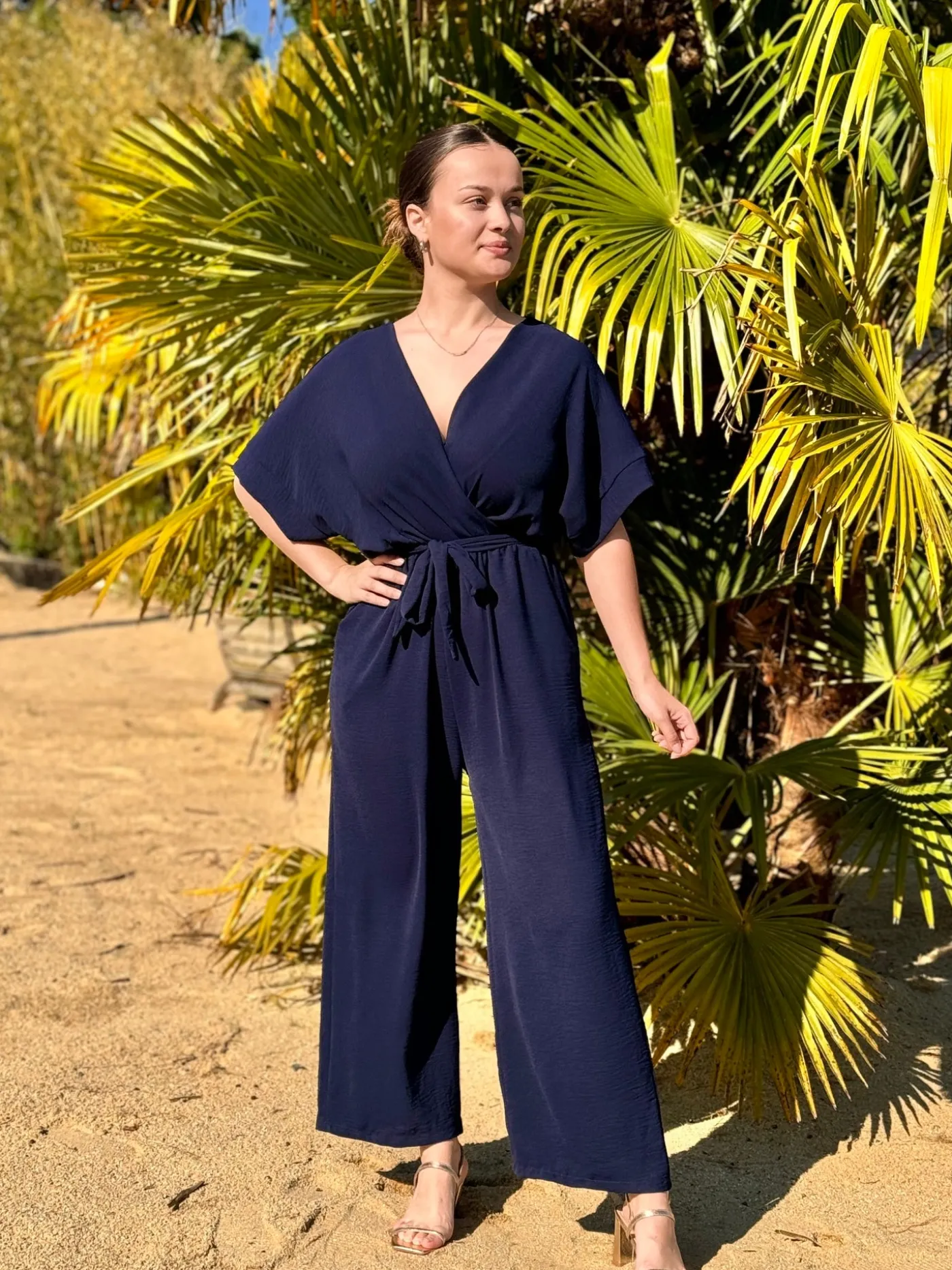 COMBINAISON PANTALON A MC COL CACHE CŒUR + CEINTURE A LA TAILLETaille : Mathilde mesure 1m65, Justine mesure 1m69 et J…