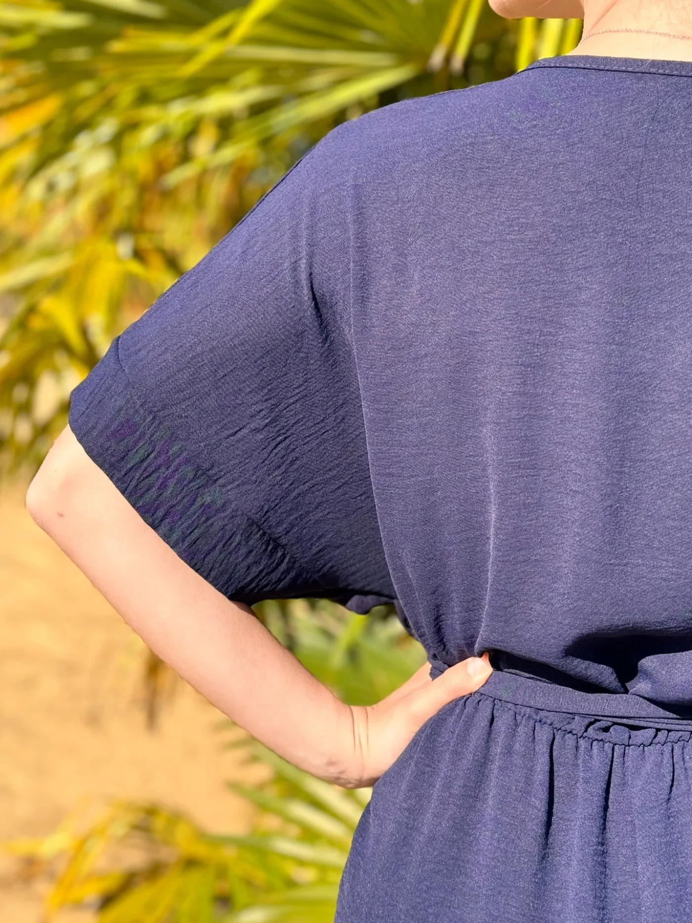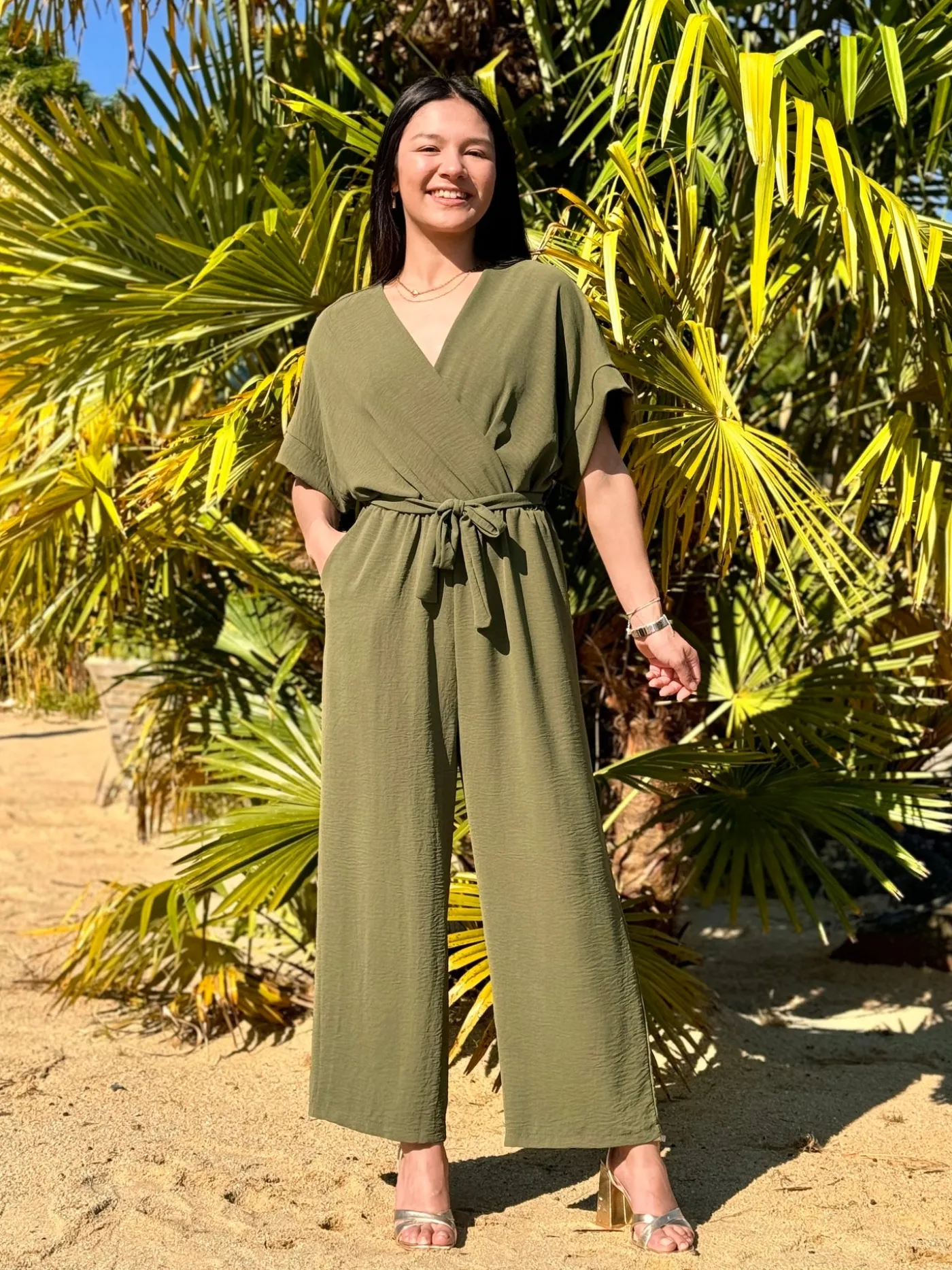 - COMBINAISON PANTALON A MC COL CACHE CŒUR + CEINTURE A LA TAILLE