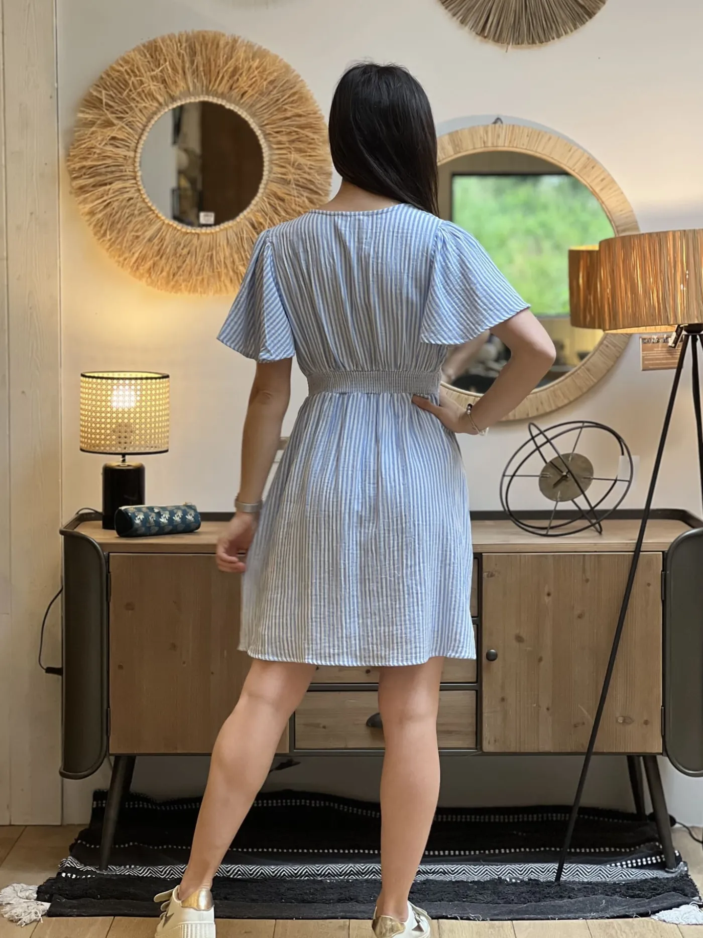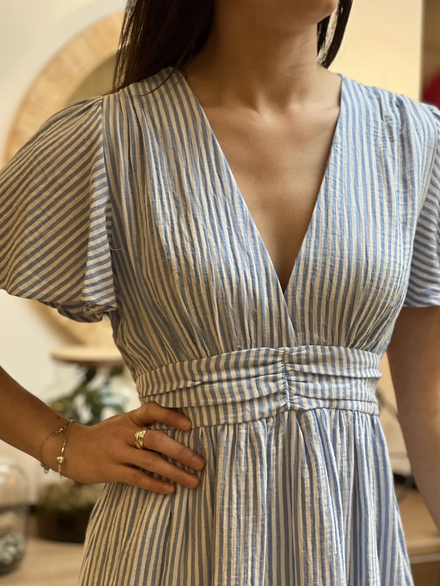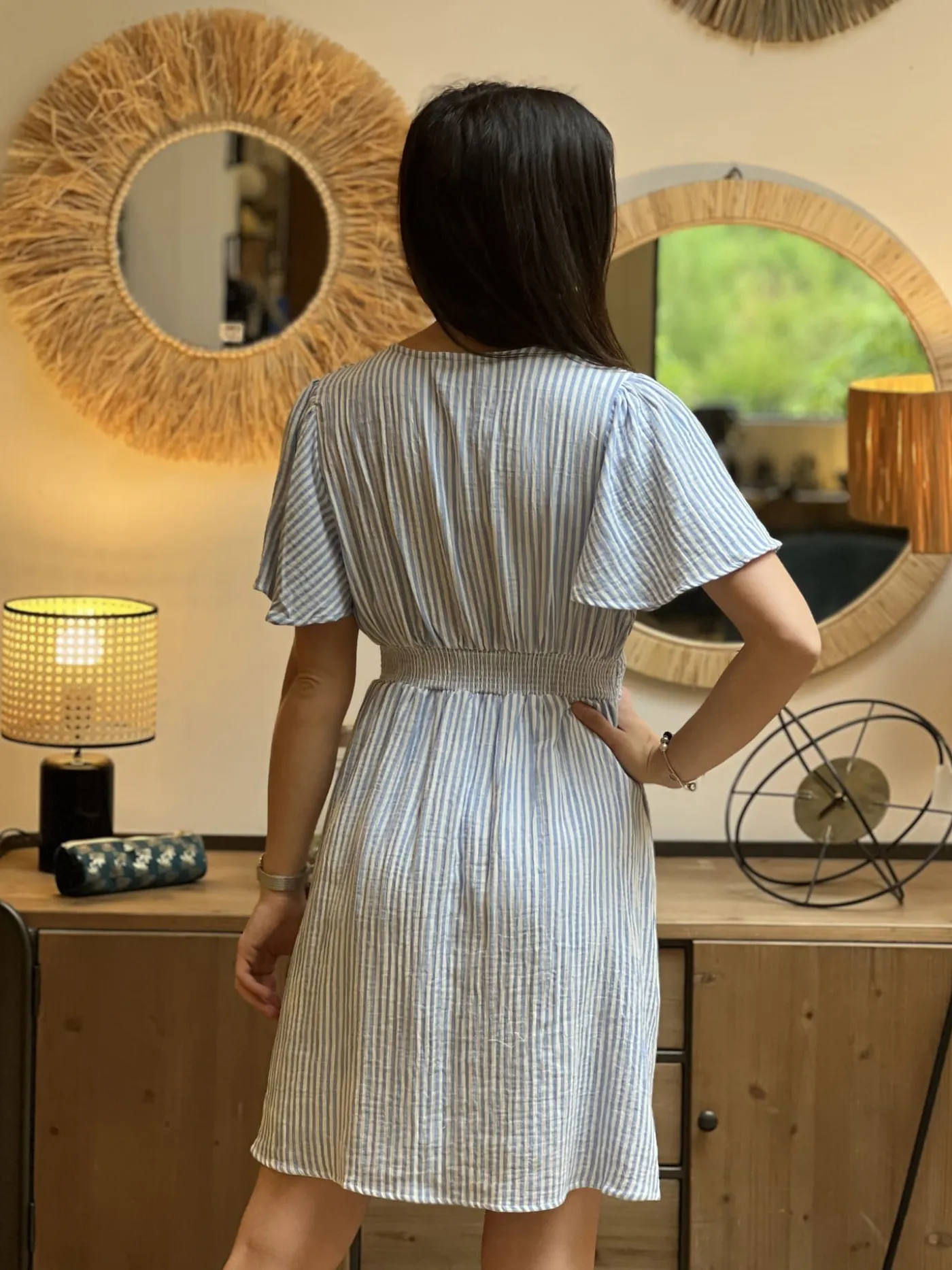 - ROBE COURTE A MC COL V – RAYURES BLEU CLAIRES ET BLANCHES