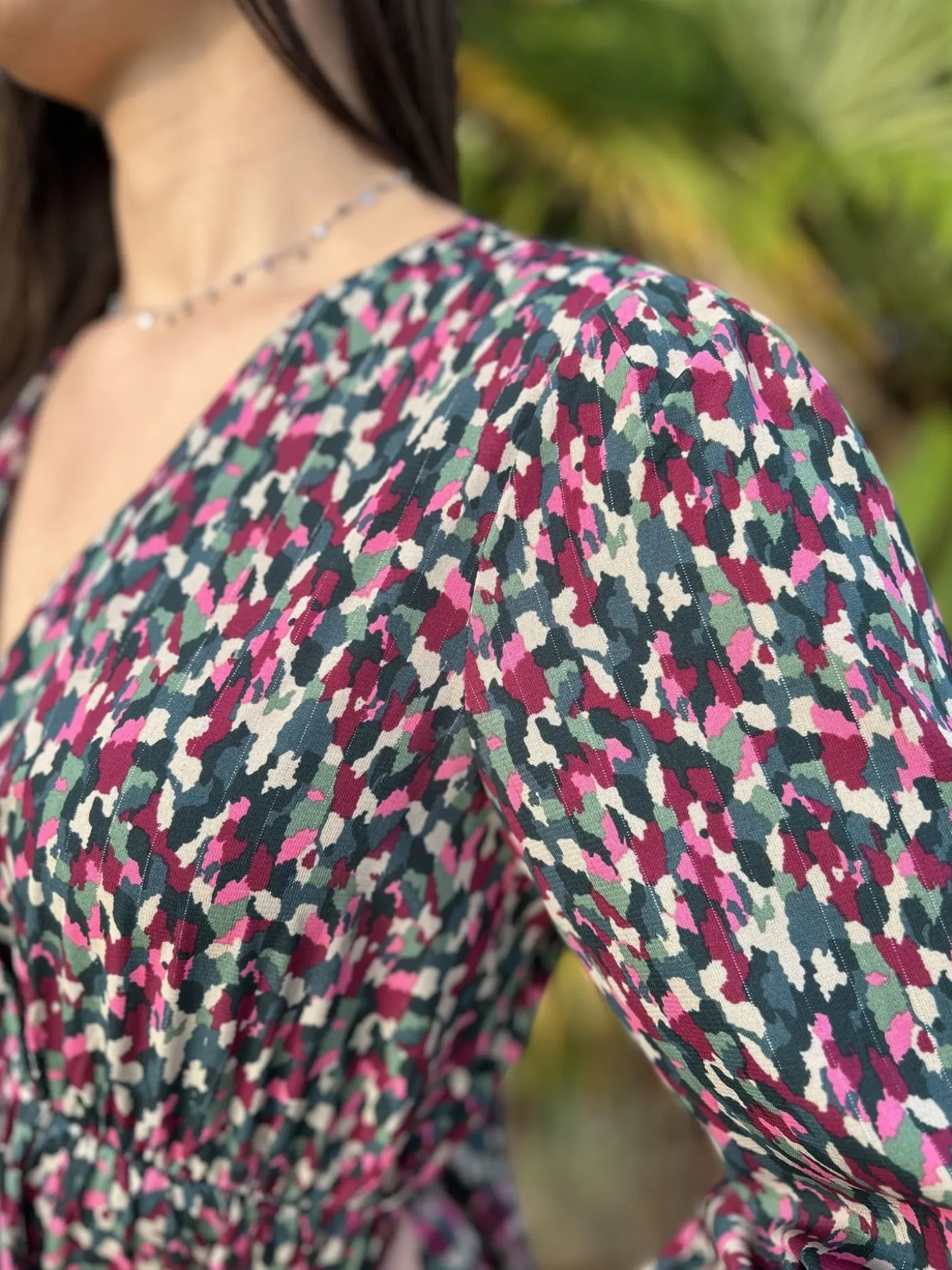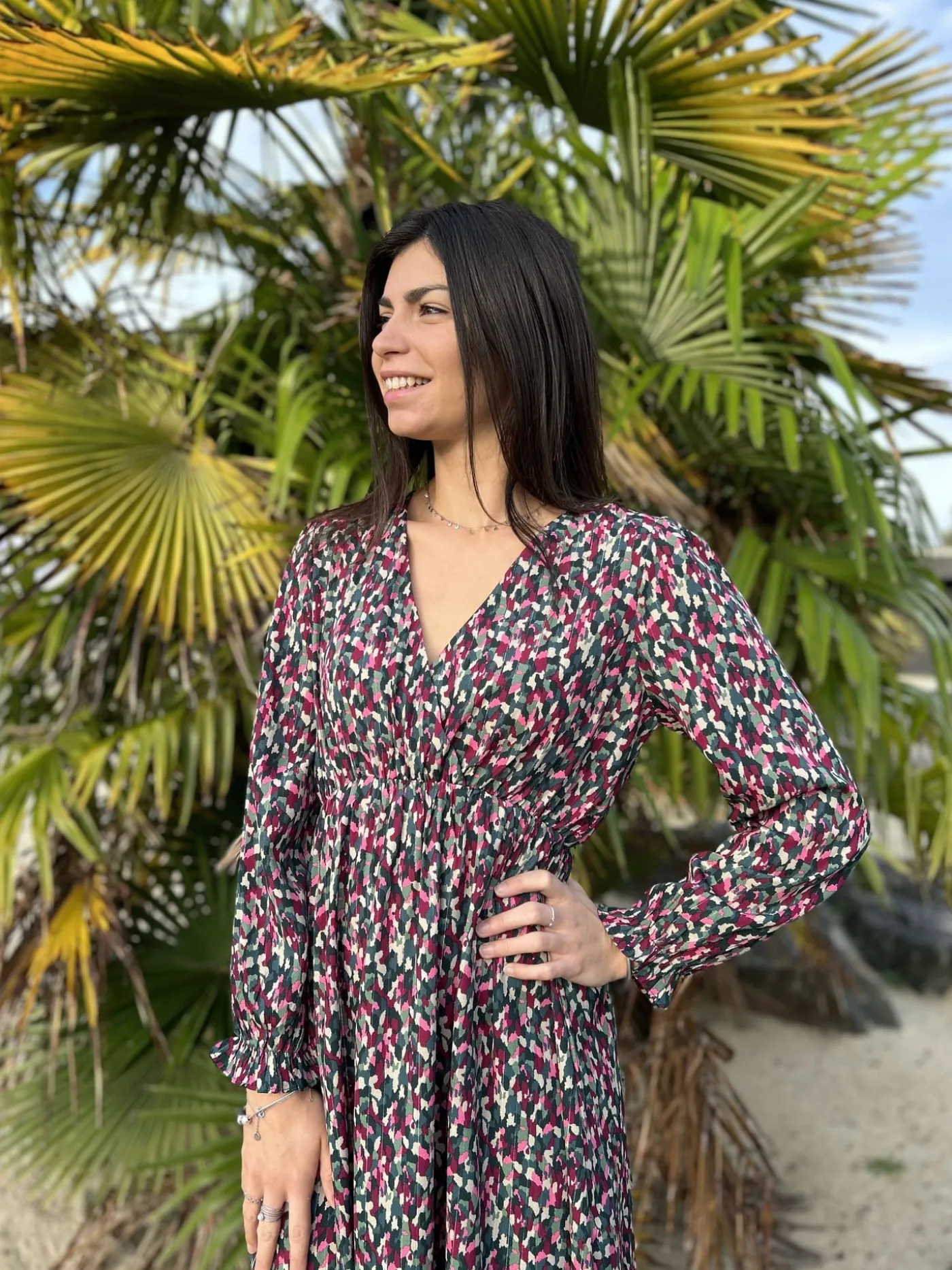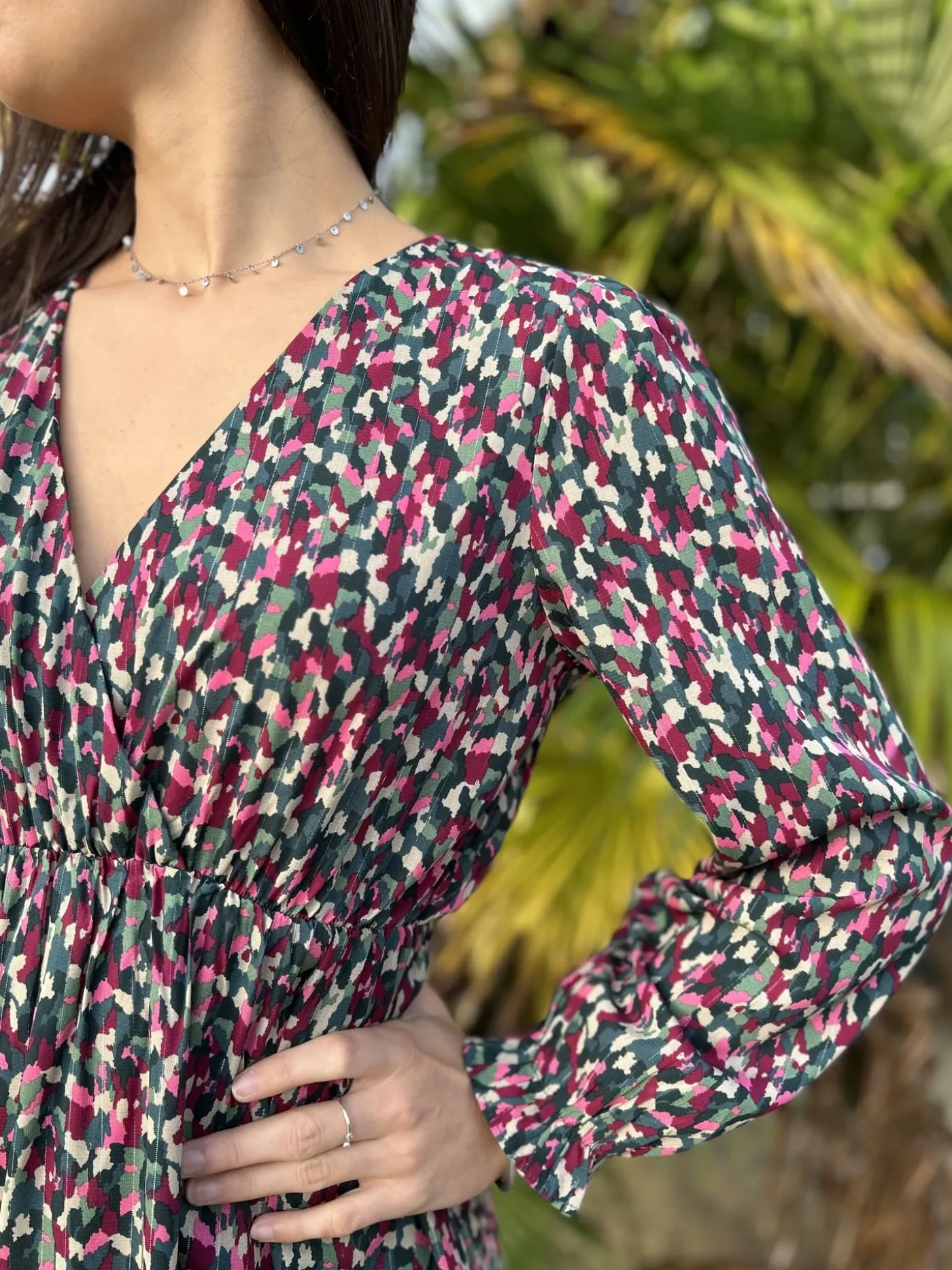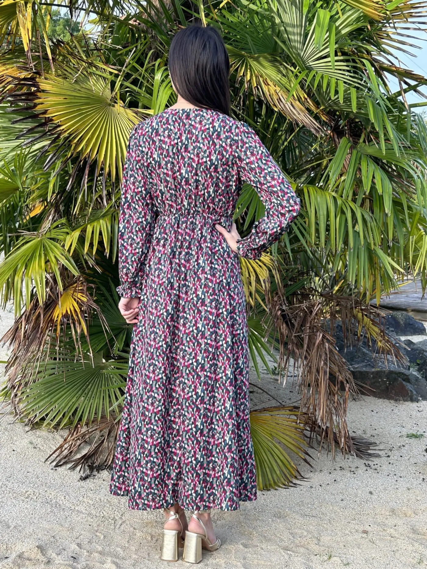 - Robe longue à ml col cache cœur – imprimé tâches colorées