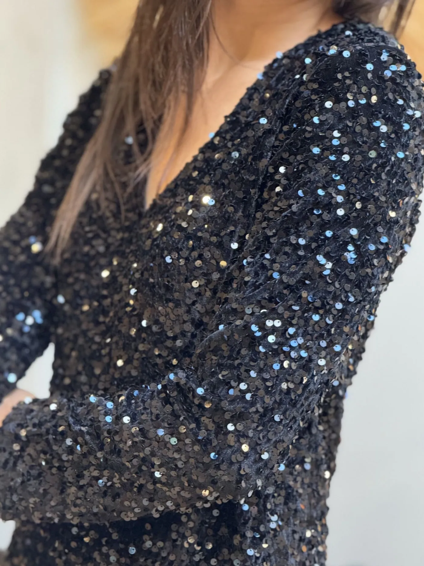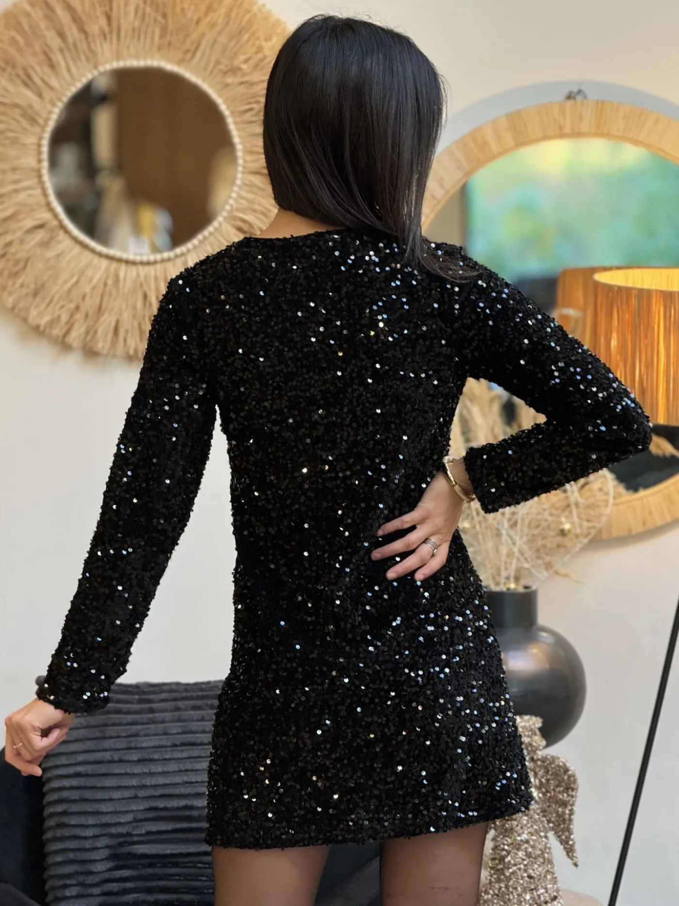 ROBE COURTE à ml col v à sequinsTaille : Justine mesure 1m69. Elle porte la taille S/M pour ce modèle.Taille : S/M (…