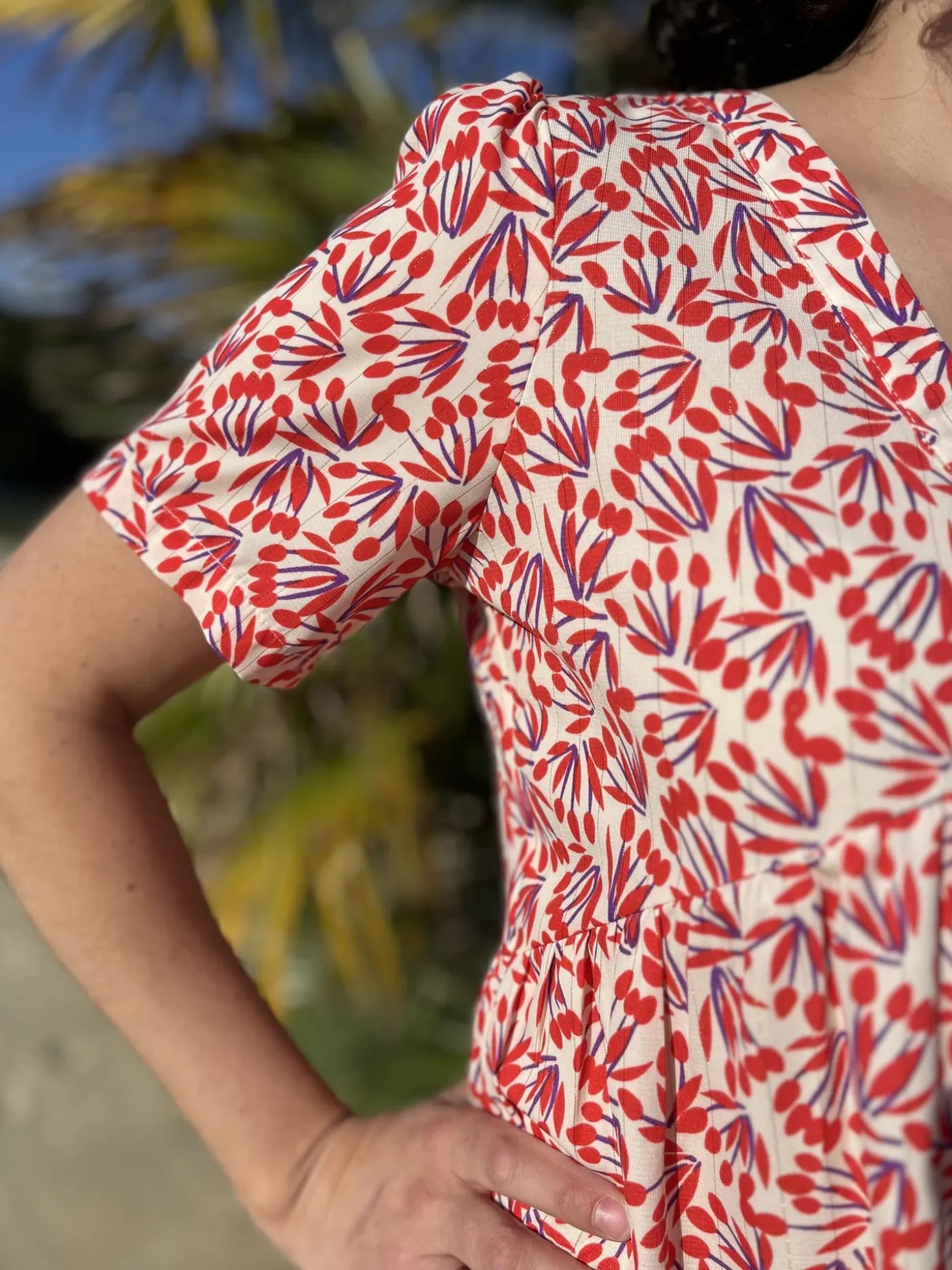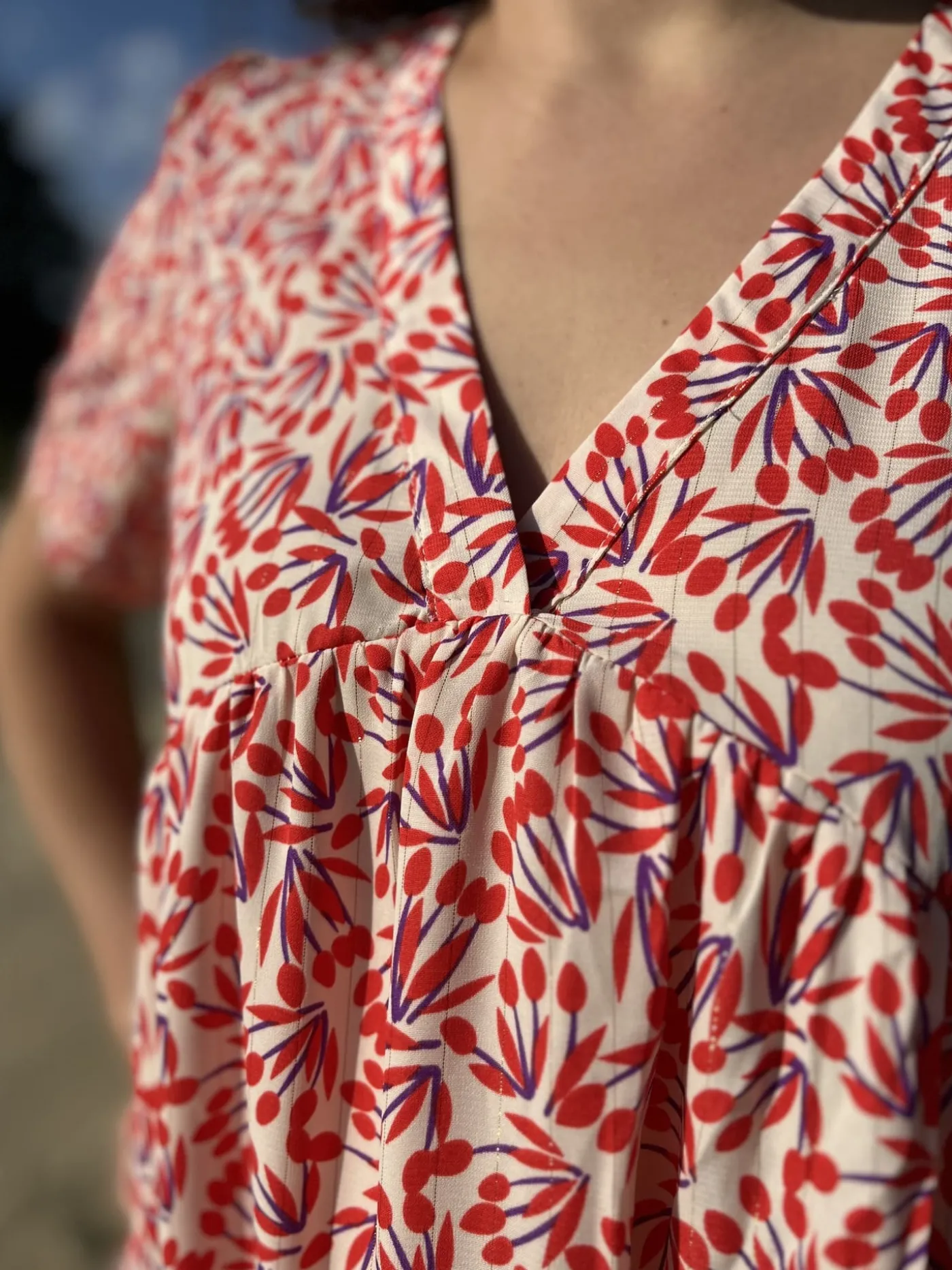 - ROBE COURTE MANCHE COURTE COL V MOTIF