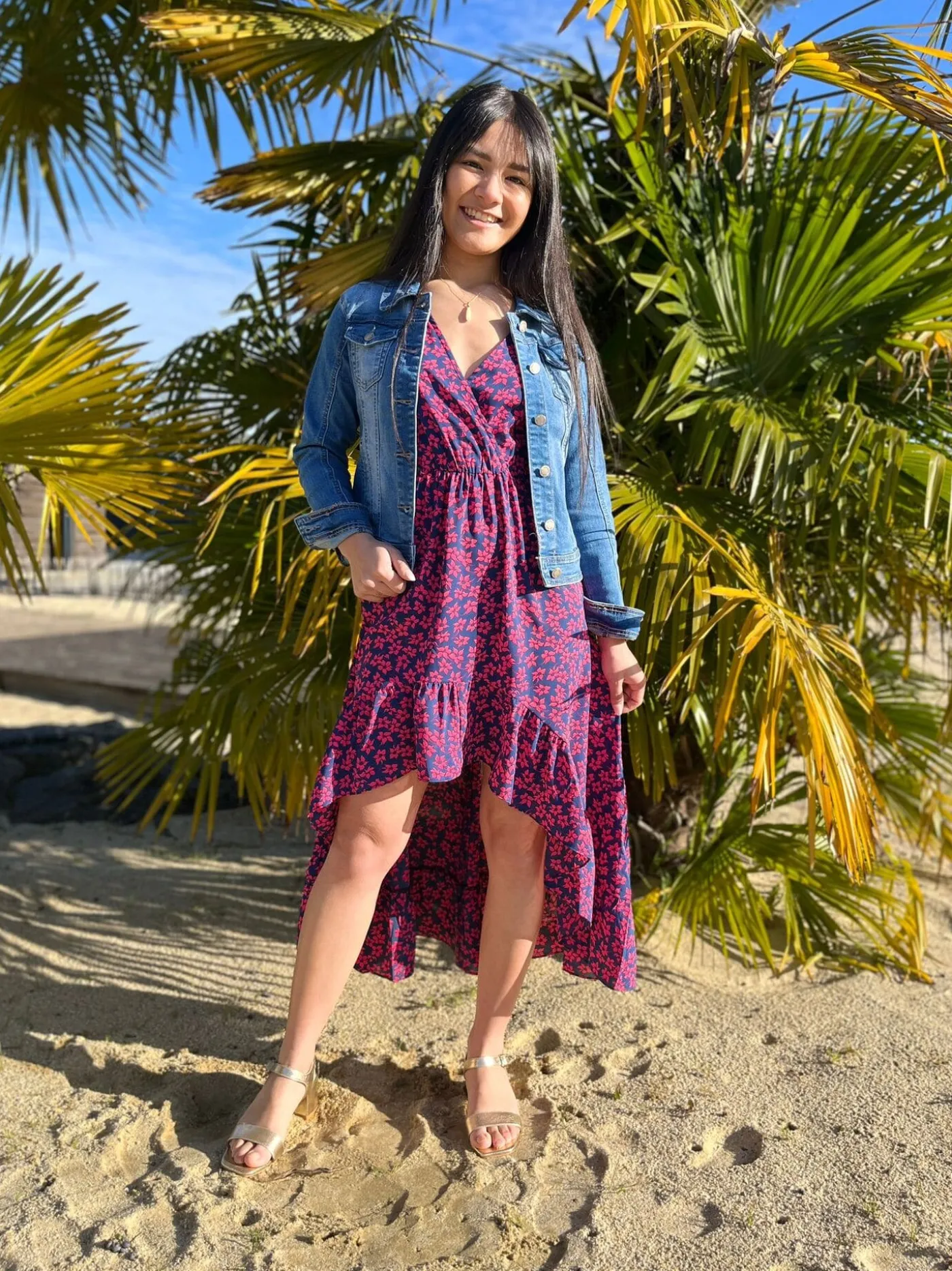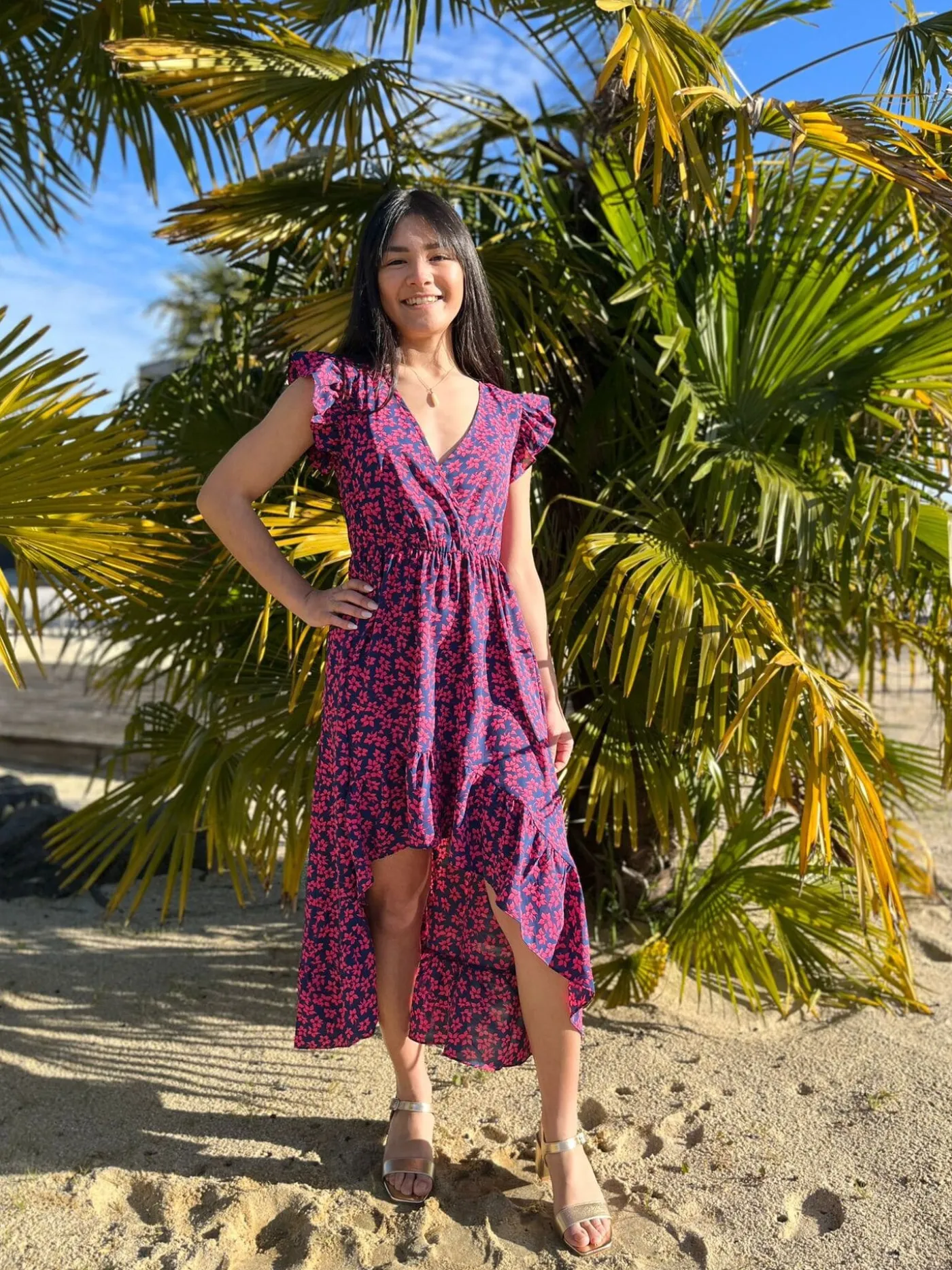 ROBE COURTE SANS MANCHE FROUFROU CACHE COEURTaille : Justine mesure 1m69 et Mathilde mesure 1m65. Elles portent la tai…