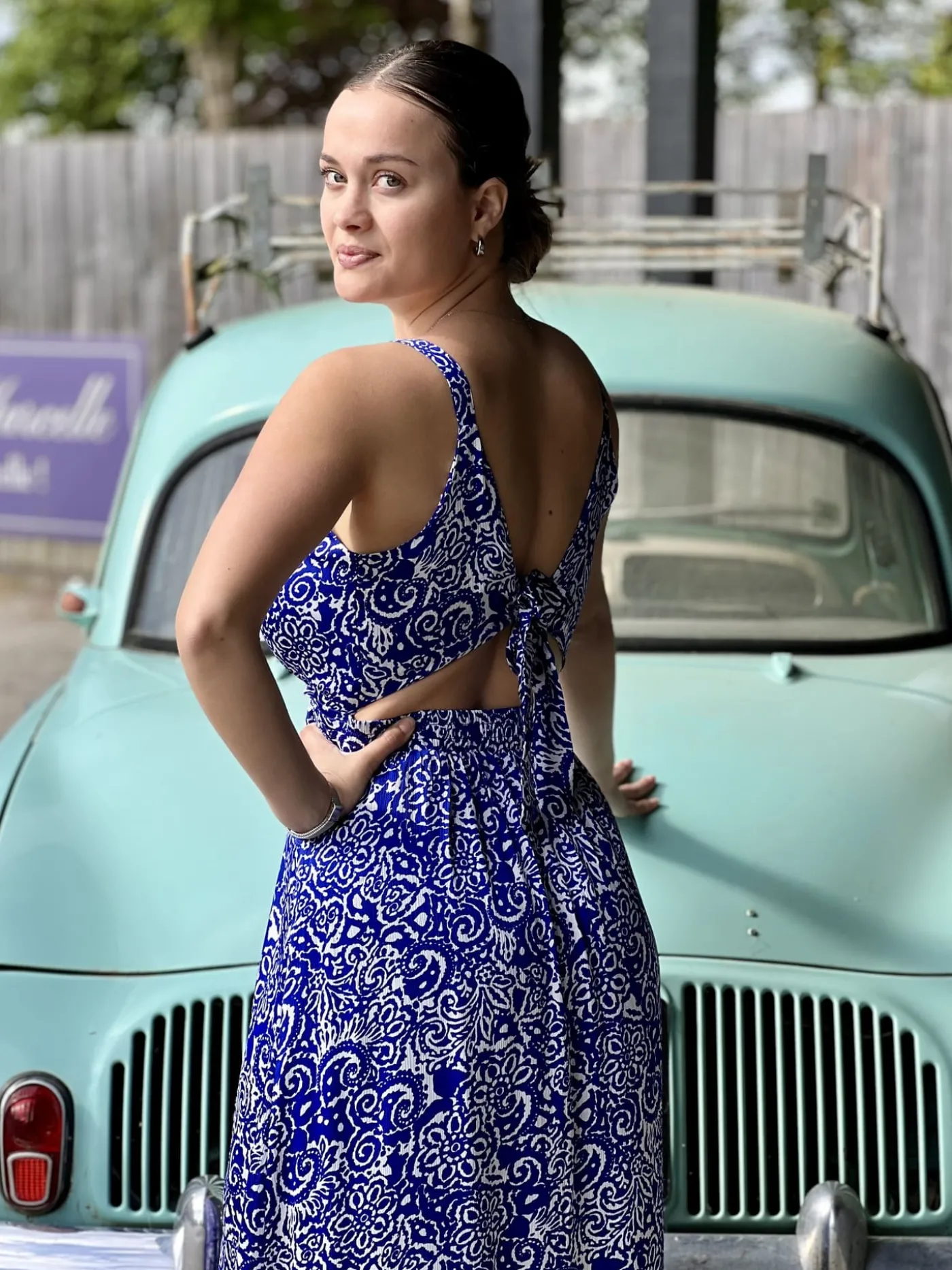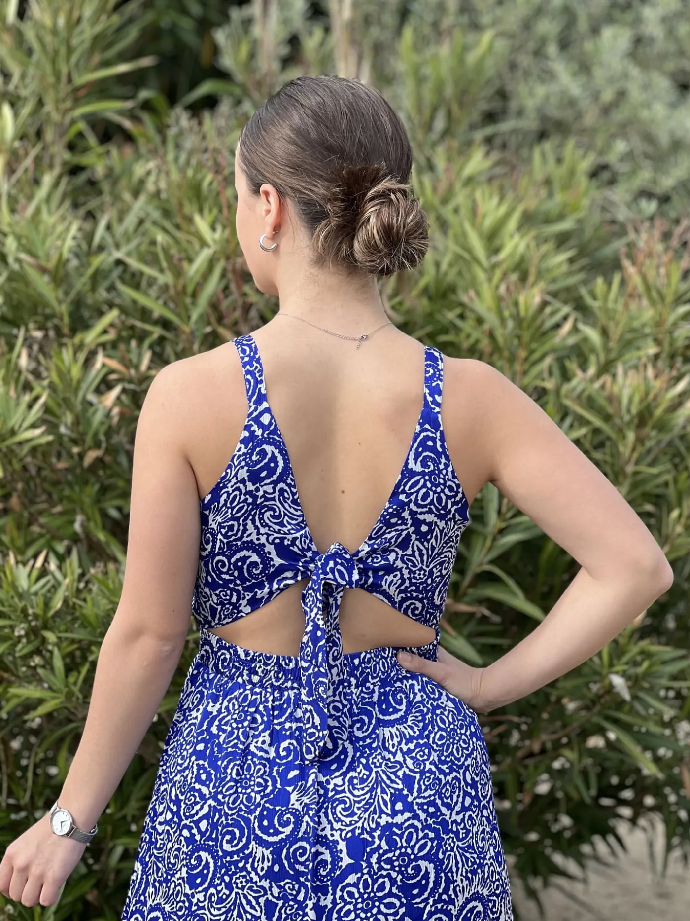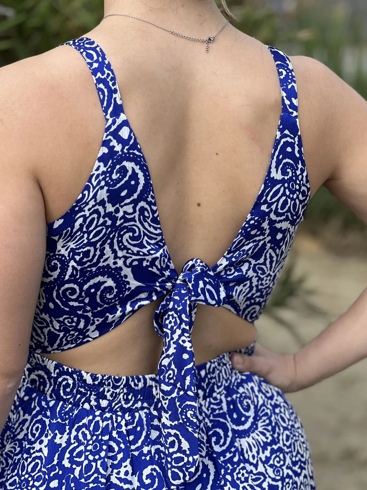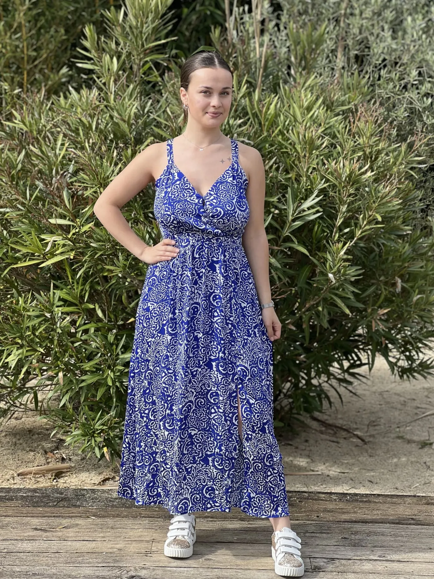 - Robe longue à bretelles col v imprimé bohème blanc