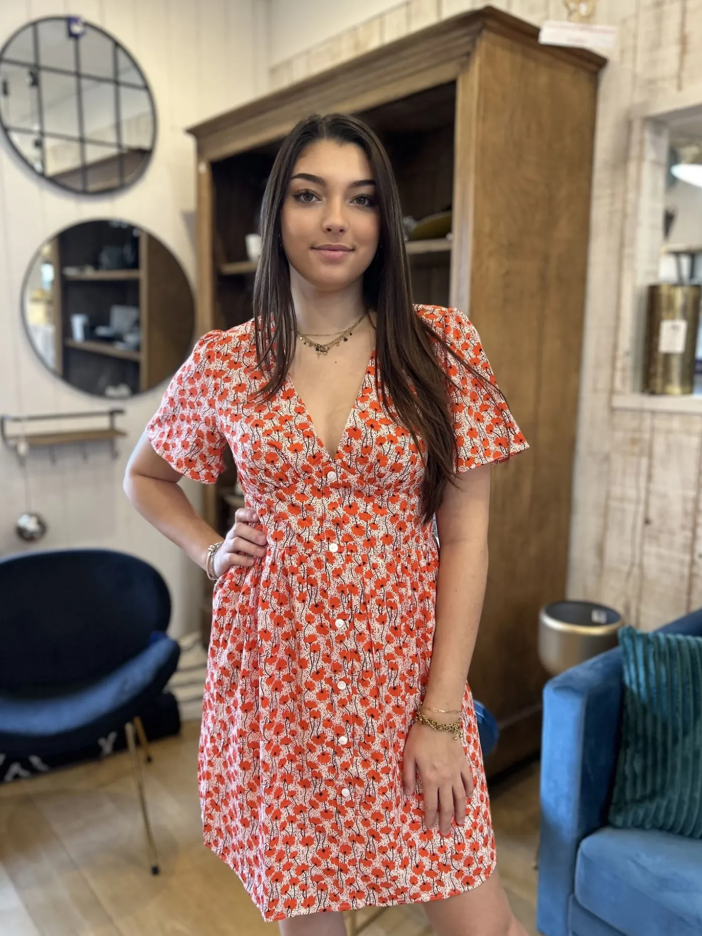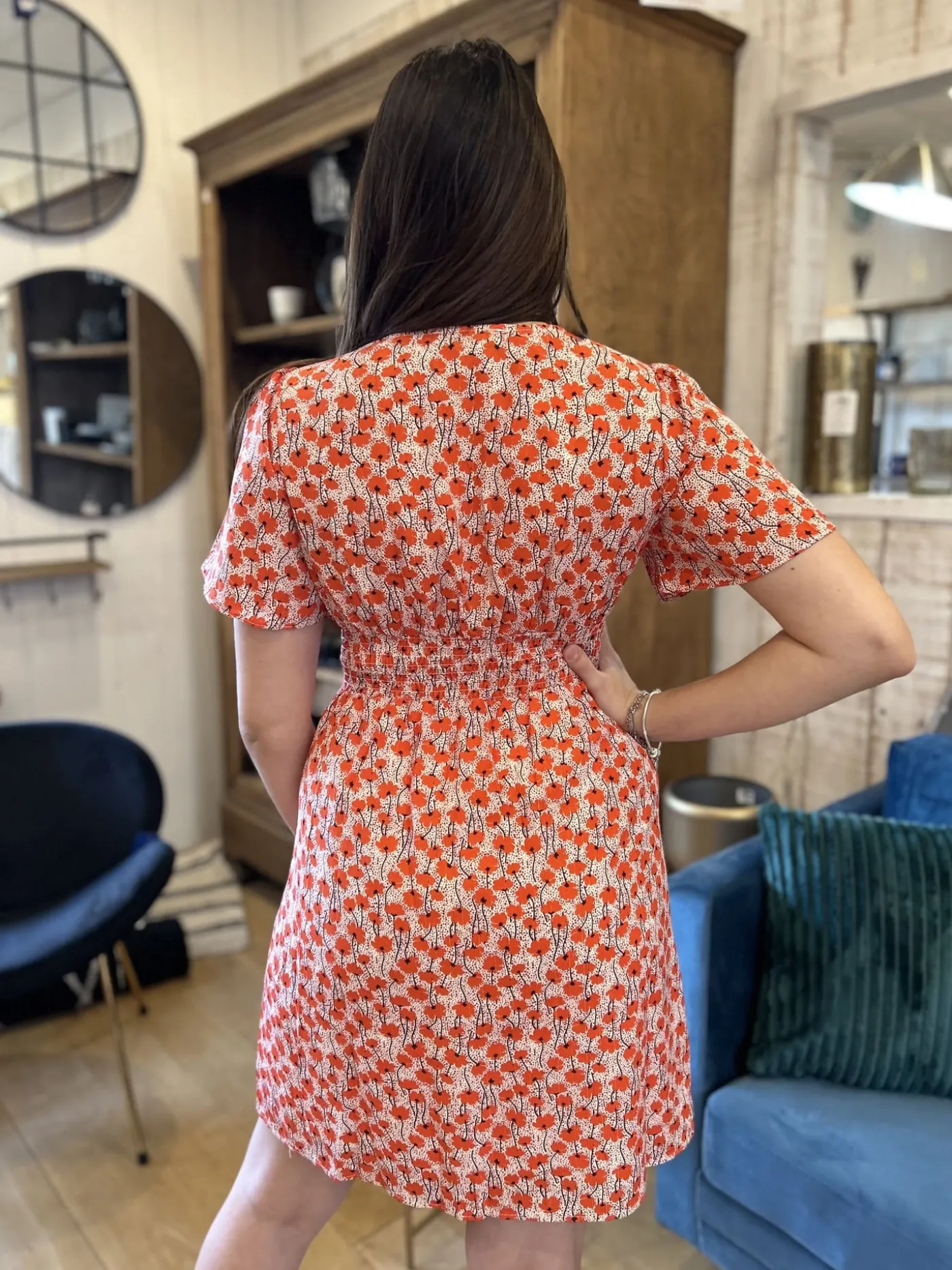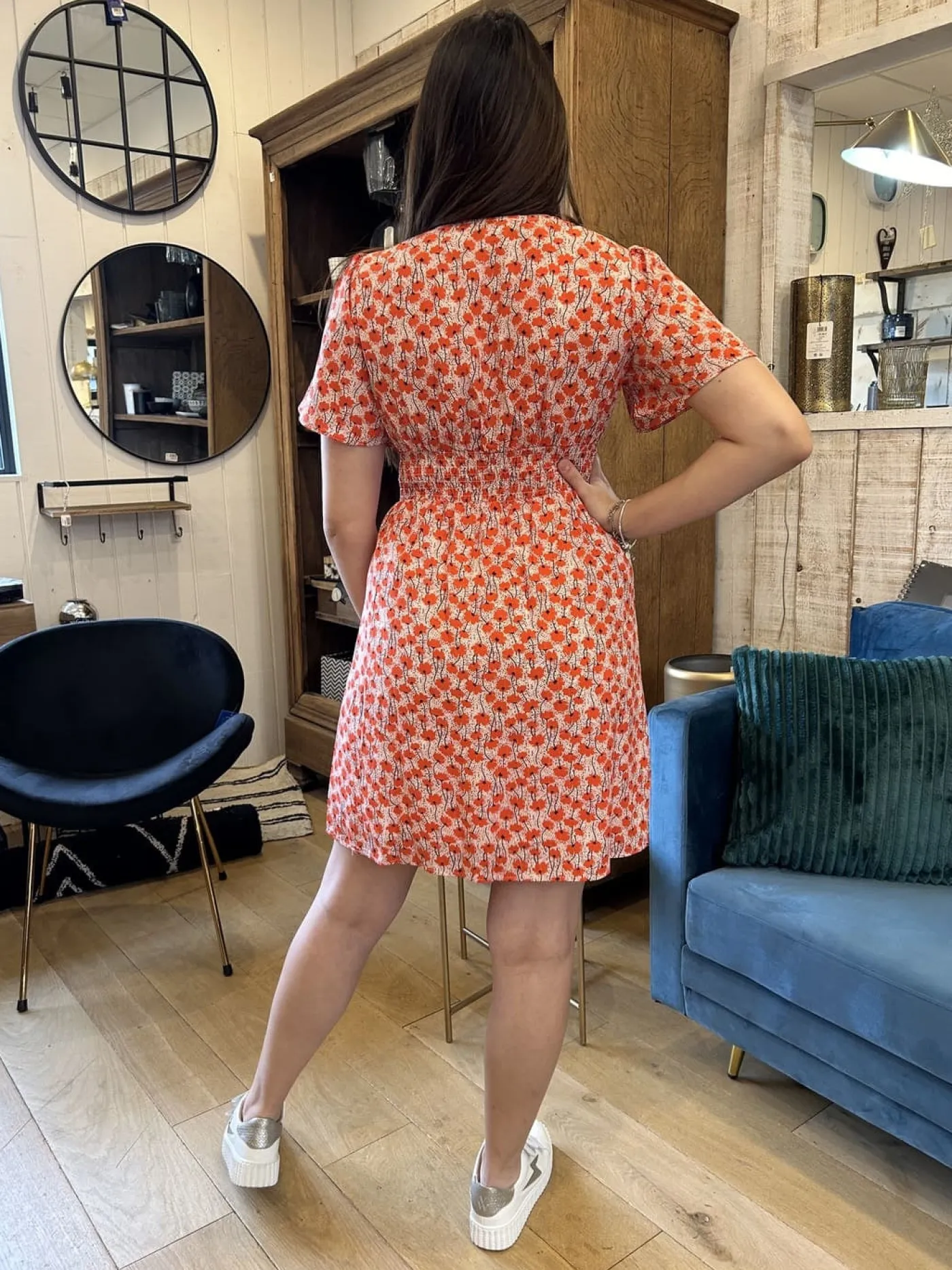 ROBE COURTE MANCHE COURTE MOTIF Taille : Maelys mesure 1m68. Elle porte la taille S/M pour ce modèle. Taille : S/M …