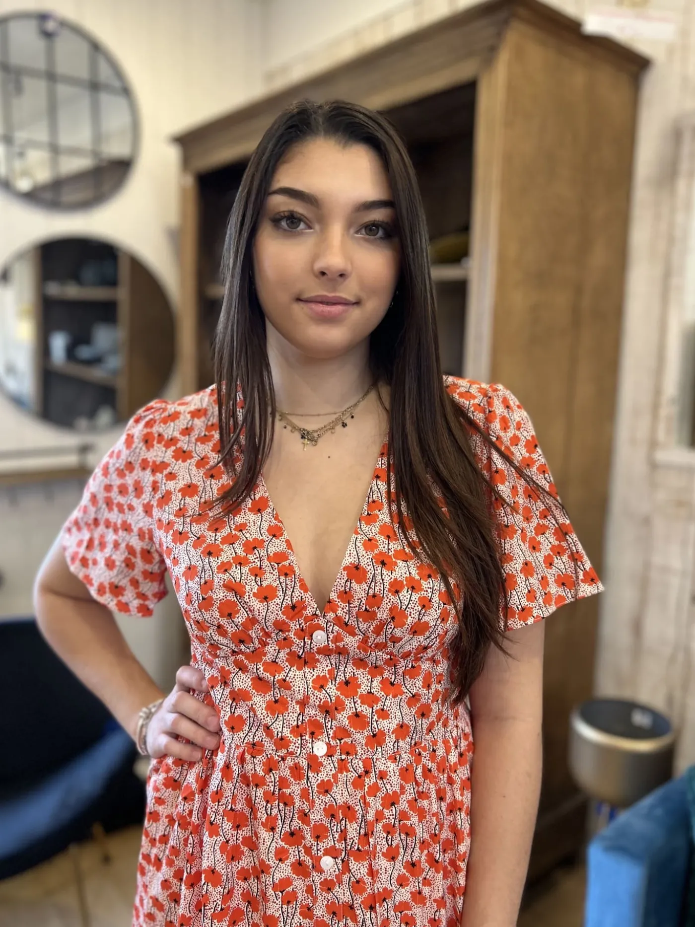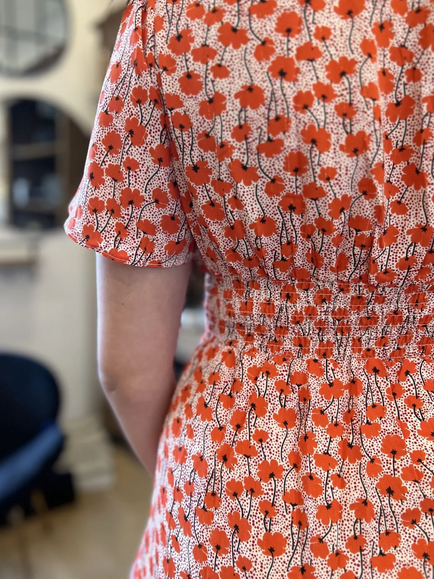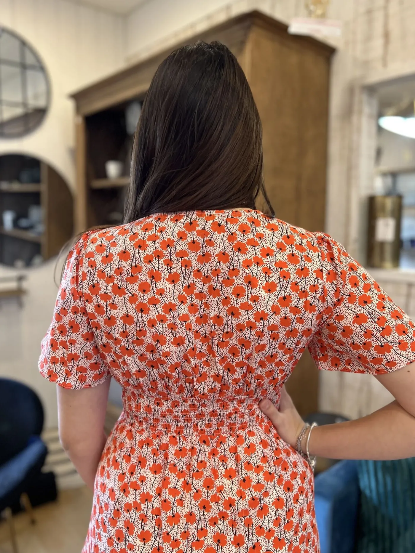 ROBE COURTE MANCHE COURTE MOTIF Taille : Maelys mesure 1m68. Elle porte la taille S/M pour ce modèle. Taille : S/M …
