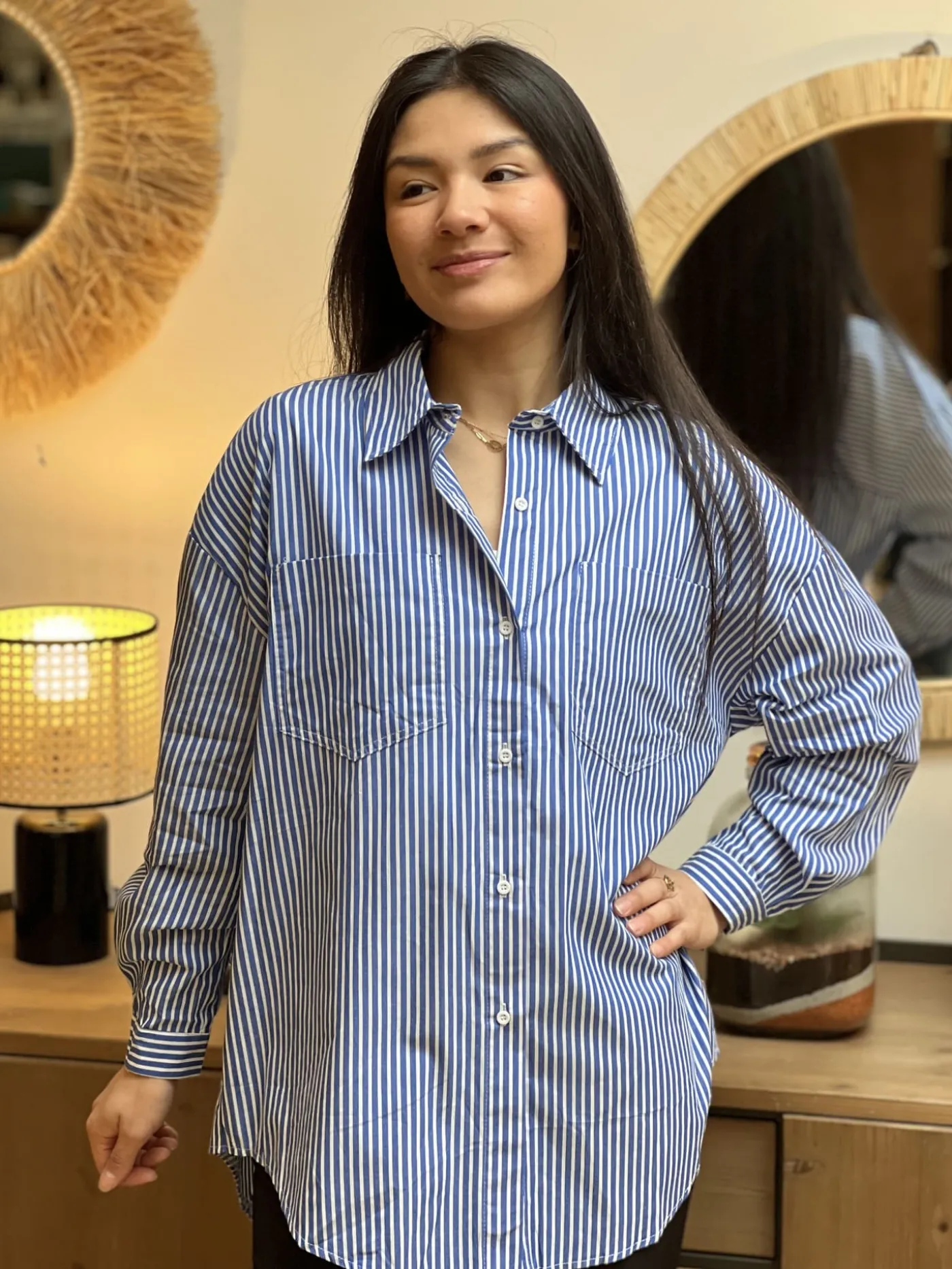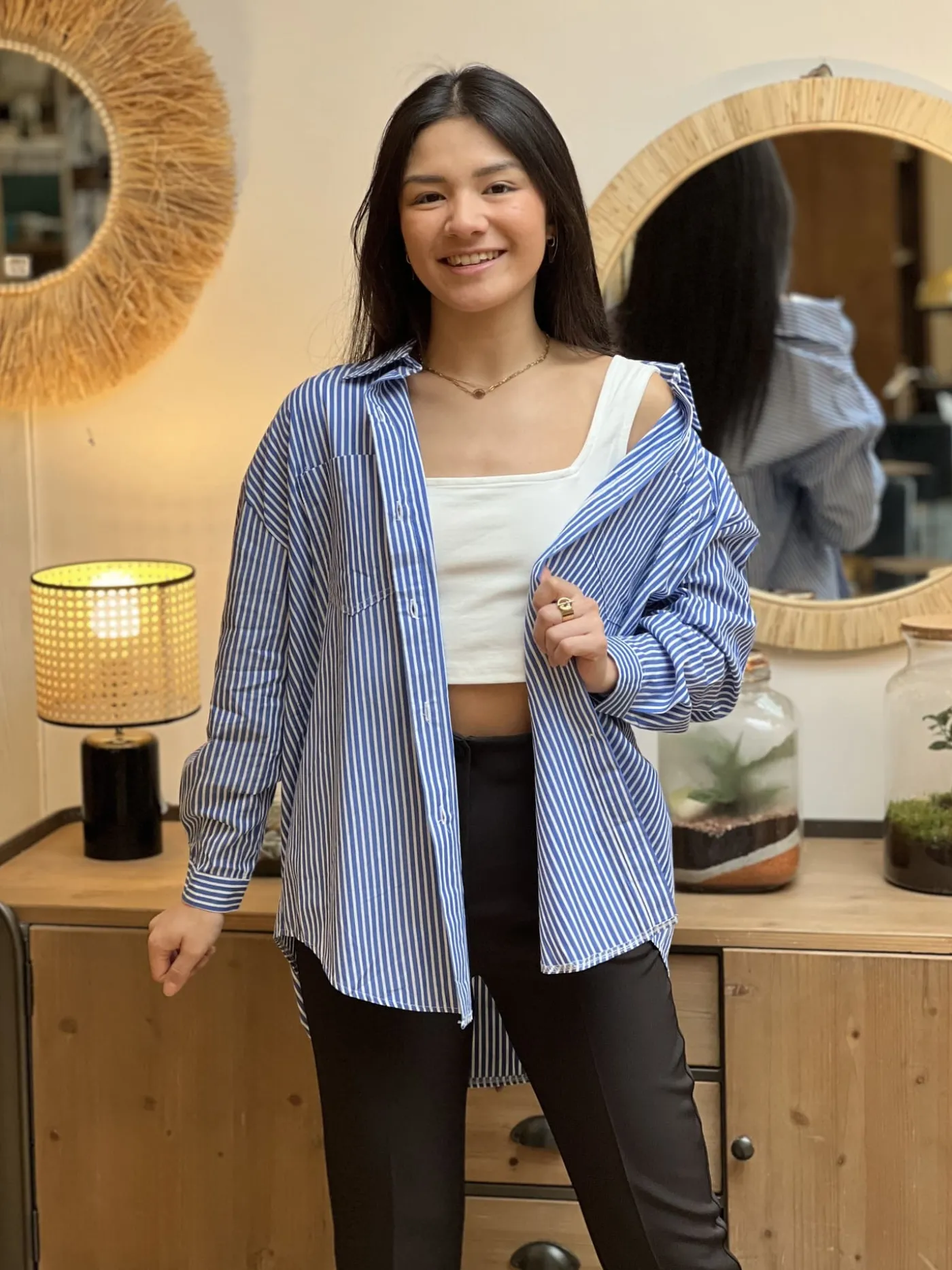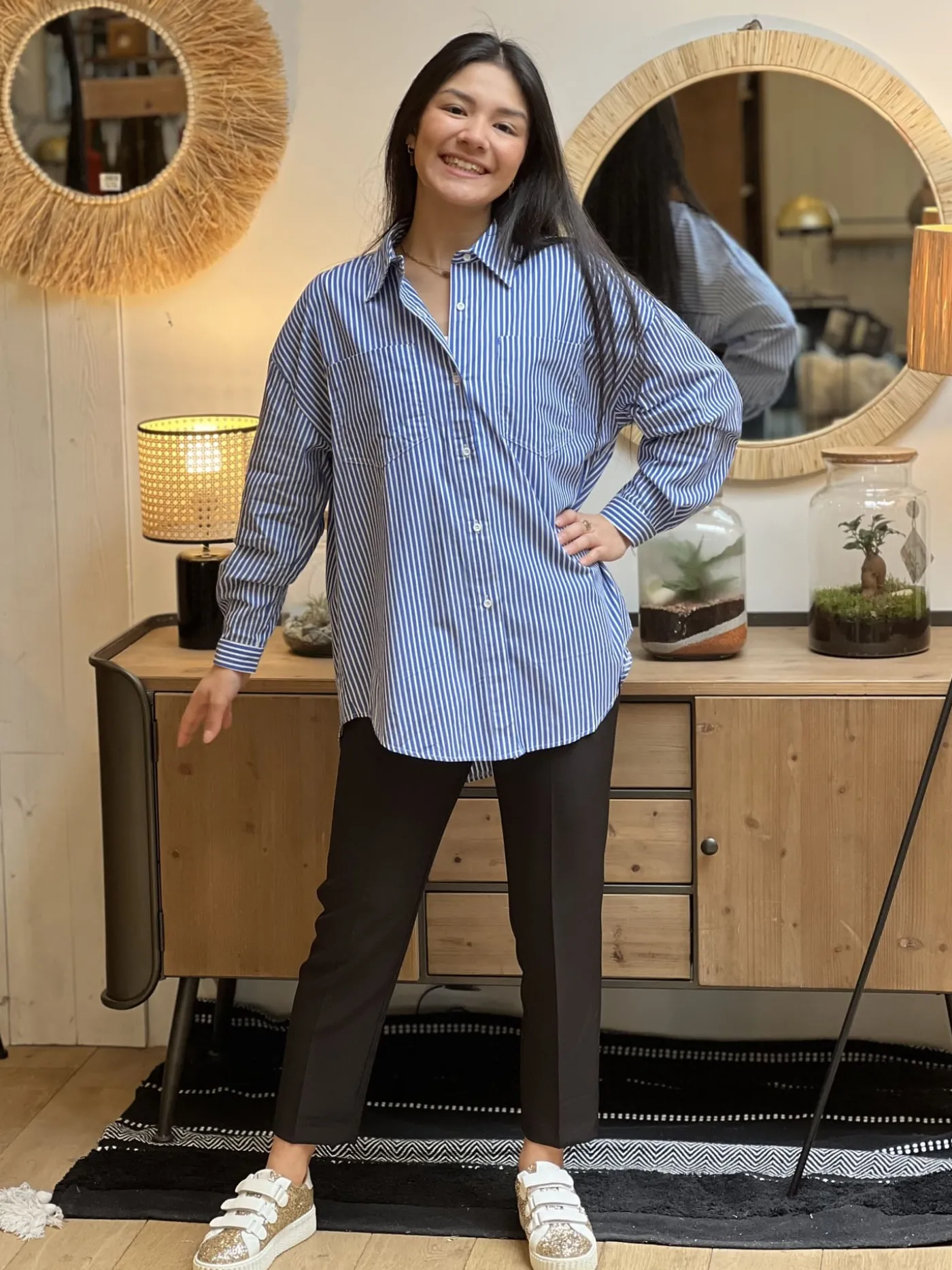 CHEMISE A RAYURESTaille : Juliette mesure 1m63. Elle porte la taille S/M pour le modèle noir. Taille : S/M (36-38)…