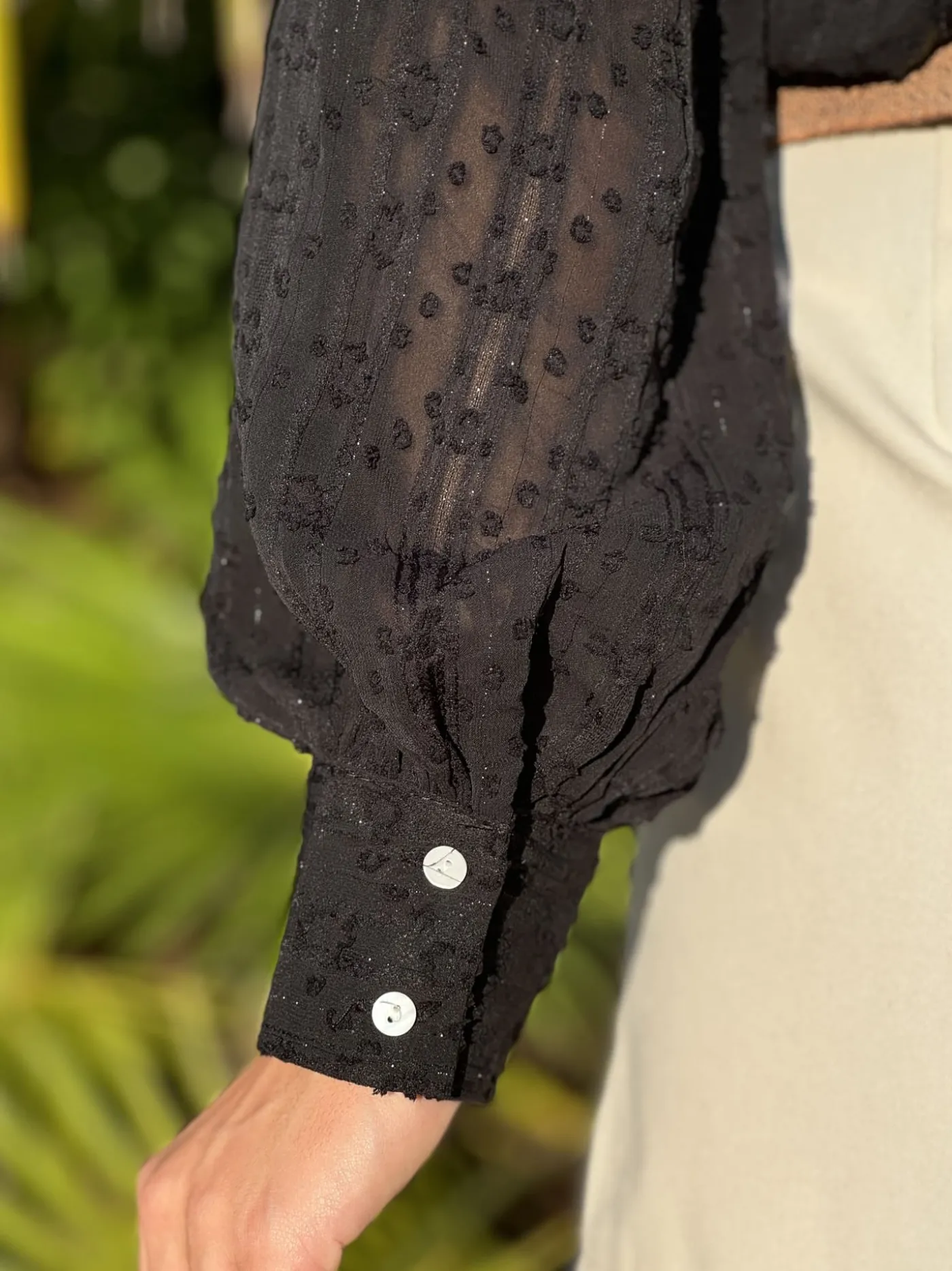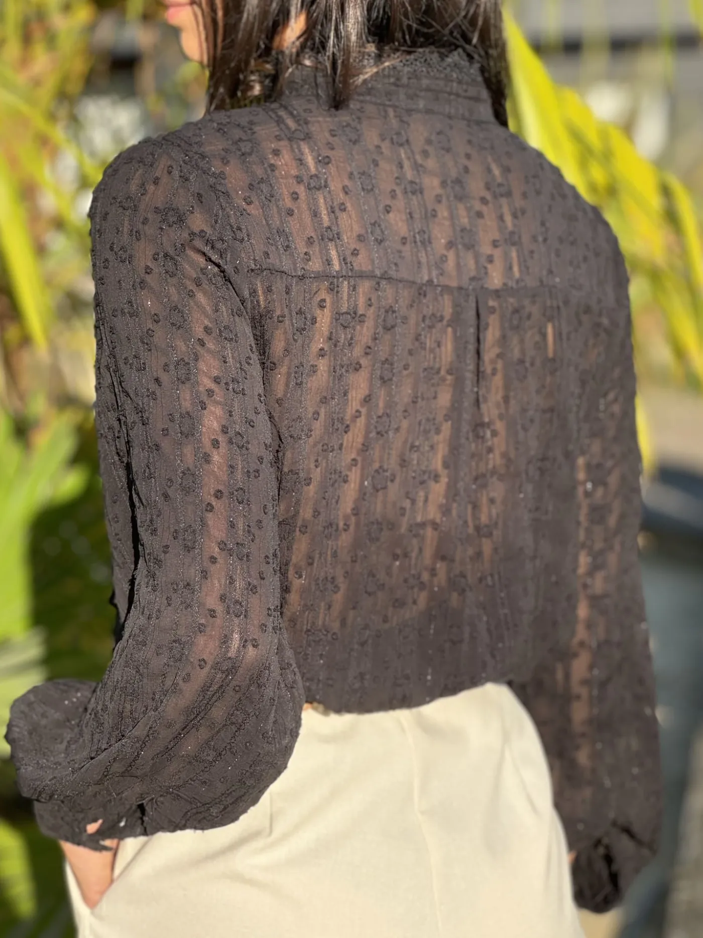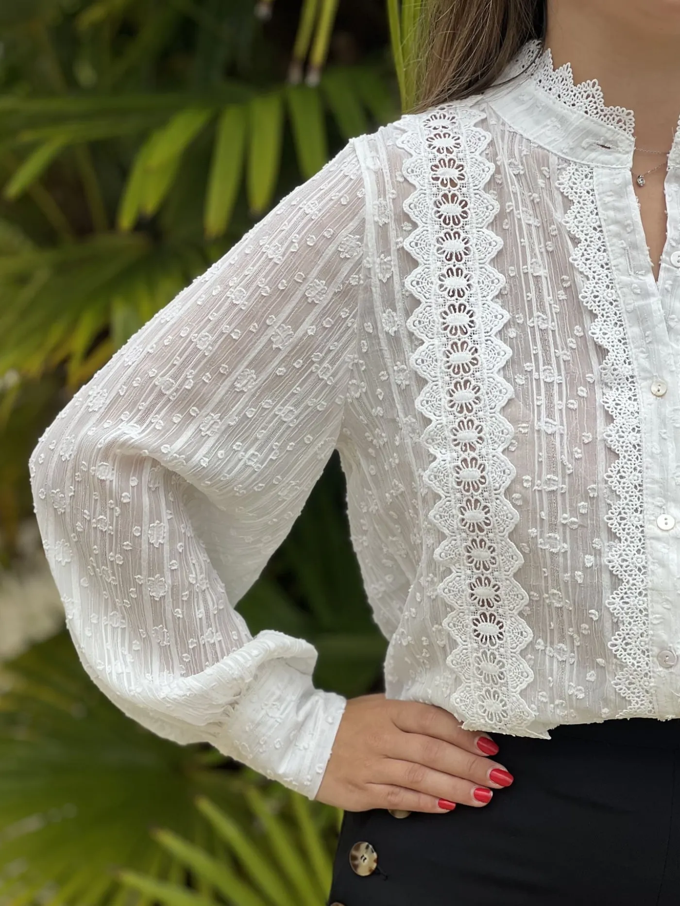 - CHEMISIER À MANCHE LONGUE À DENTELLE – MANCHE RESSERRÉ AU BOUT