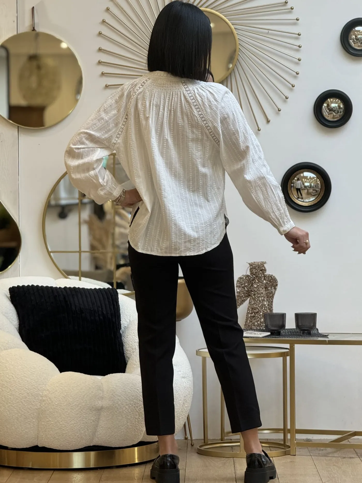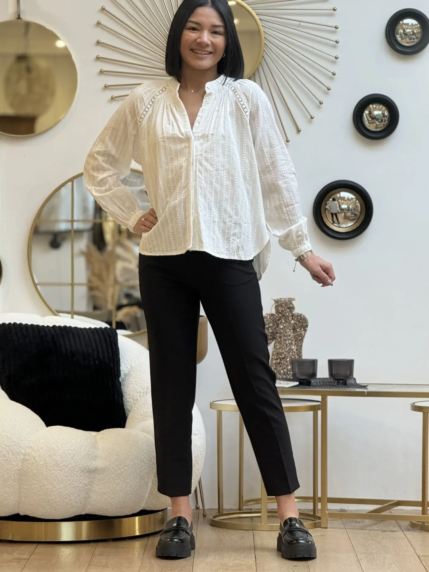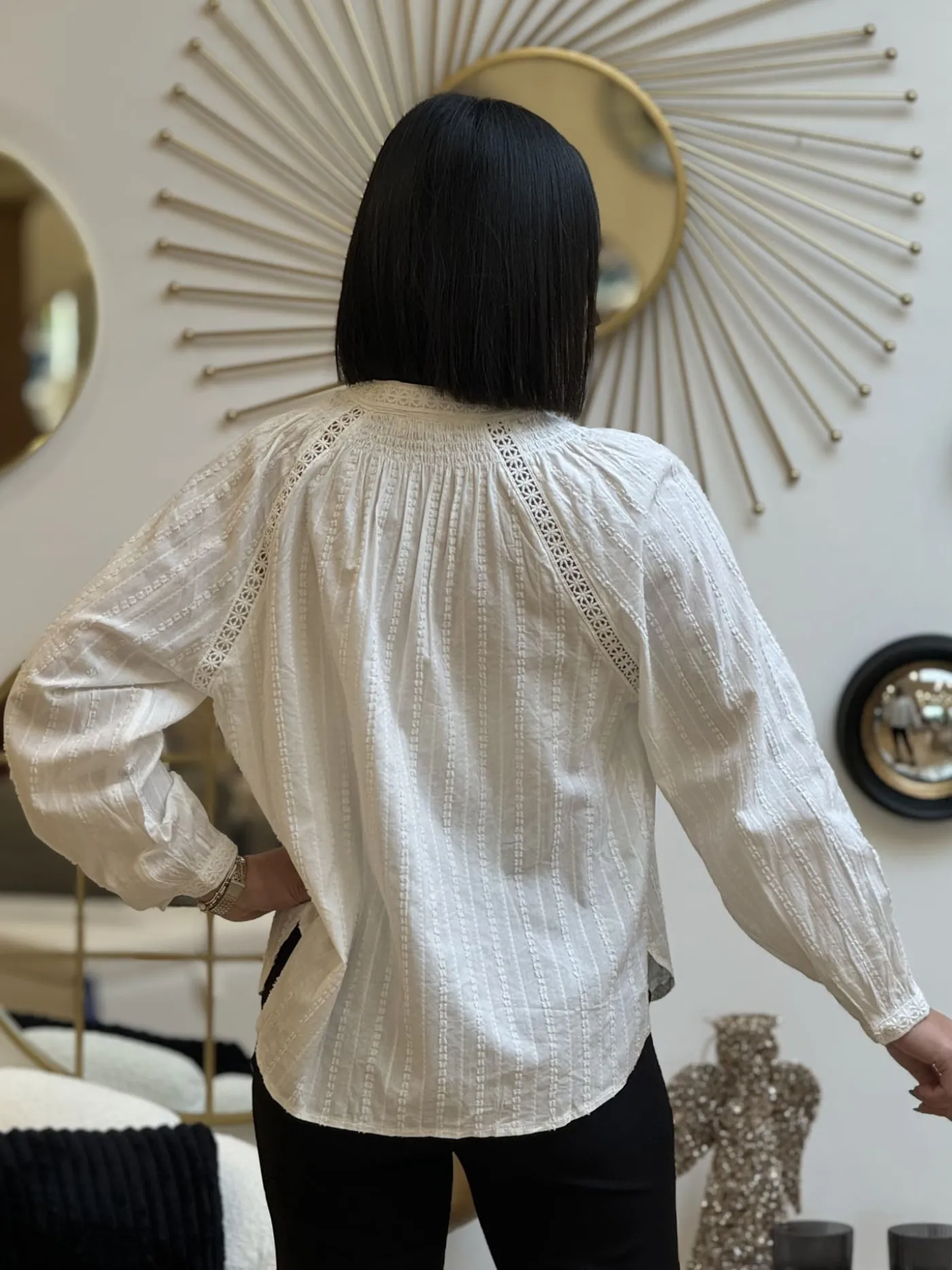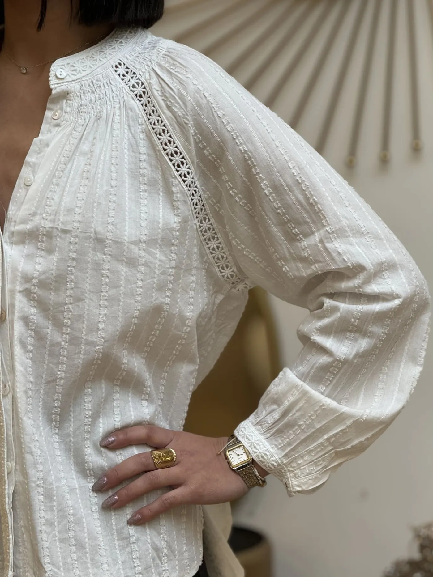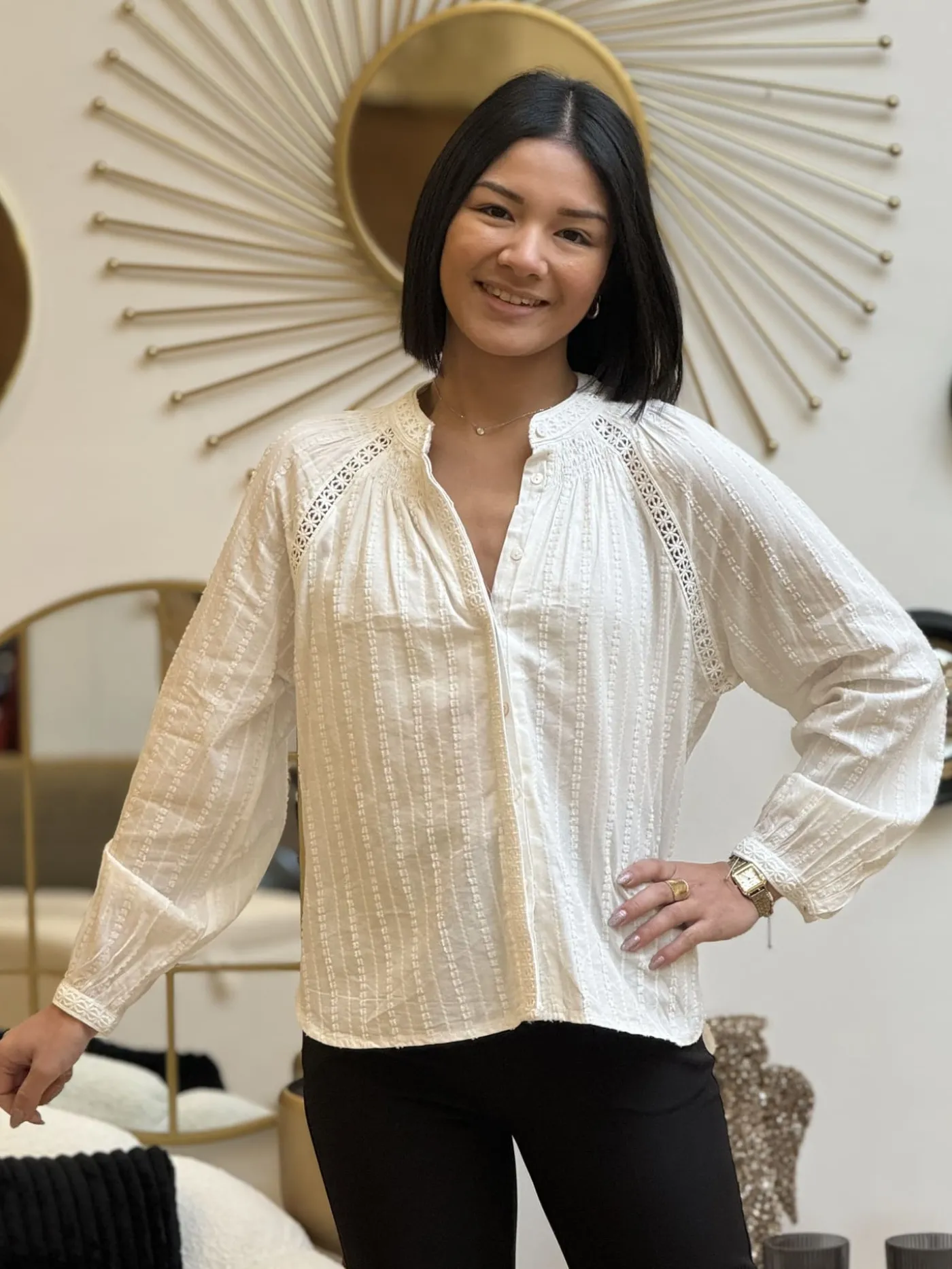 Chemisier à ml col haut avec broderieTaille : Mathilde mesure 1m65. Elle porte la taille S/M pour ce modèle.Tail…